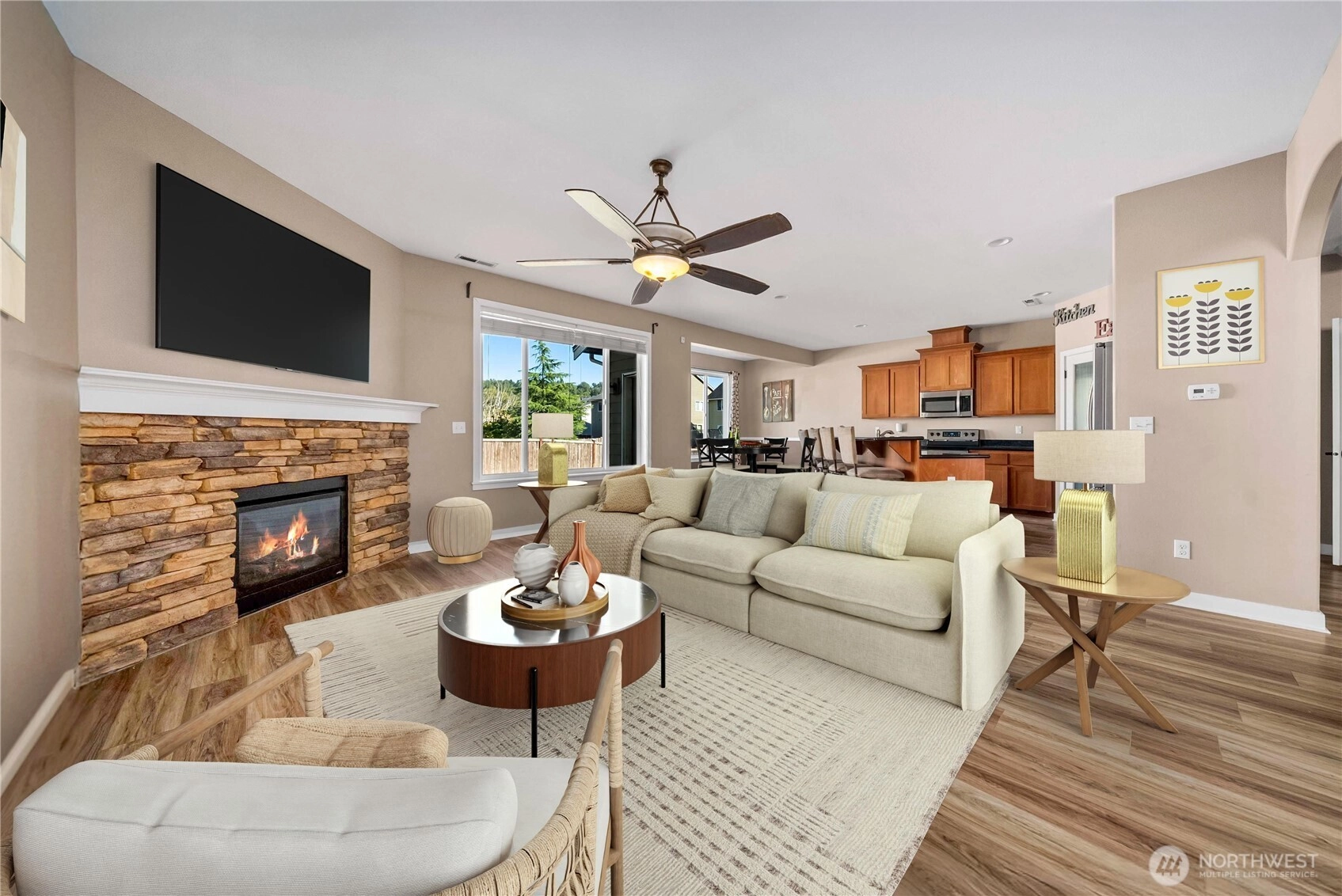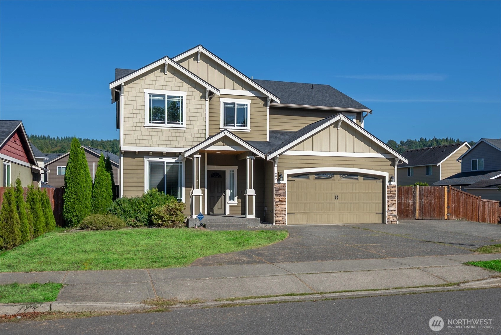 Custom home on a extra-large lot in a quiet Orting neighborhood! The open floor plan offers a hillside view kitchen with granite counters, custom cabinetry, stainless steel appliances and a breakfast nook. A formal dining room with a Casa Blanca chandelier, spacious office/den and wide staircase create a welcoming layout. The generous primary suite features a 5-piece bath an walk in closet while additional bedrooms are light filled and roomy. Upstairs, a large bonus roomy with closet easily functions as a 5th bedroom. Updates include new LVP flooring and carpet throughout. Enjoy extra storage in the garage, plus paved RV parking large enough for a motorhome and boat. With formal and casual spaces, thoughtful updates and plenty of room.