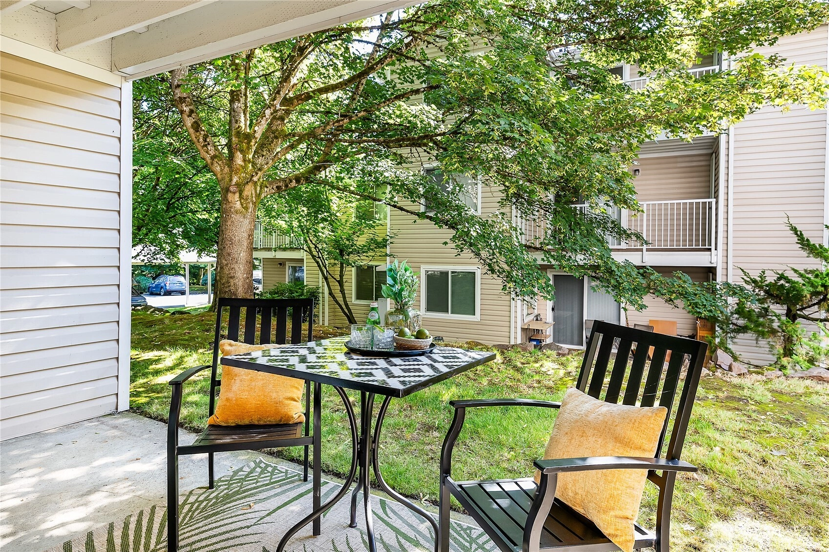 Located in the coveted Balaton Condos, this updated ground-floor unit offers both privacy and convenience. The spacious living area features a wood-burning fireplace with electric insert and access to a covered patio with storage. The kitchen showcases a massive quartz peninsula, stainless steel appliances, and abundant cabinetry. Down the hall are two bedrooms and a full guest bath, including a primary suite with a walk-in closet and ensuite bath with walk-in shower. Community amenities include a pool, hot tub, sauna, gym, and clubhouse. Assigned parking included. Tucked at the back of the complex, this home provides peace, privacy, and ample guest parking, all minutes from shops, dining, light rail, with a strong HOA and no rental cap.