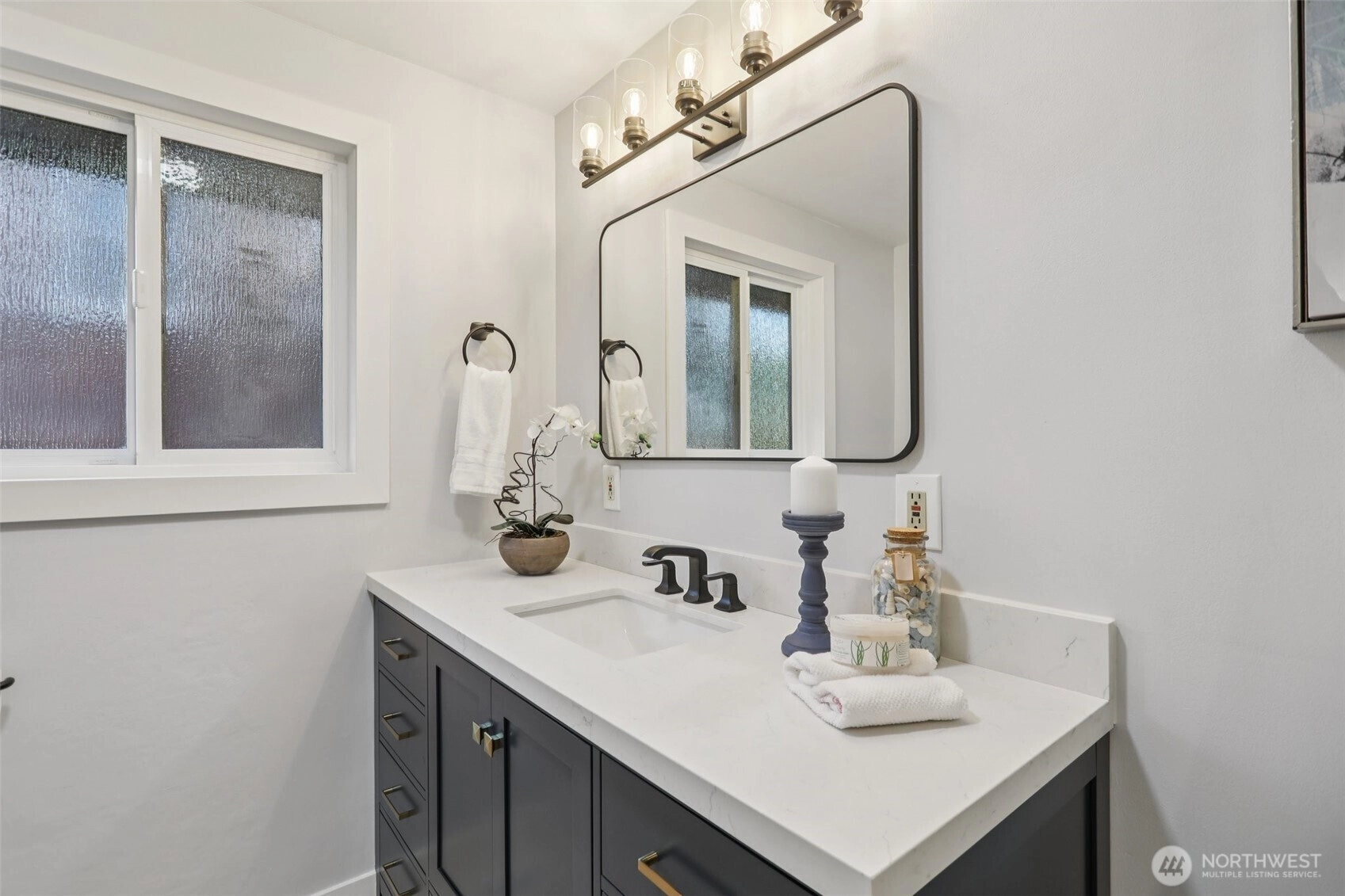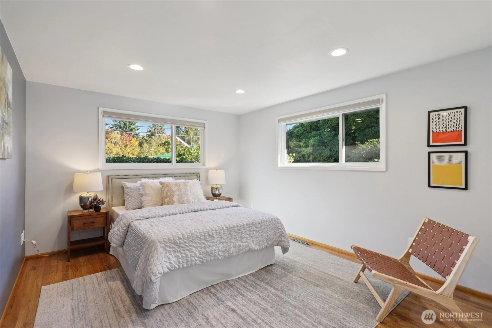 Beautifully updated Mid-Century home on a large corner lot in West Seattle's desirable Belvidere neighborhood! Bright open main floor with hardwoods, updated kitchen with granite counters & stainless appliances, dining/living with fireplace, 2 bedrooms & remodeled full bath. Fully renovated lower level with new flooring, family room, 3rd bedroom, stylish 3/4 bath & spacious laundry with custom cabinetry. Upgrades include remodeled primary bath, updated windows & a newer heat pump. Large flat backyard with full privacy fence, fully re-landscaped front yard & versatile detached shed. Close to schools, shops & dining - this home blends 1960s charm with modern living.