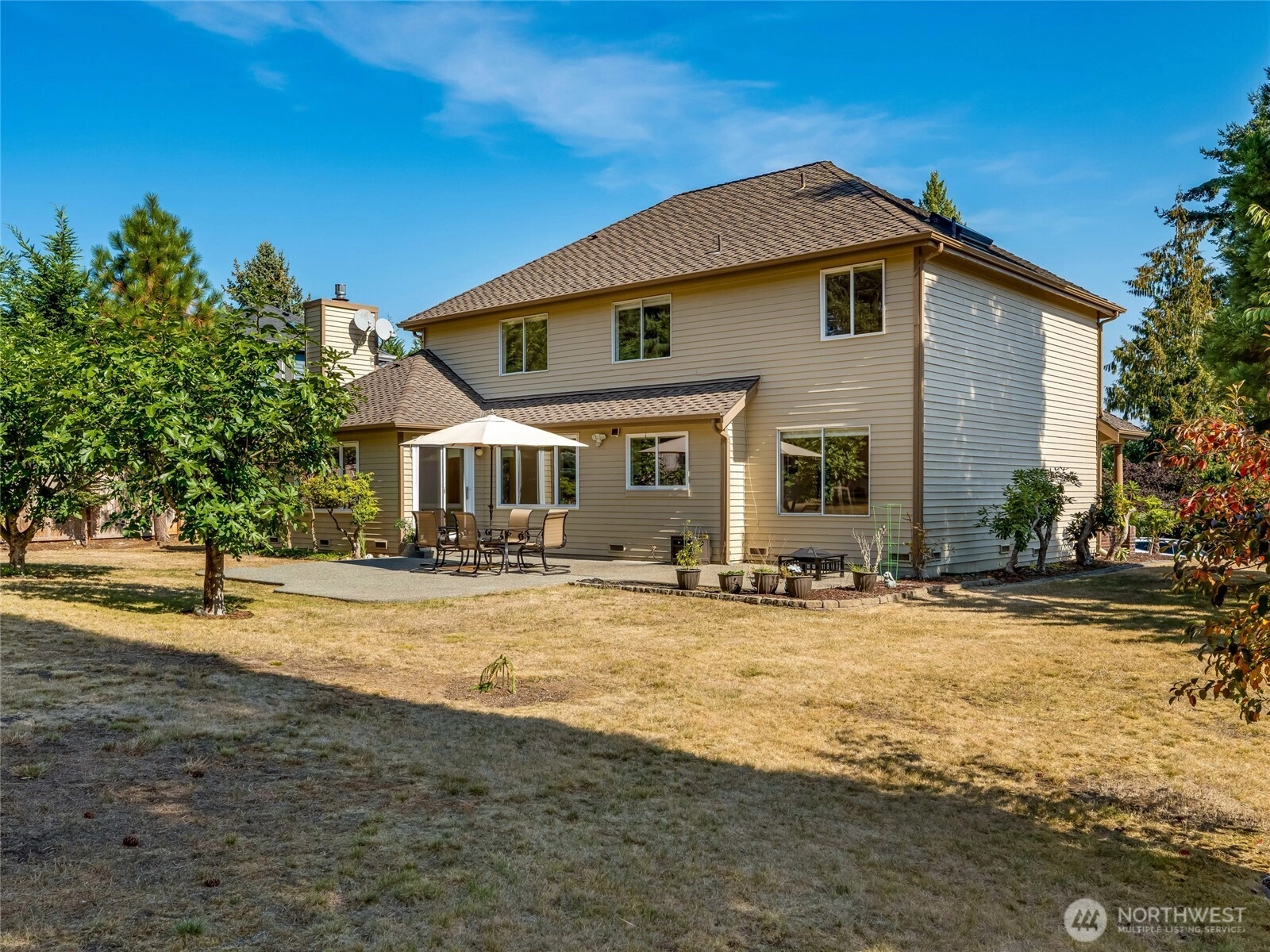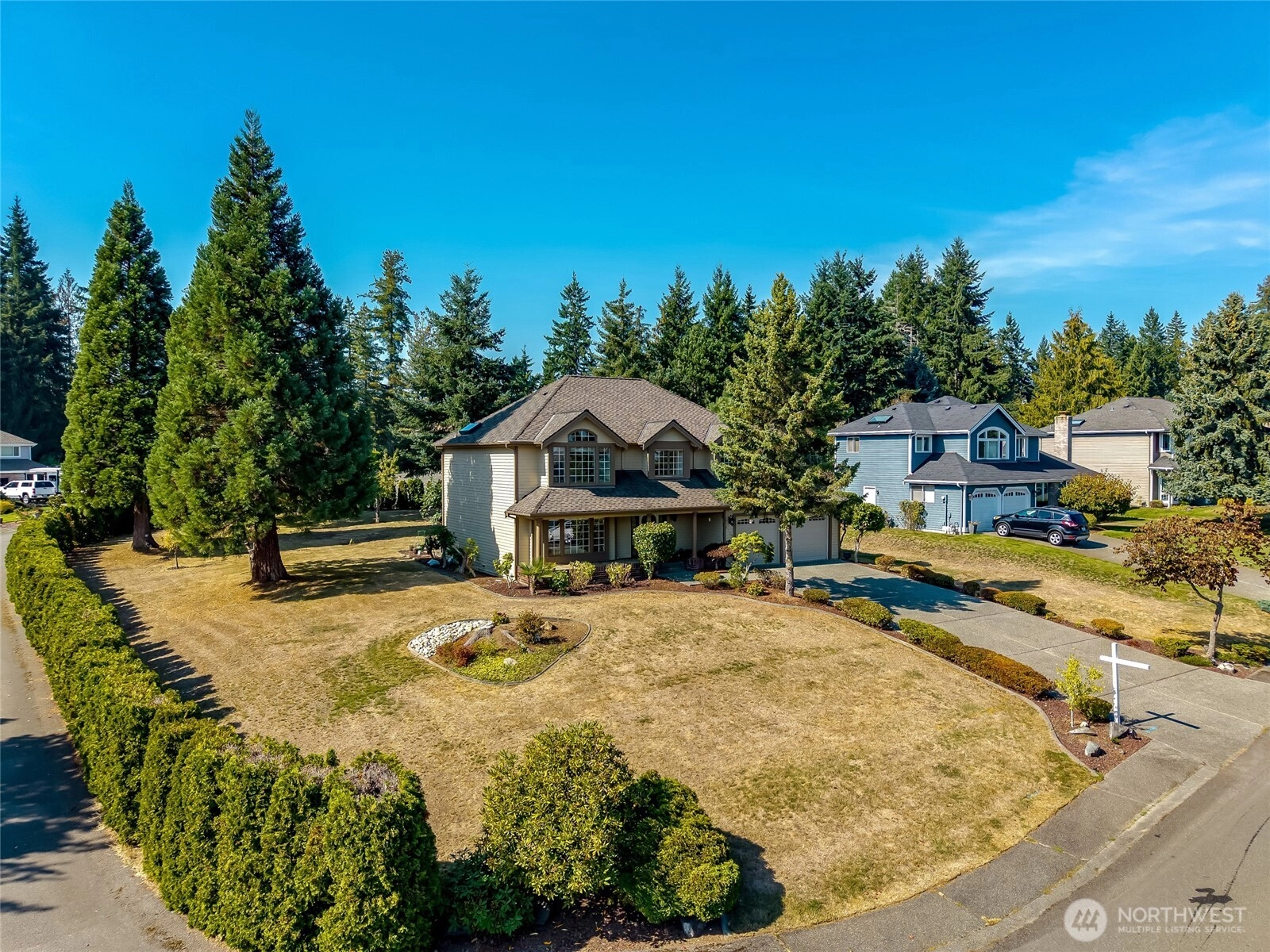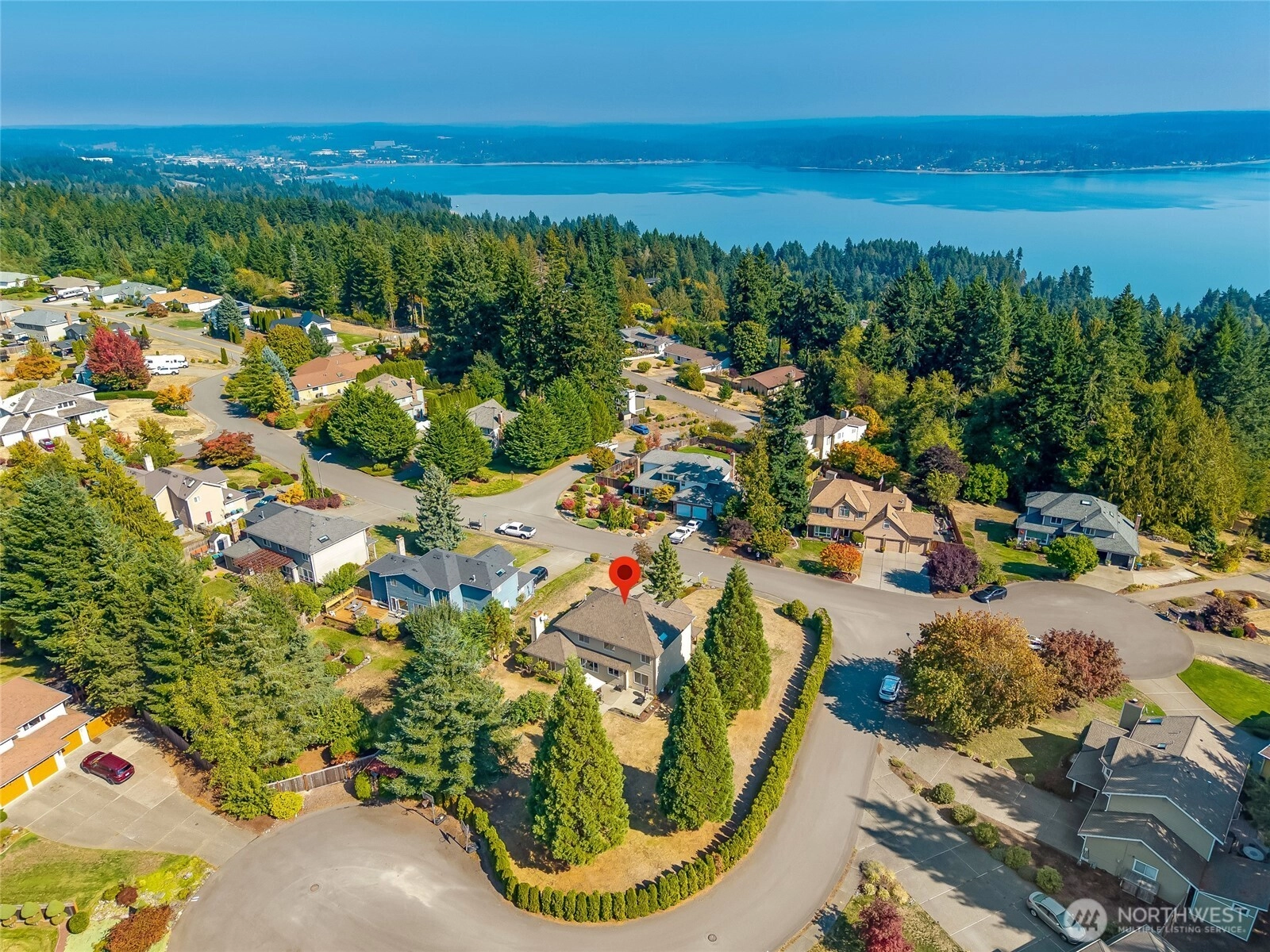 Stunning Chaffey-built one-owner home nestled in Eldorado Hills! Set on a huge corner lot w/ mature landscaping & partial views of Dyes Inlet, this is one of the most desirable locations in the community. Light-filled entry opens to living area with recessed ceilings & bay window, formal dining, and gourmet kitchen w/ granite counters, shaker cabinets & mosaic backsplash, all underscored by beautiful hardwoods. Family room flows seamlessly to incredible outdoor living & entertaining space. 4 generous bedrooms incl. the showcase Primary Suite w/ 5-pc bath, heated tile floors & walk-in closet. Presidential roof, A/C & RV parking! Superb commute via Hwy 3, access to Silverdale/ Bremerton shopping & dining options, trails & ferry. Welcome Home!