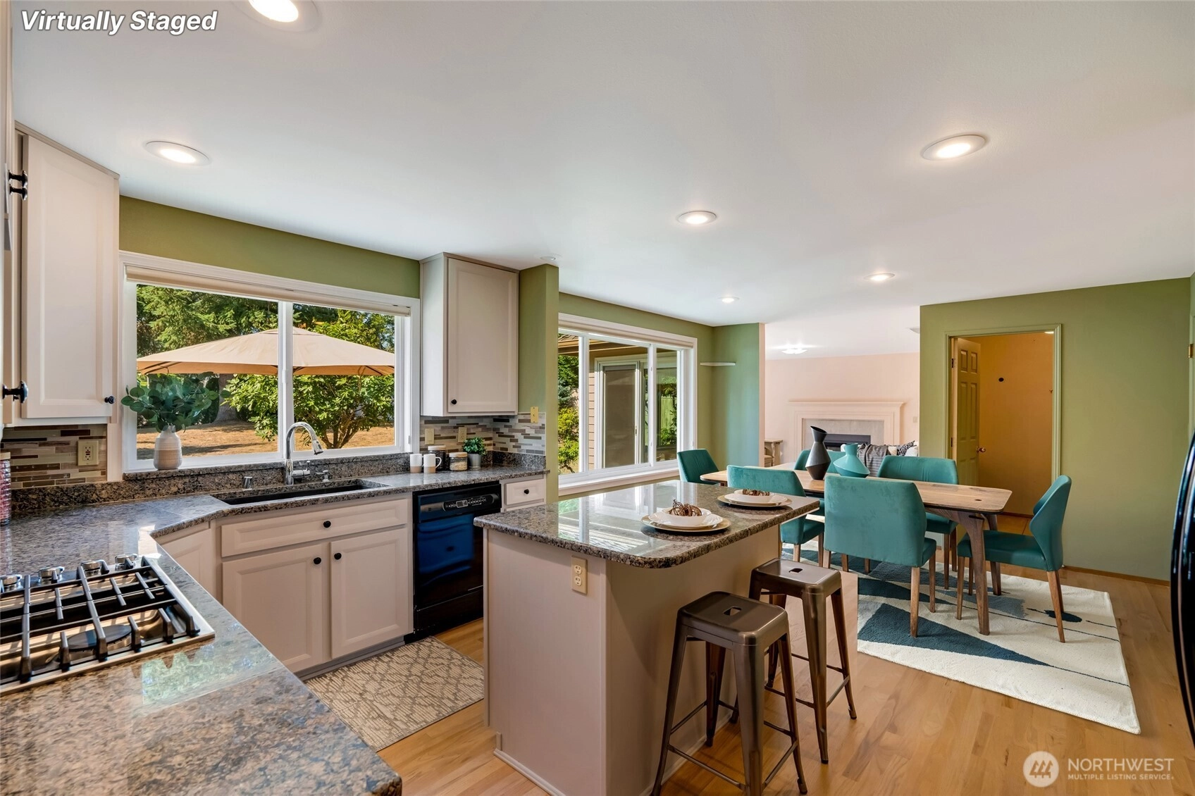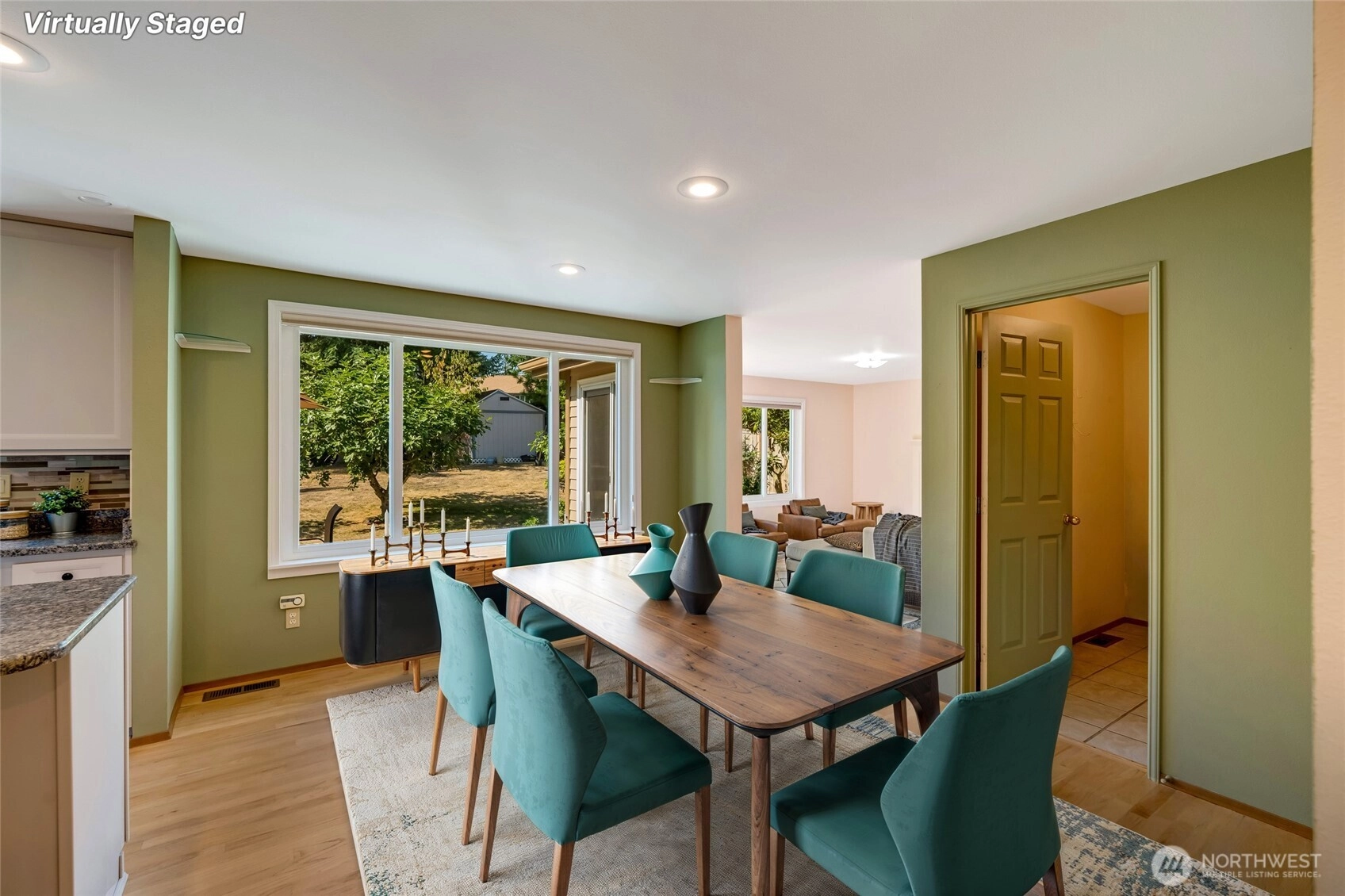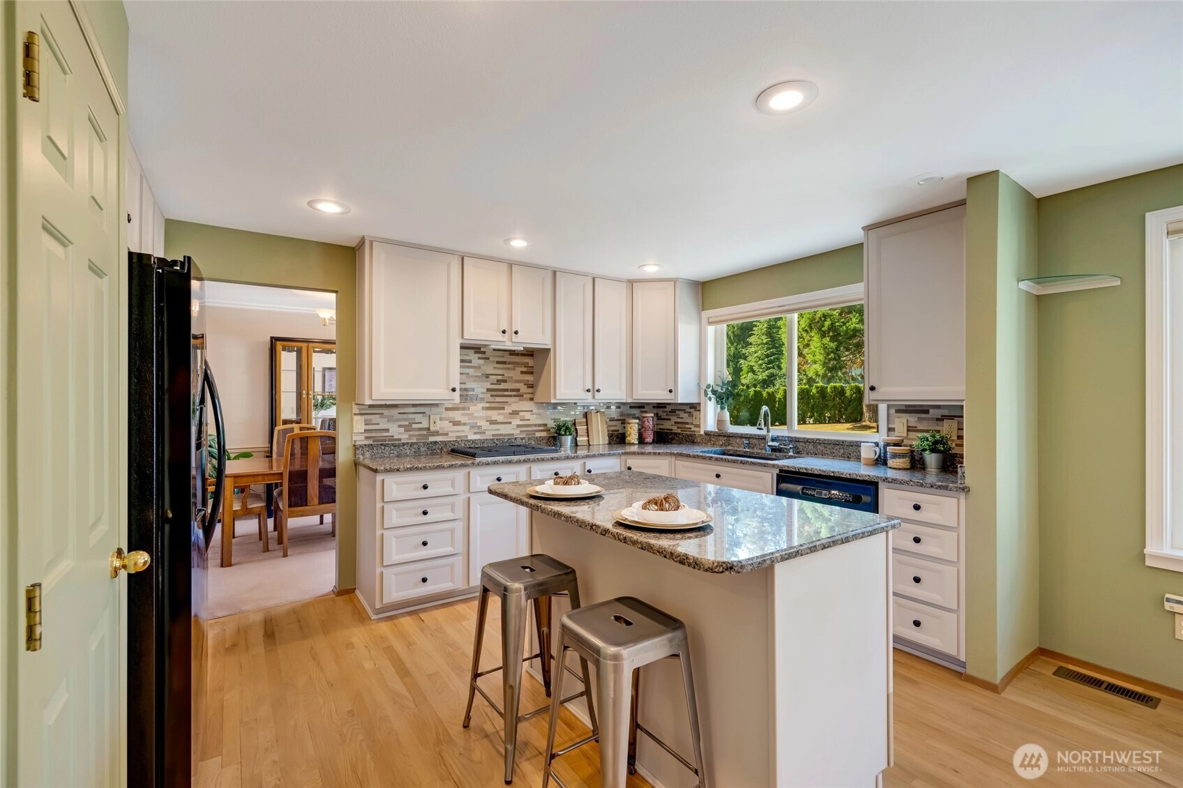 Stunning Chaffey-built one-owner home nestled in Eldorado Hills! Set on a huge corner lot w/ mature landscaping & partial views of Dyes Inlet, this is one of the most desirable locations in the community. Light-filled entry opens to living area with recessed ceilings & bay window, formal dining, and gourmet kitchen w/ granite counters, shaker cabinets & mosaic backsplash, all underscored by beautiful hardwoods. Family room flows seamlessly to incredible outdoor living & entertaining space. 4 generous bedrooms incl. the showcase Primary Suite w/ 5-pc bath, heated tile floors & walk-in closet. Presidential roof, A/C & RV parking! Superb commute via Hwy 3, access to Silverdale/ Bremerton shopping & dining options, trails & ferry. Welcome Home!