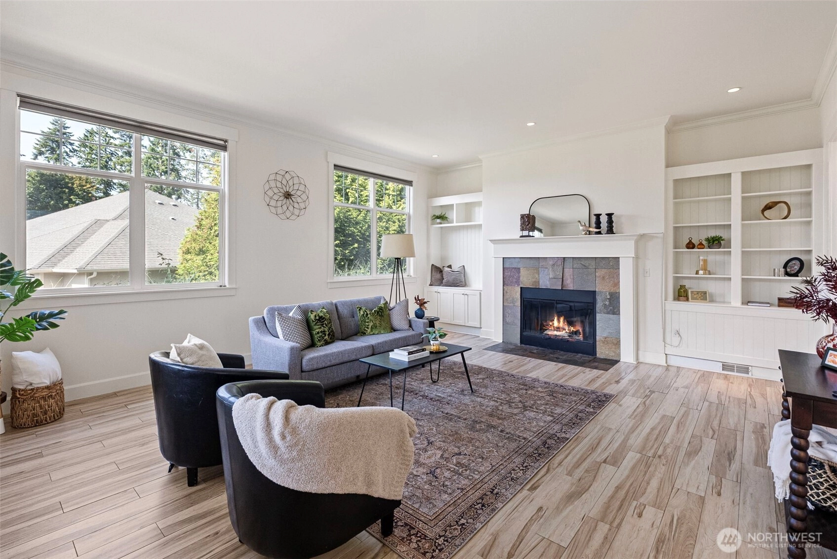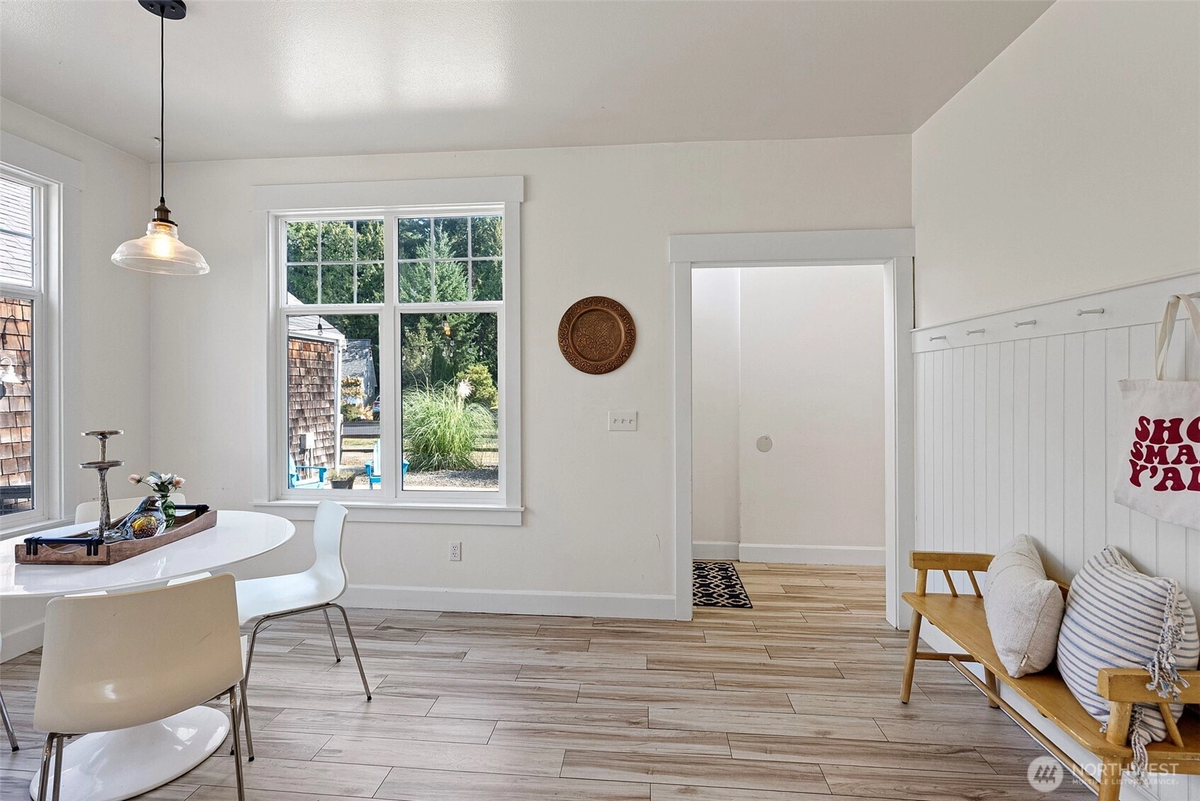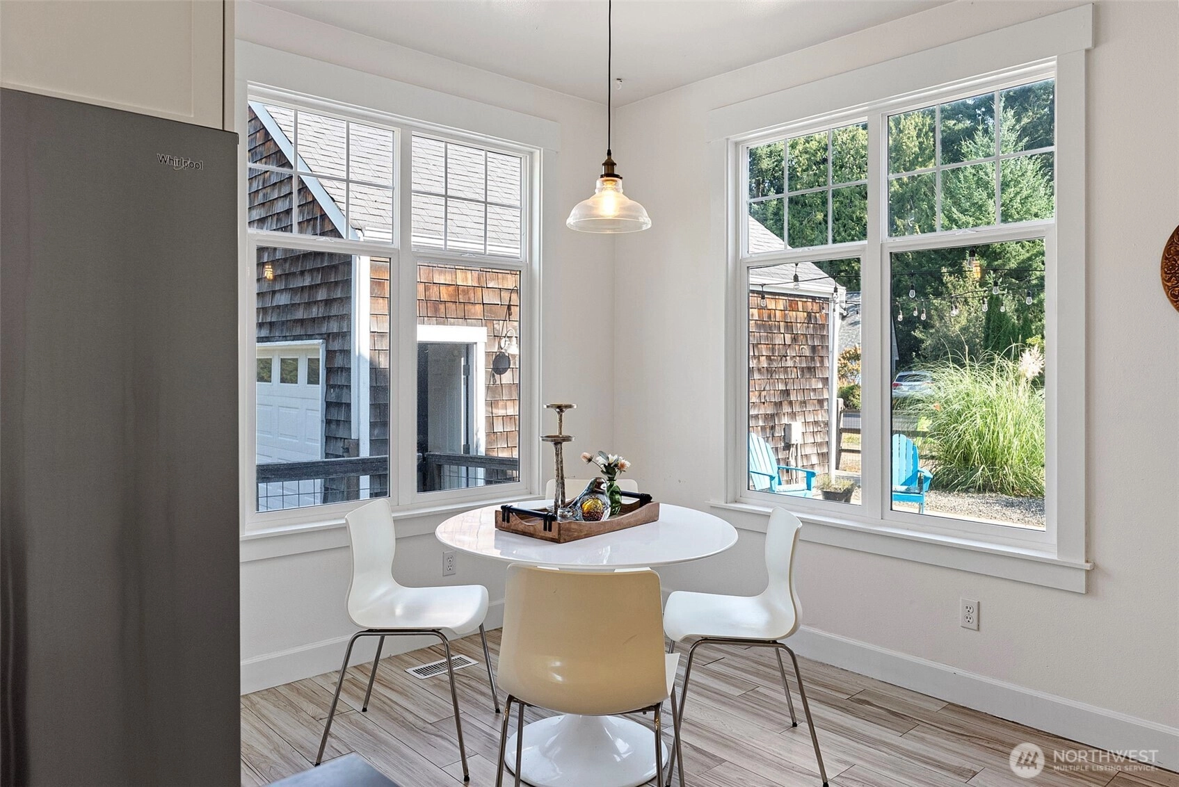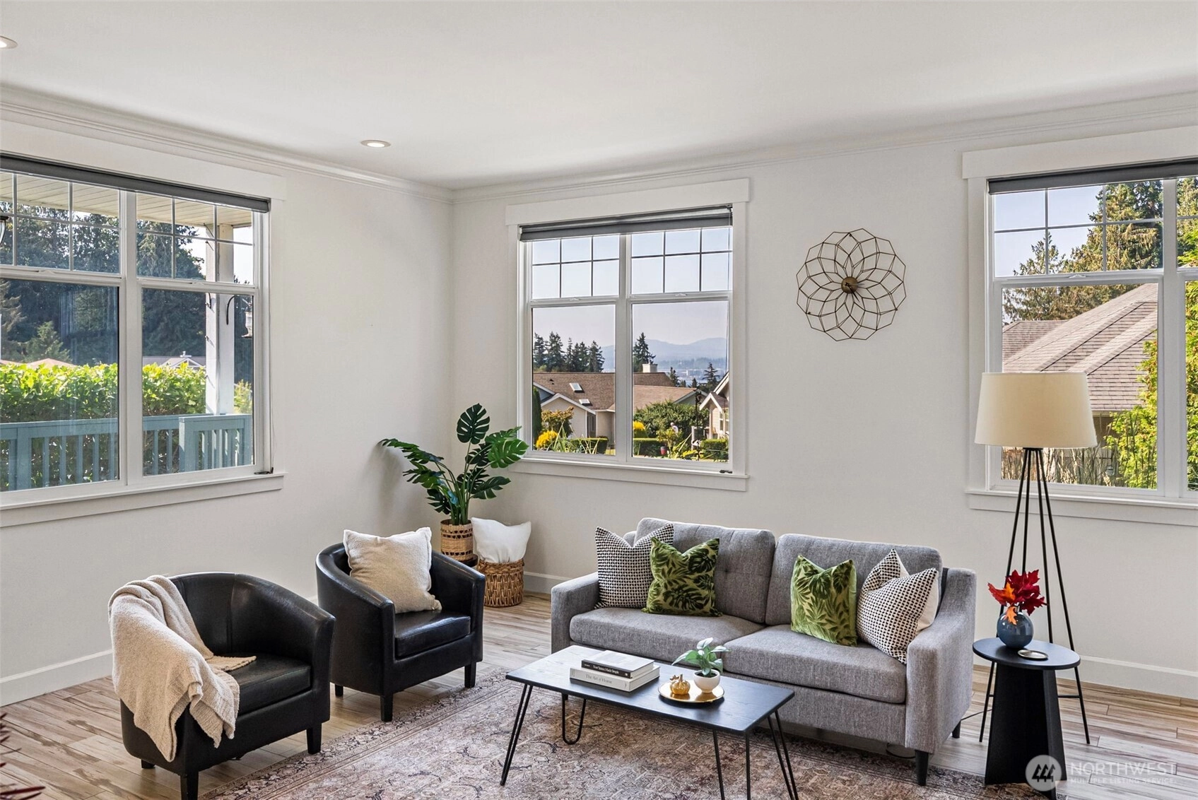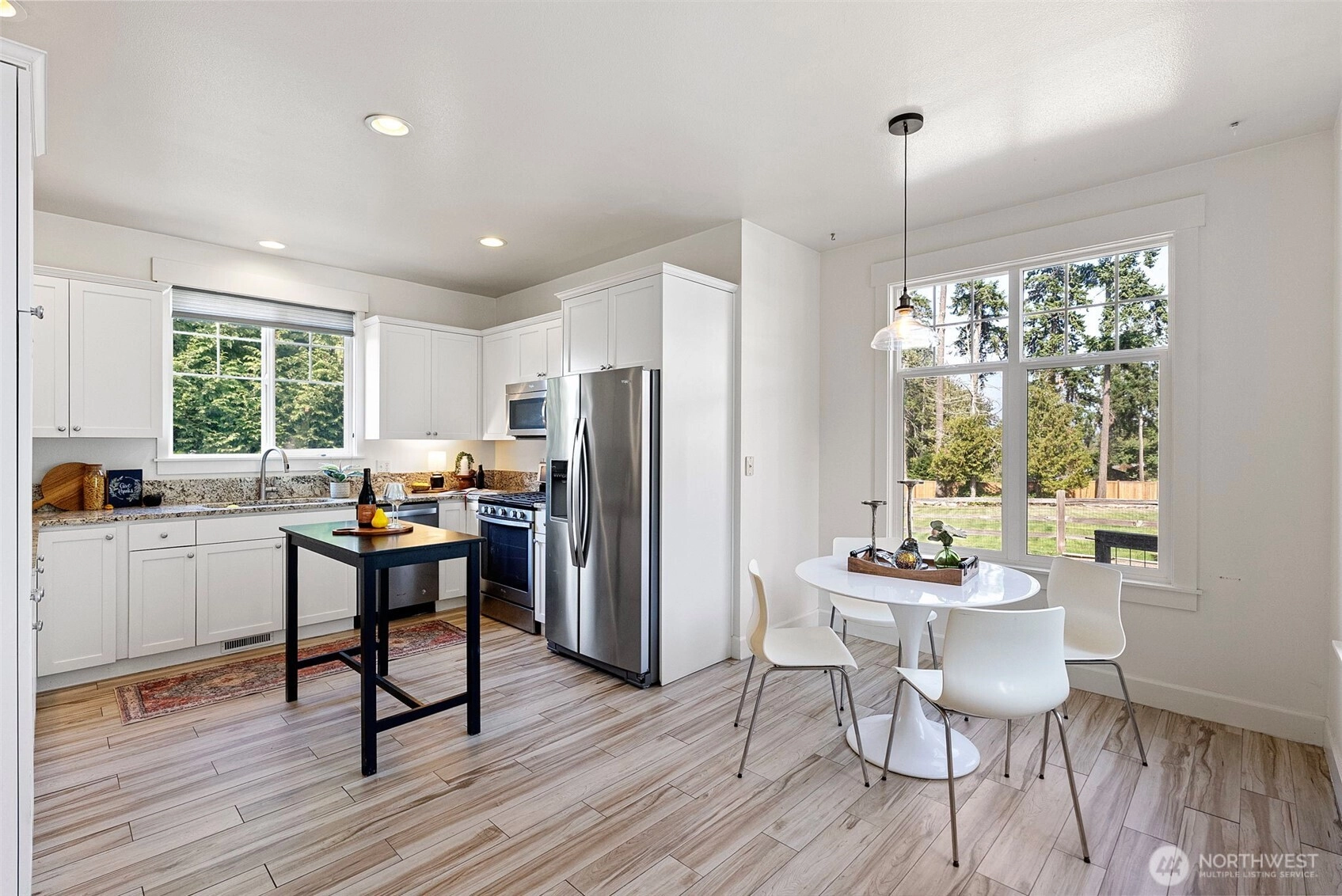 Breathe in the salt air & watch ferries from the porch of your timeless Cape Cod retreat! Overlooking both the mountains & Sound, this home blends comfort & charm. Light-filled interiors showcase expansive windows, soaring 9–11' ceilings & tile floors. Gather in the sunken living rm w/water views, built-ins & cozy propane FP. Stylish shaker cabinets, granite counters & breakfast nook overlooking the courtyard, backyard & detached garage. Dedicated dining rm, den, storage & half bth complete the main. Upstairs a spacious primary suite: sparkling views of the Sound, 2 walk-in closets & spa-like bath w/jetted tub, double sinks & separate toilet rm. Step outside to take advantage of community beach rights just beyond your door!