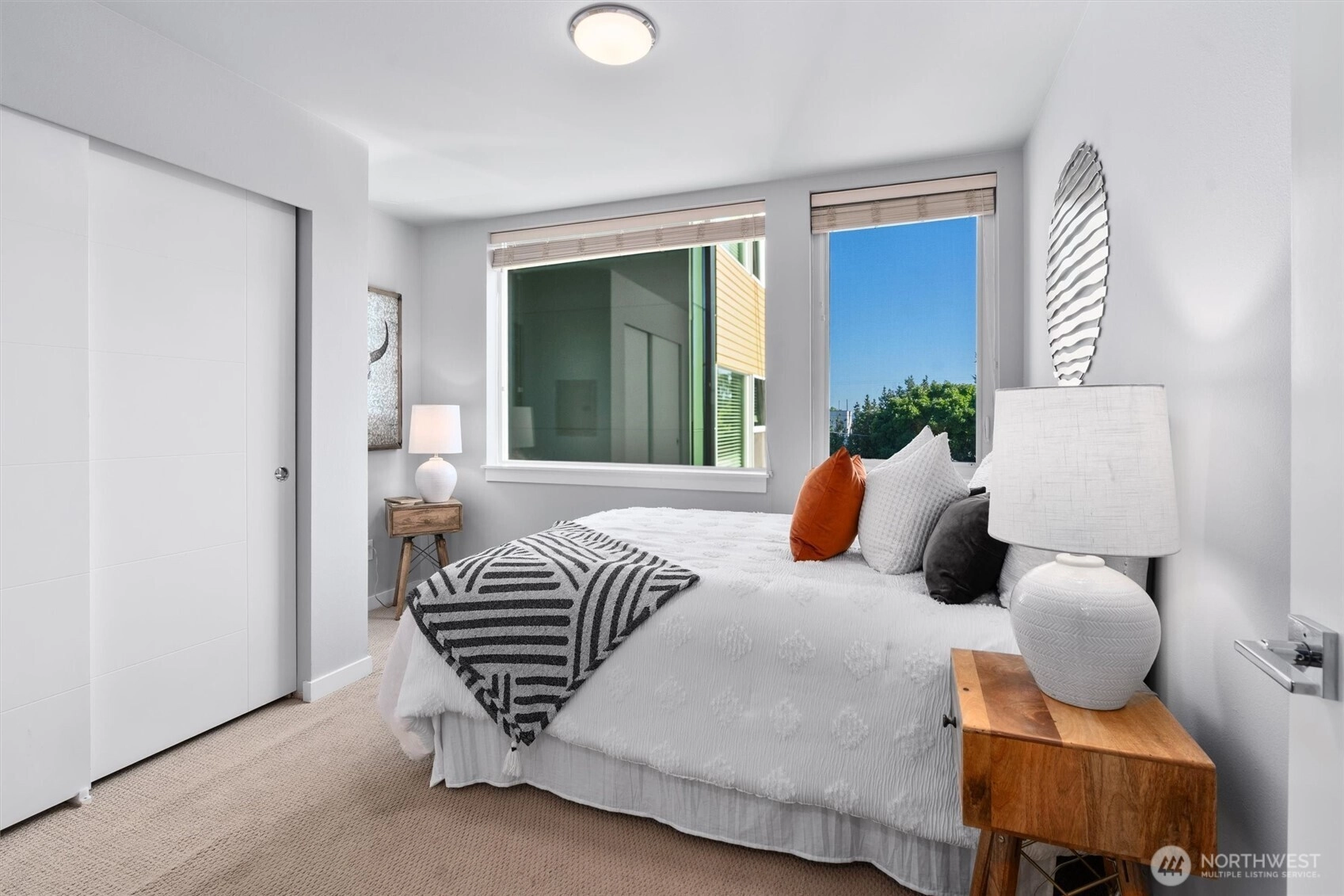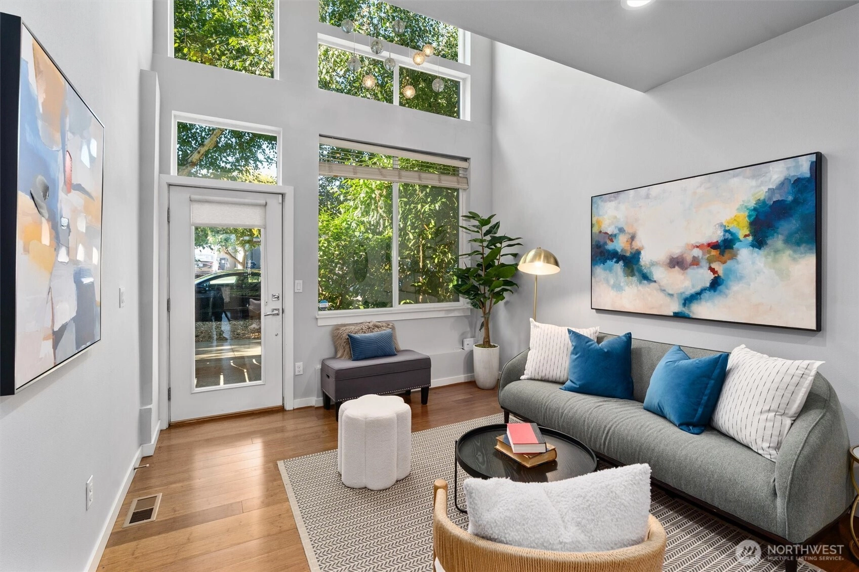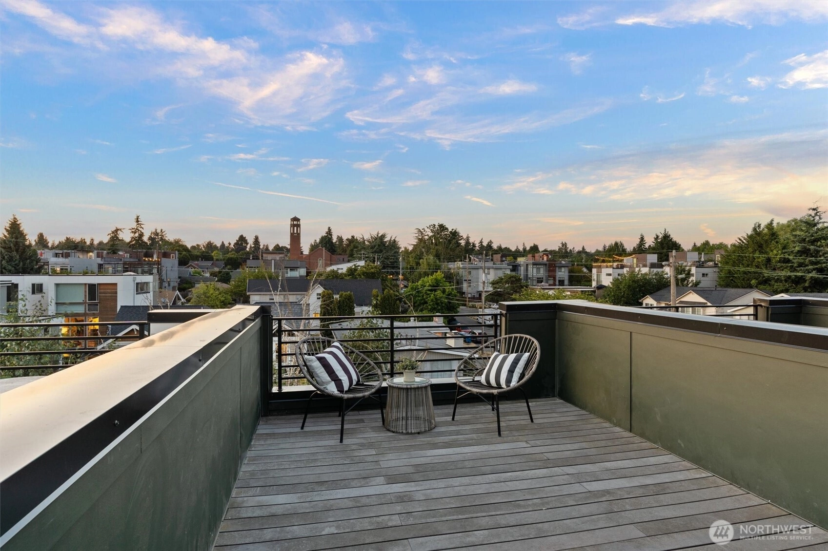 Live in the heart of Ballard where modern style meets vibrant city living with OFF STREET PARKING and EV READY! This 2-bed, 1.75-bath townhome offers nearly 1,400 sq ft of sun-drenched space with soaring ceilings, a spa-inspired primary bath, and a private rooftop deck with sweeping views—perfect for sunset dinners or weekend entertaining. Modern comforts include stainless appliances, energy-efficient mini-splits, EV charging, and convenient back door to make loading and unloading easy. Just steps from Ballard’s best restaurants, breweries, parks, and shops, with quick access to transit, tech hubs, and downtown Seattle. Come home to the perfect balance of convenience, community, and urban adventure. Great investment potential as well!
