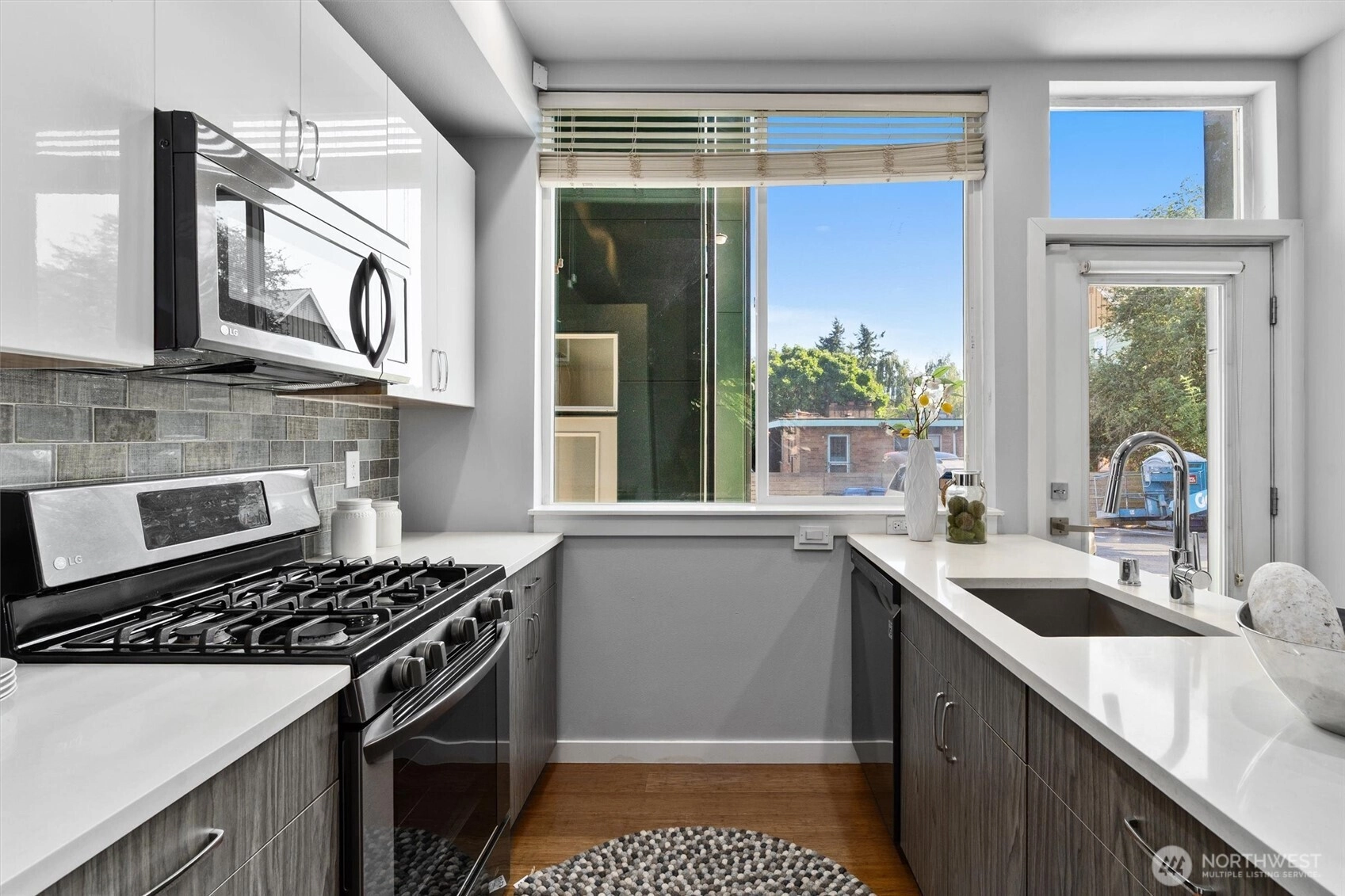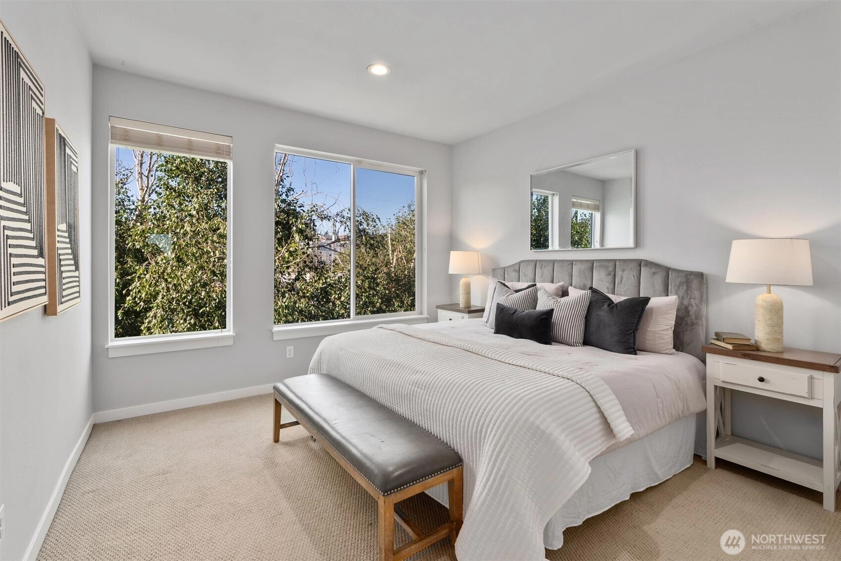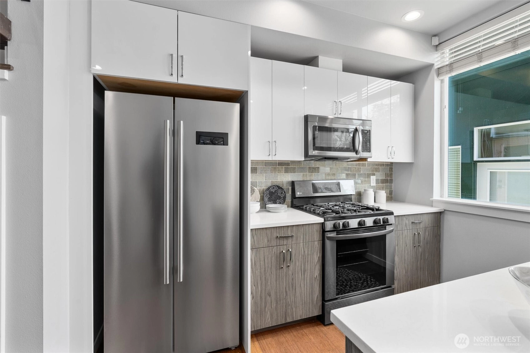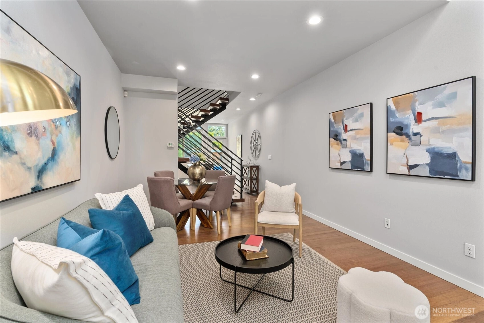 Live in the heart of Ballard where modern style meets vibrant city living with OFF STREET PARKING and EV READY! This 2-bed, 1.75-bath townhome offers nearly 1,400 sq ft of sun-drenched space with soaring ceilings, a spa-inspired primary bath, and a private rooftop deck with sweeping views—perfect for sunset dinners or weekend entertaining. Modern comforts include stainless appliances, energy-efficient mini-splits, EV charging, and convenient back door to make loading and unloading easy. Just steps from Ballard’s best restaurants, breweries, parks, and shops, with quick access to transit, tech hubs, and downtown Seattle. Come home to the perfect balance of convenience, community, and urban adventure. Great investment potential as well!