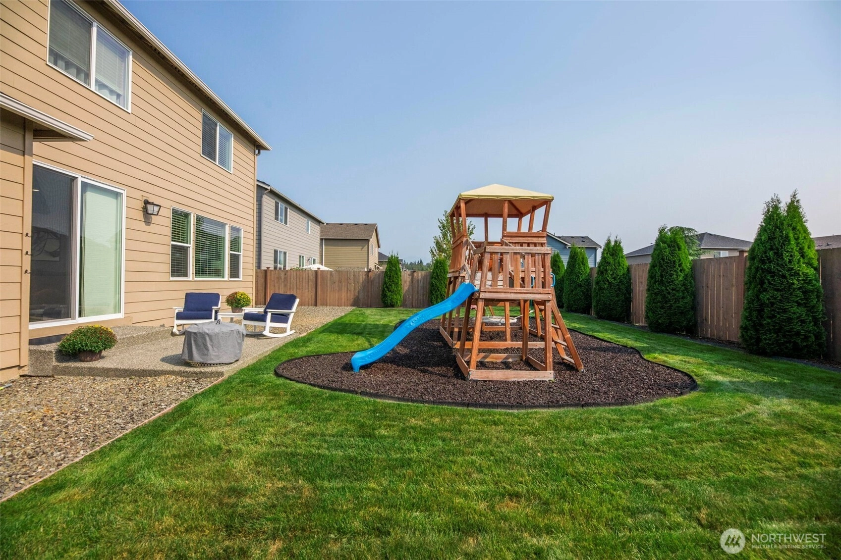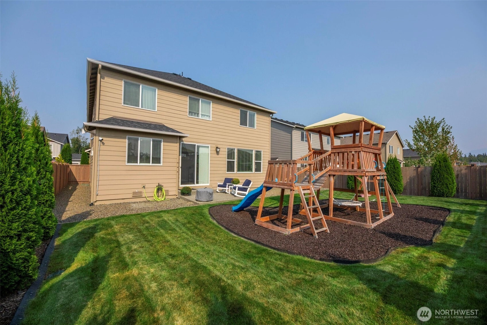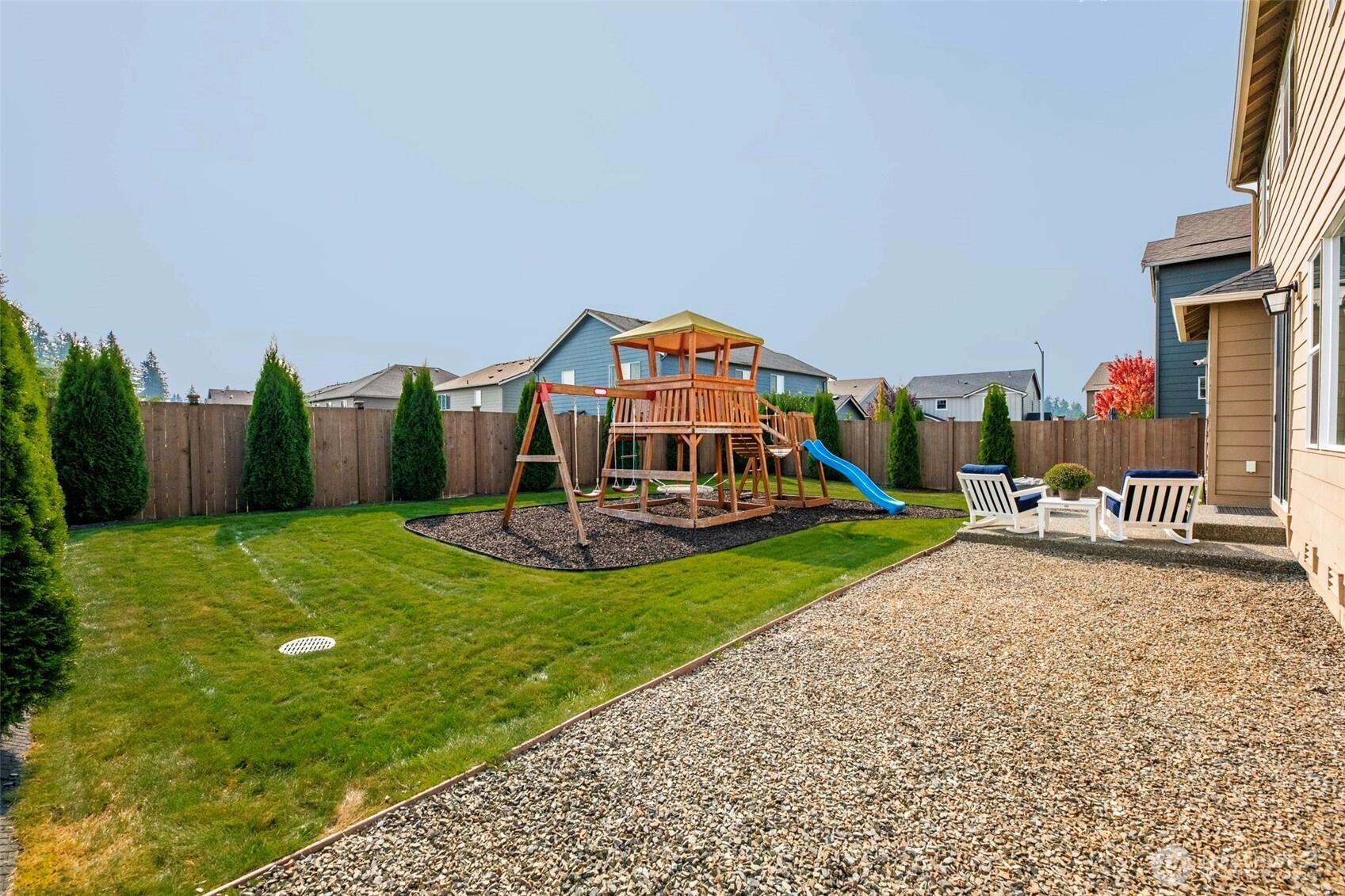This Suncrest Farms gem combines comfort, style & smart living with nearly 3,000 sq ft, the community’s largest floor plan! Offering 5 beds & 2.75 baths, the main floor boasts a chef’s kitchen with granite, island & walk-in pantry, opening to a cozy living room with gas fireplace. A second living room, formal dining & main-level bedroom add versatility. Upstairs features a spacious bonus room, primary suite with walk-in closet & spa-like bath. Smart Hue lighting, Flair Smart Vents, Central A/C, tankless water heater & Tesla charger enhance daily life. Outside, enjoy a fenced yard, Lifetime Shed, app-driven irrigation & pristine low maint. landscaping. 3-car garage w/ ample storage completes this quiet, well-located home w/ great parking.