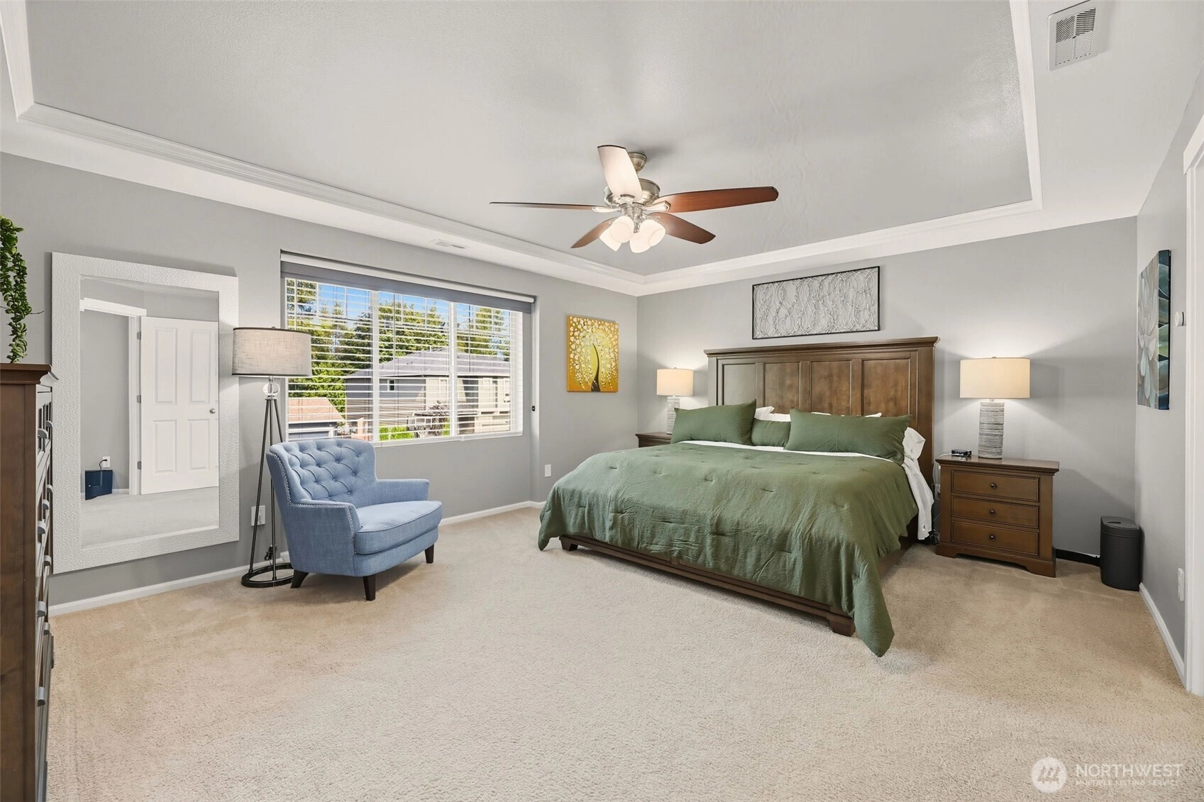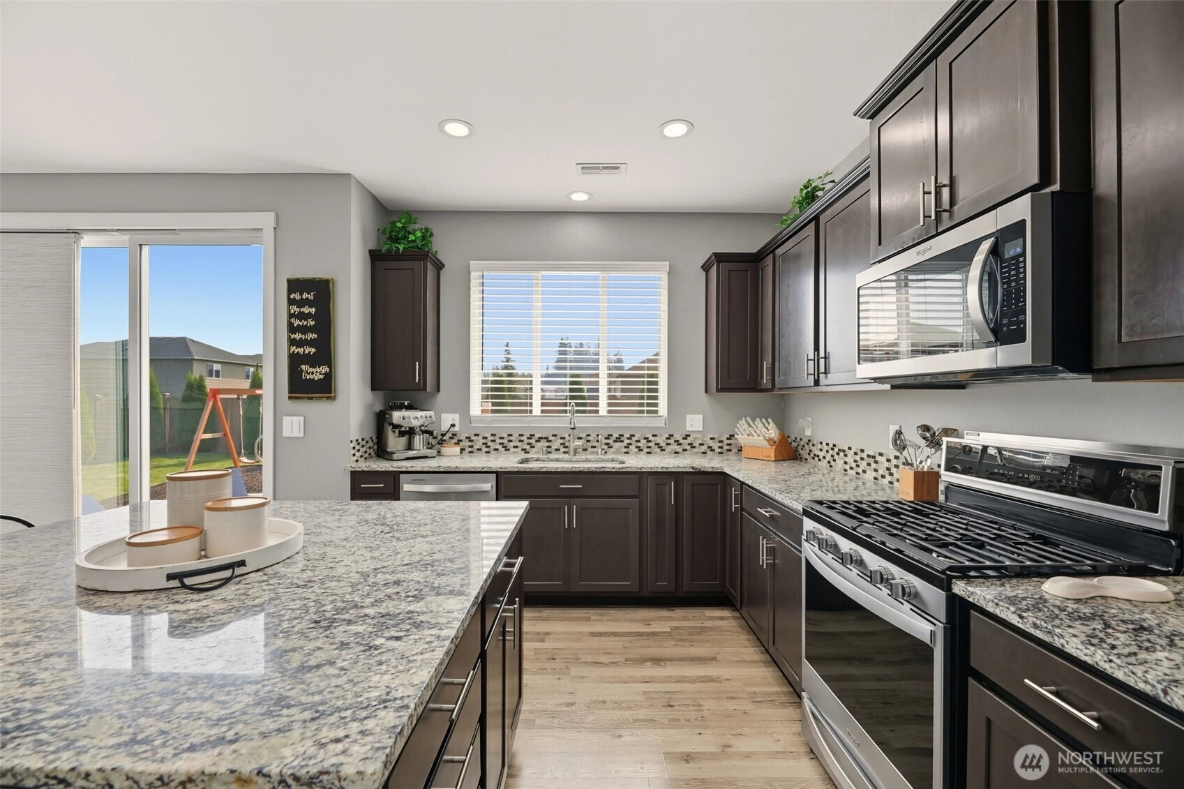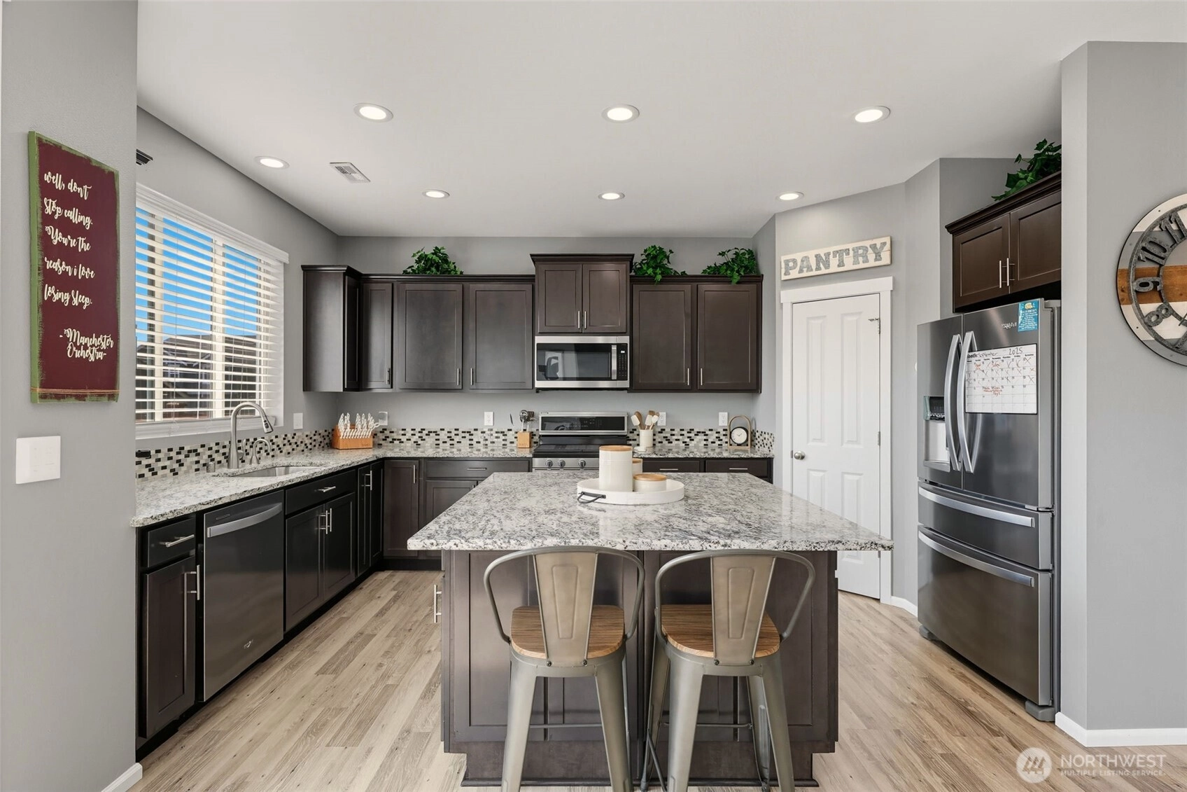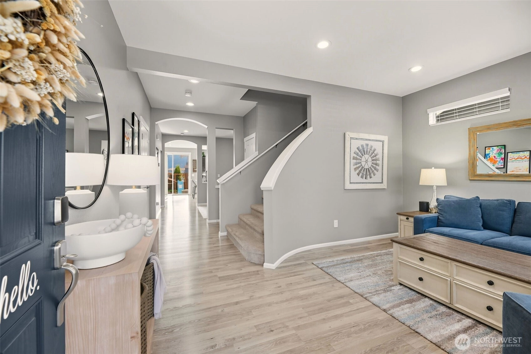 This Suncrest Farms gem combines comfort, style & smart living with nearly 3,000 sq ft, the community’s largest floor plan! Offering 5 beds & 2.75 baths, the main floor boasts a chef’s kitchen with granite, island & walk-in pantry, opening to a cozy living room with gas fireplace. A second living room, formal dining & main-level bedroom add versatility. Upstairs features a spacious bonus room, primary suite with walk-in closet & spa-like bath. Smart Hue lighting, Flair Smart Vents, Central A/C, tankless water heater & Tesla charger enhance daily life. Outside, enjoy a fenced yard, Lifetime Shed, app-driven irrigation & pristine low maint. landscaping. 3-car garage w/ ample storage completes this quiet, well-located home w/ great parking.