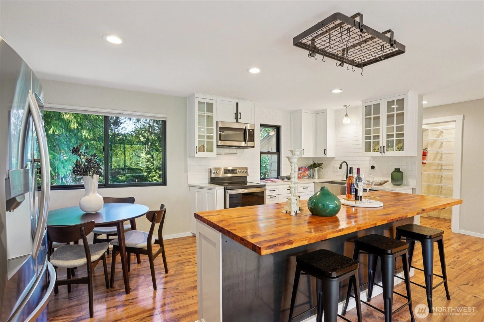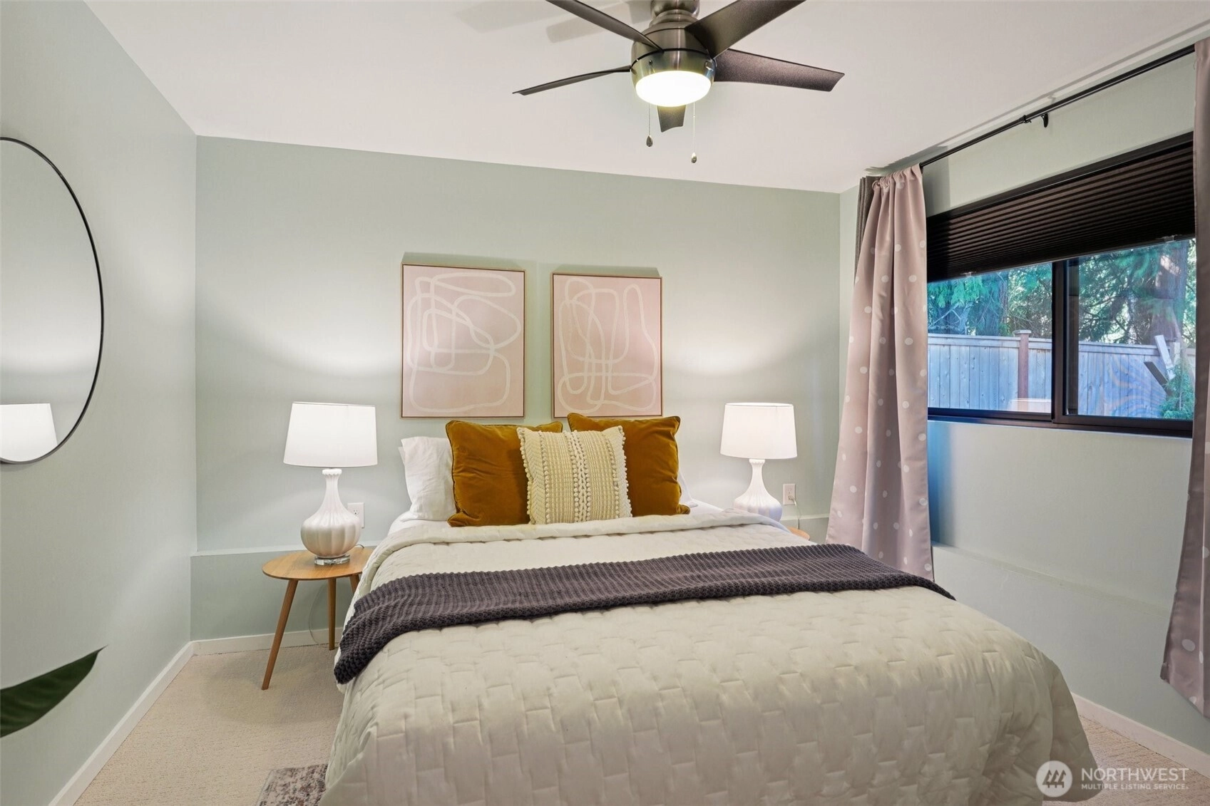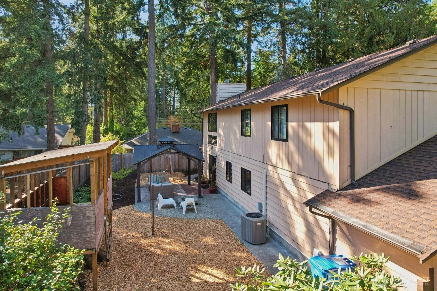 Step into comfort and convenience at this beautifully refreshed Shoreline home that sits at the end of a private drive. Inside, brand new carpet and fresh interior paint create a welcoming, move-in ready feel. The main floor has an open floor plan with an updated kitchen for easy entertaining, a primary bedroom with en-suite bath and two additional bedrooms + full bath. Downstairs is a large family room, office nook, a 4th bedroom and full bath. Central A/C keeps you comfortable on warmer days. Enjoy outdoor entertaining under the pergola in the spacious backyard, which comes with an amazing tree house! Convenient location with easy access to shopping, I-5 and the Shoreline North/185th light rail station.