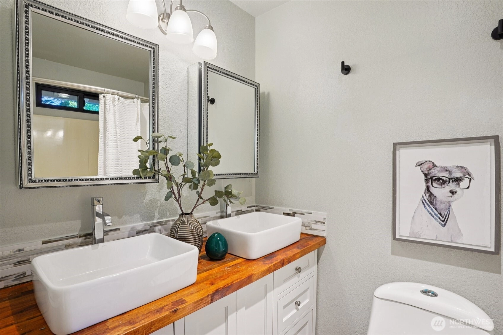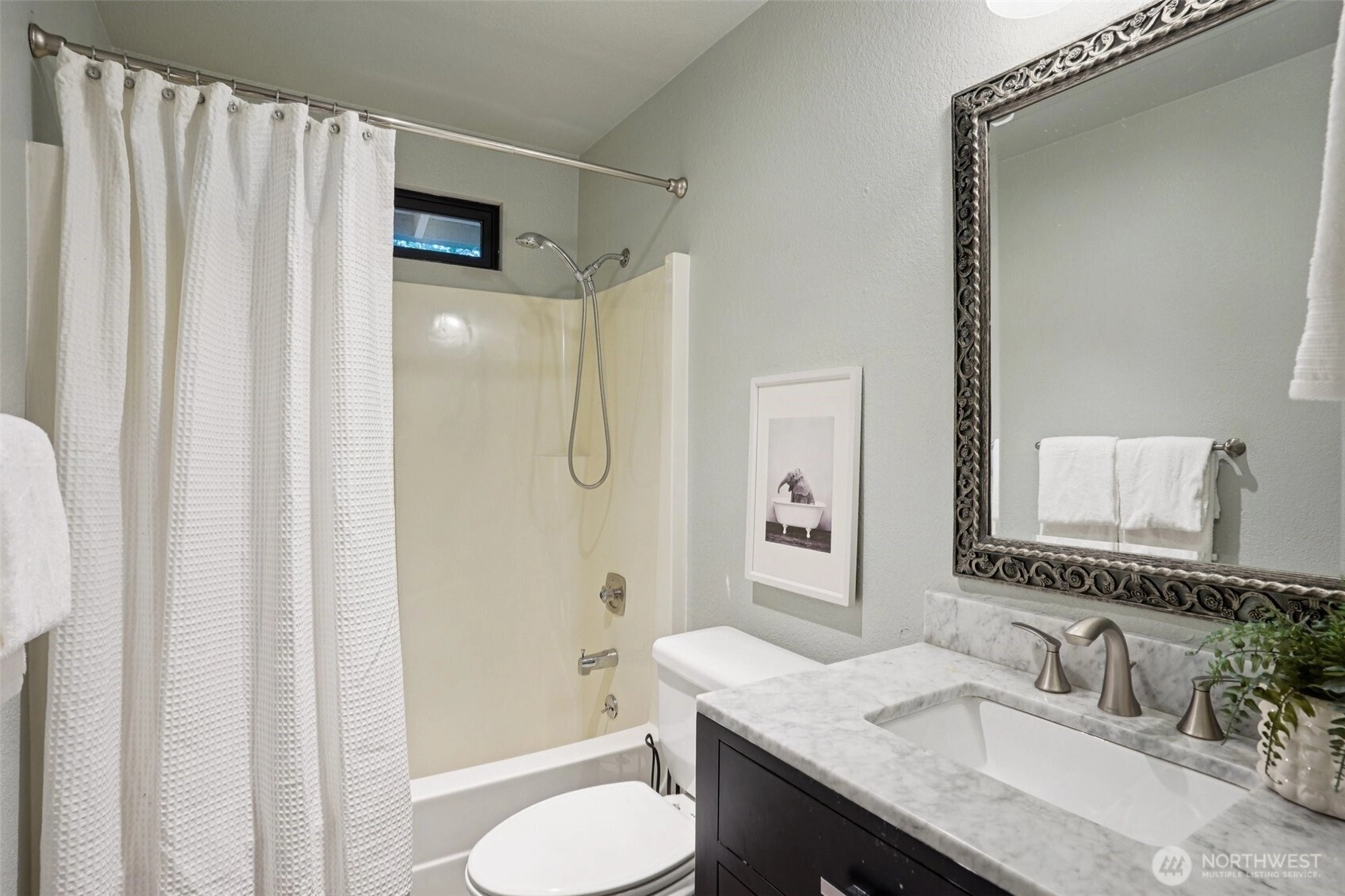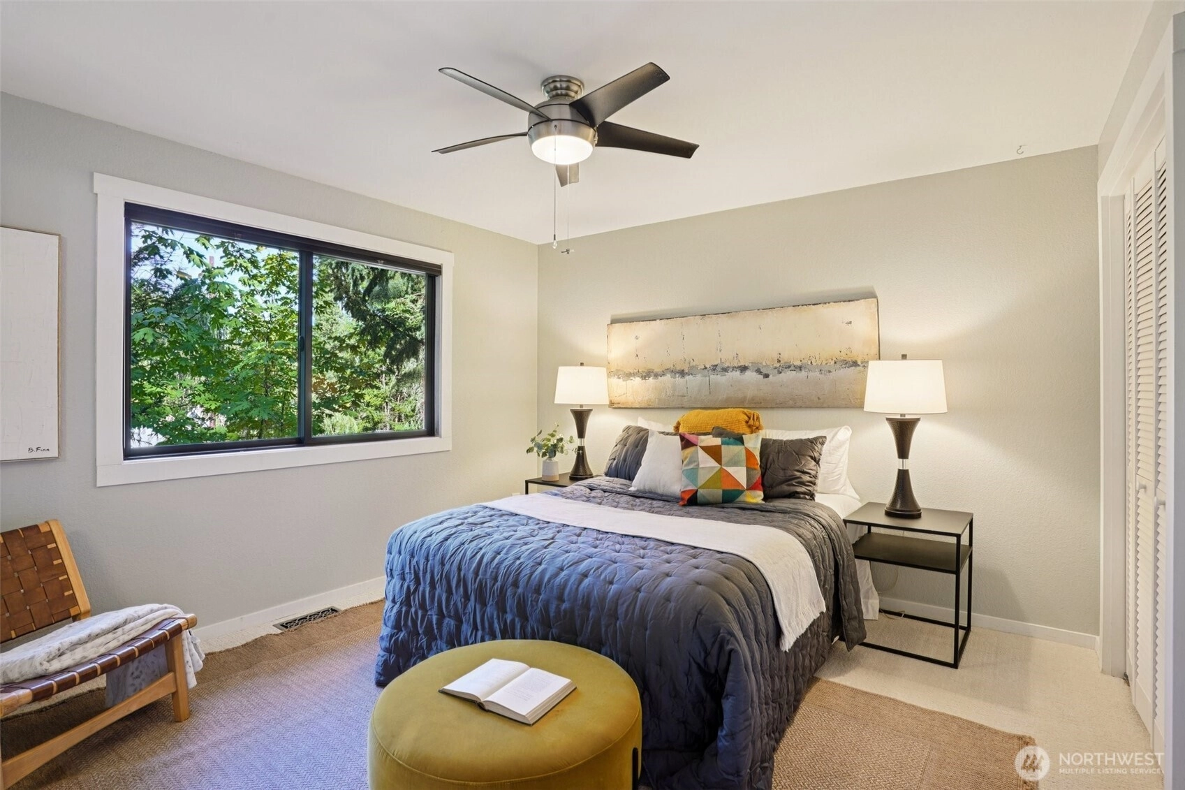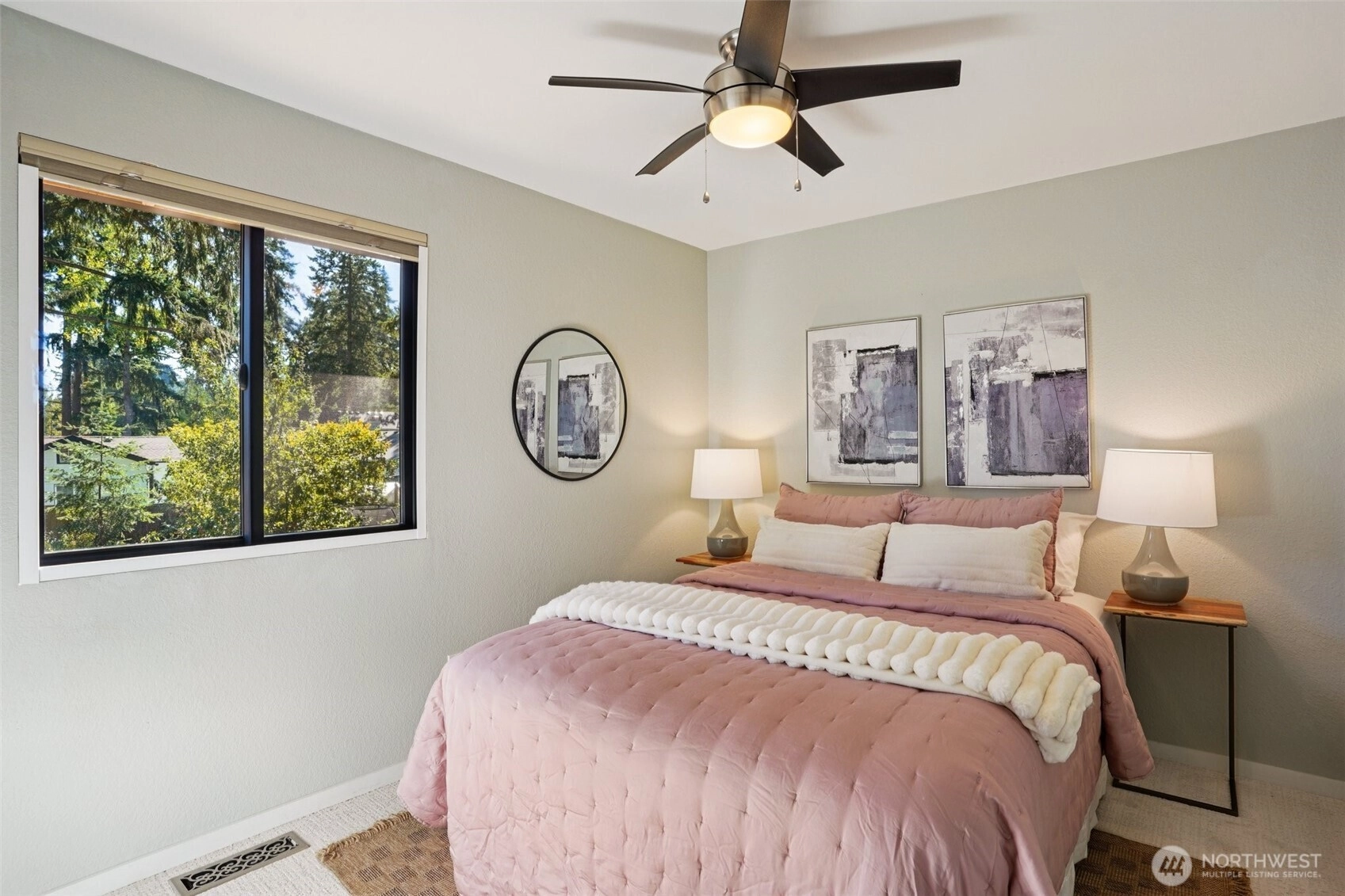 Step into comfort and convenience at this beautifully refreshed Shoreline home that sits at the end of a private drive. Inside, brand new carpet and fresh interior paint create a welcoming, move-in ready feel. The main floor has an open floor plan with an updated kitchen for easy entertaining, a primary bedroom with en-suite bath and two additional bedrooms + full bath. Downstairs is a large family room, office nook, a 4th bedroom and full bath. Central A/C keeps you comfortable on warmer days. Enjoy outdoor entertaining under the pergola in the spacious backyard, which comes with an amazing tree house! Convenient location with easy access to shopping, I-5 and the Shoreline North/185th light rail station.