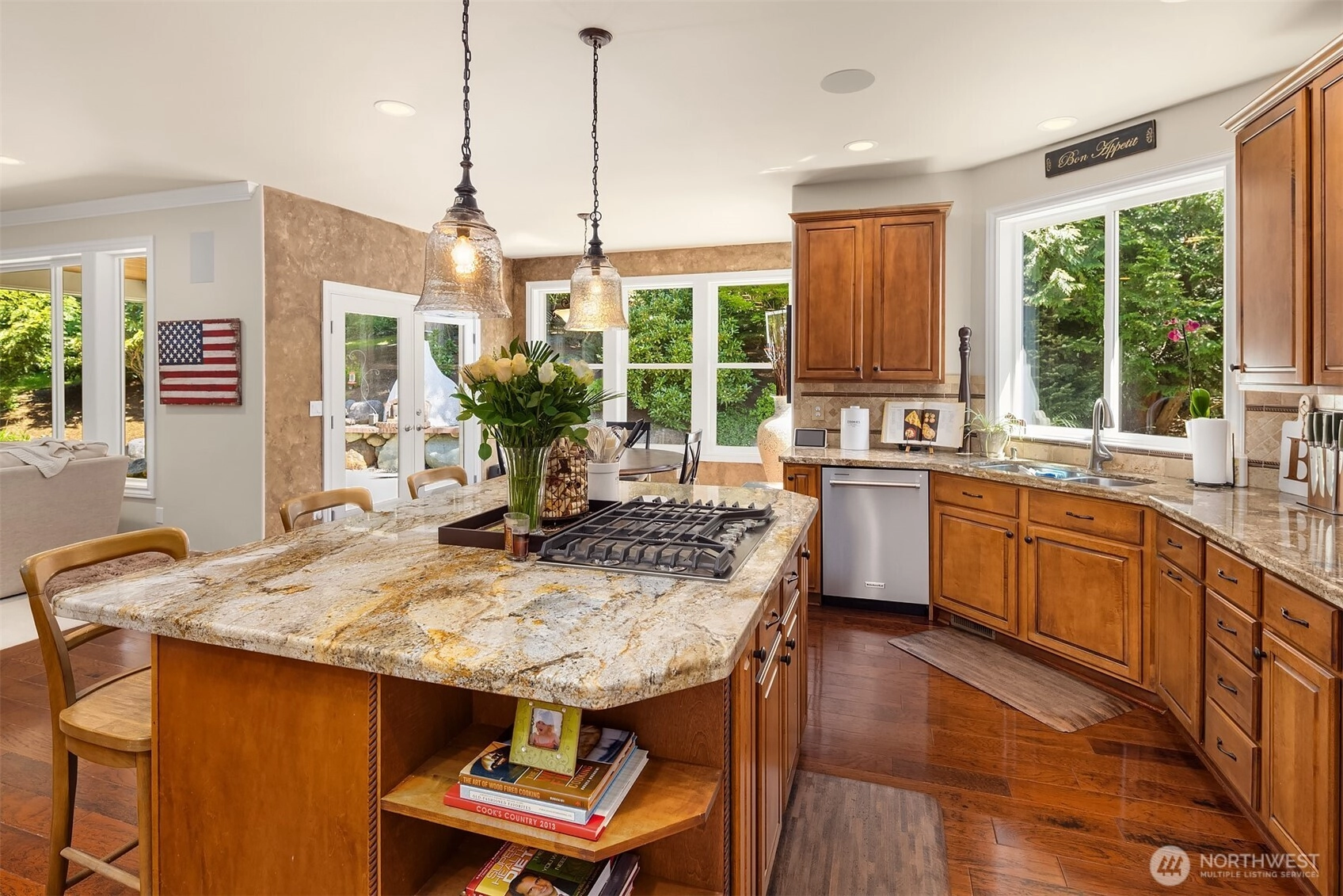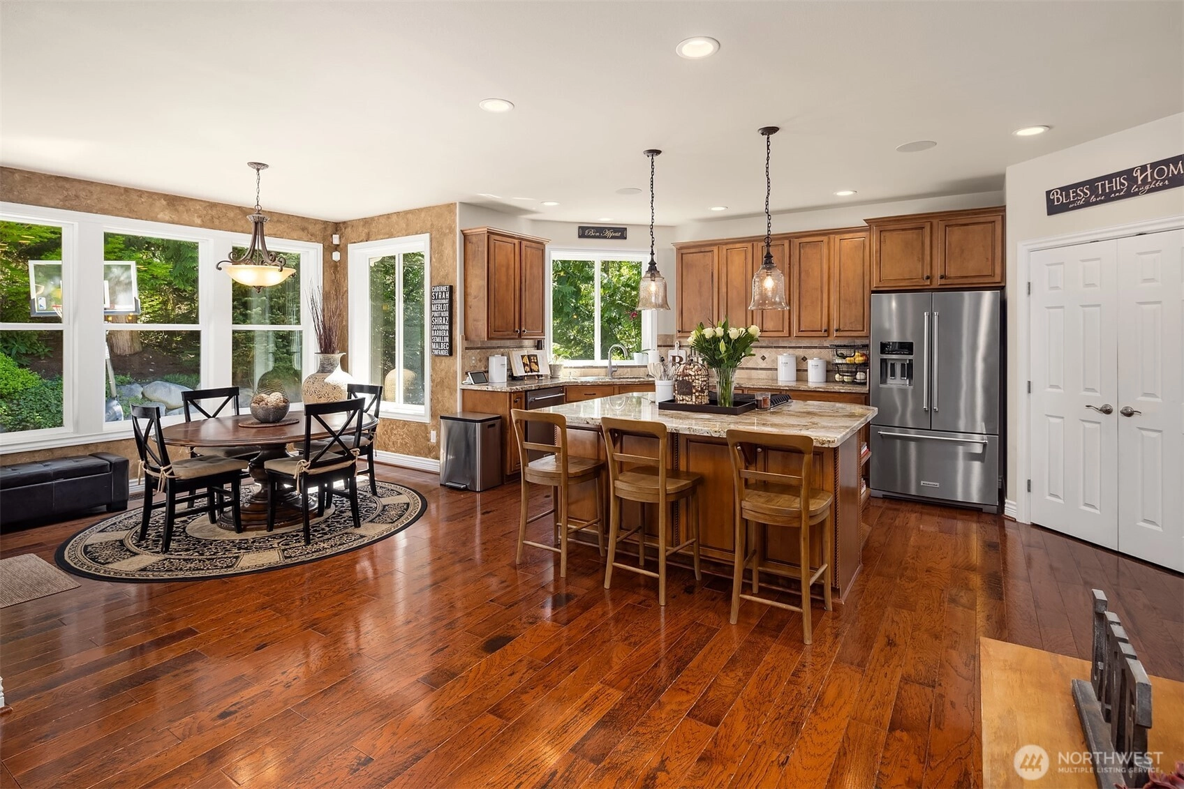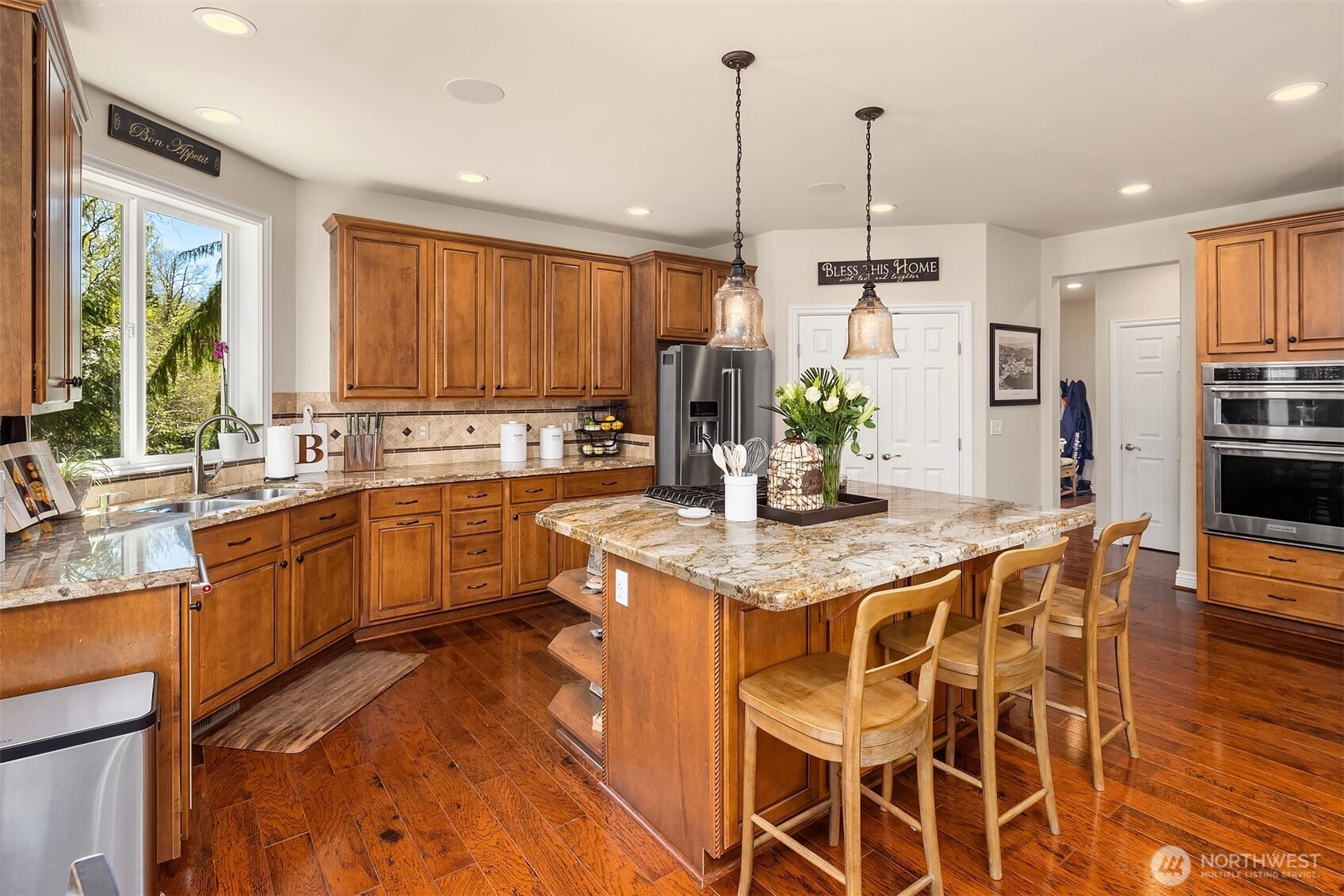 Maple Valley's Cornerstone Community offers gated living with 2+ million dollar neighborhing homes! A Private 2 acre corner lot location showcases this terrific 2 sty home featuring a main floor primary with 2nd En-suite bedroom on main floor. Inviting Great Room kitchen with island, breakfast nook, butlers pantry, built-ins and ample storage. In addition there is a main floor den plus living/flex room off entry. Additional oversized bedrooms on upper level with full bath & large bonus rm spaces as well. Covered outdoor living, pizza oven & tremendous full length room over massive 3 car garage offering endless storage & hobby options. Home is ideally set back off street for privacy. Realist sale info is not accurate. last sale was 2013.