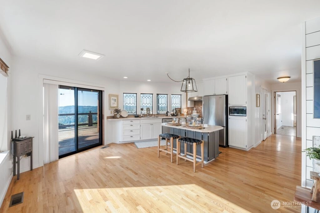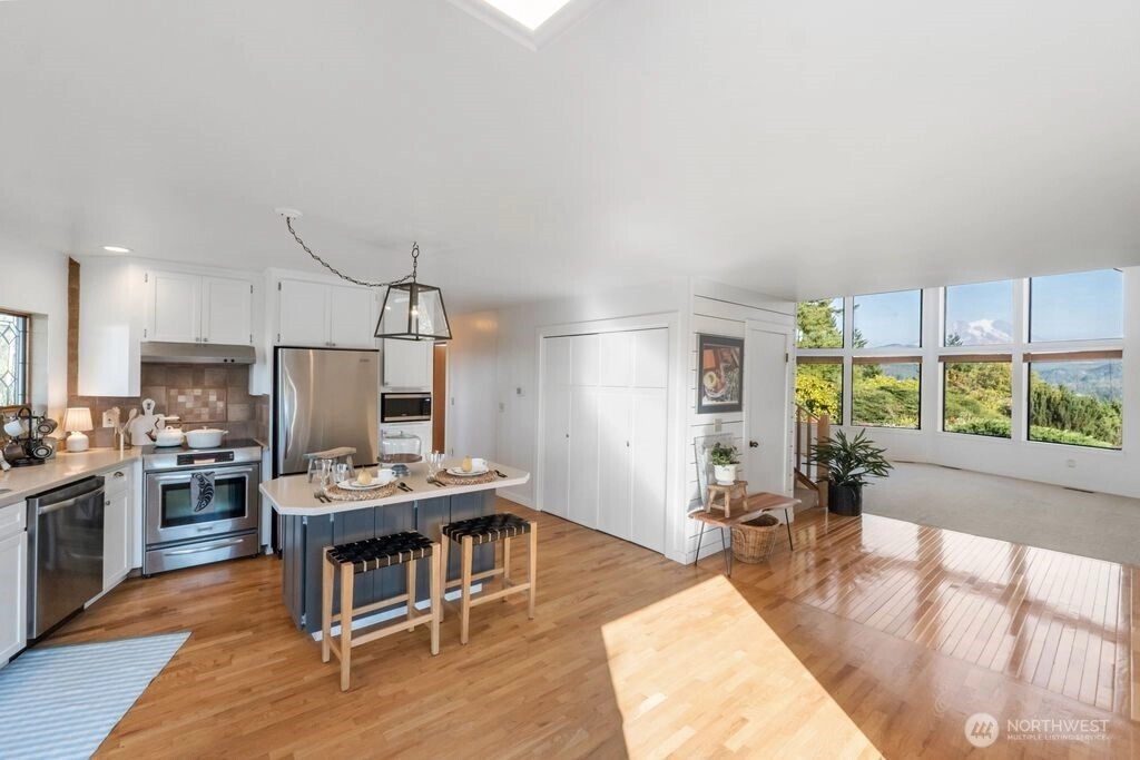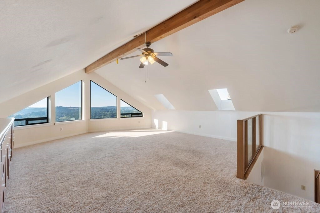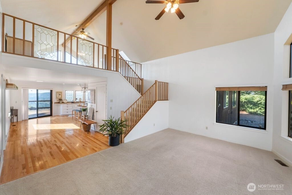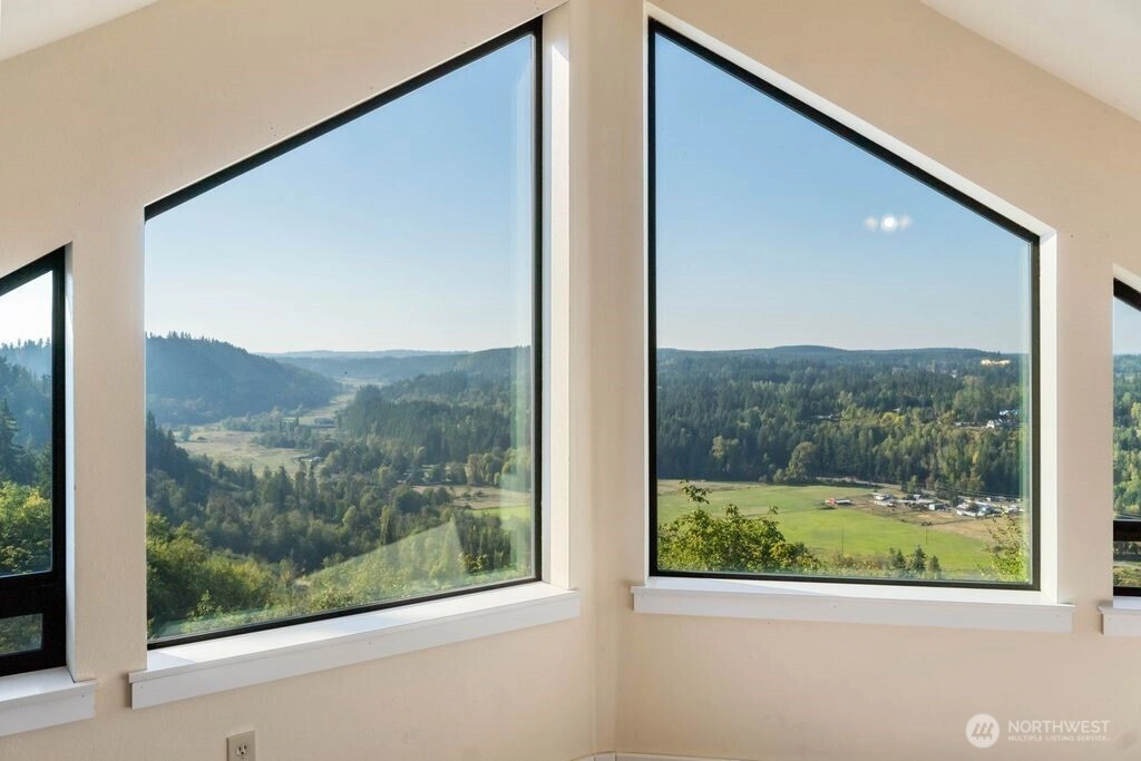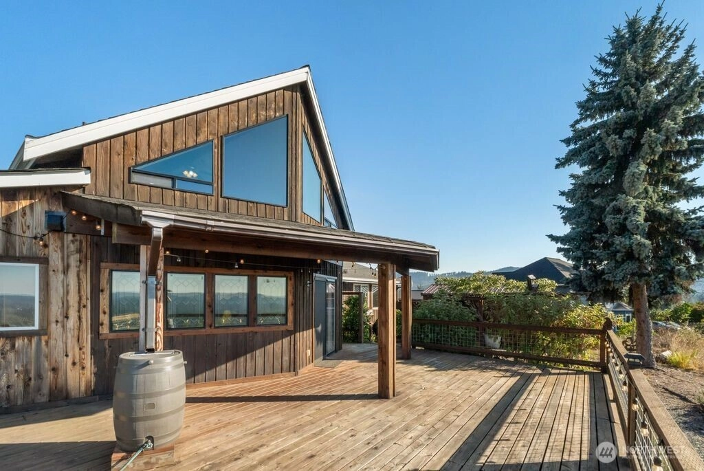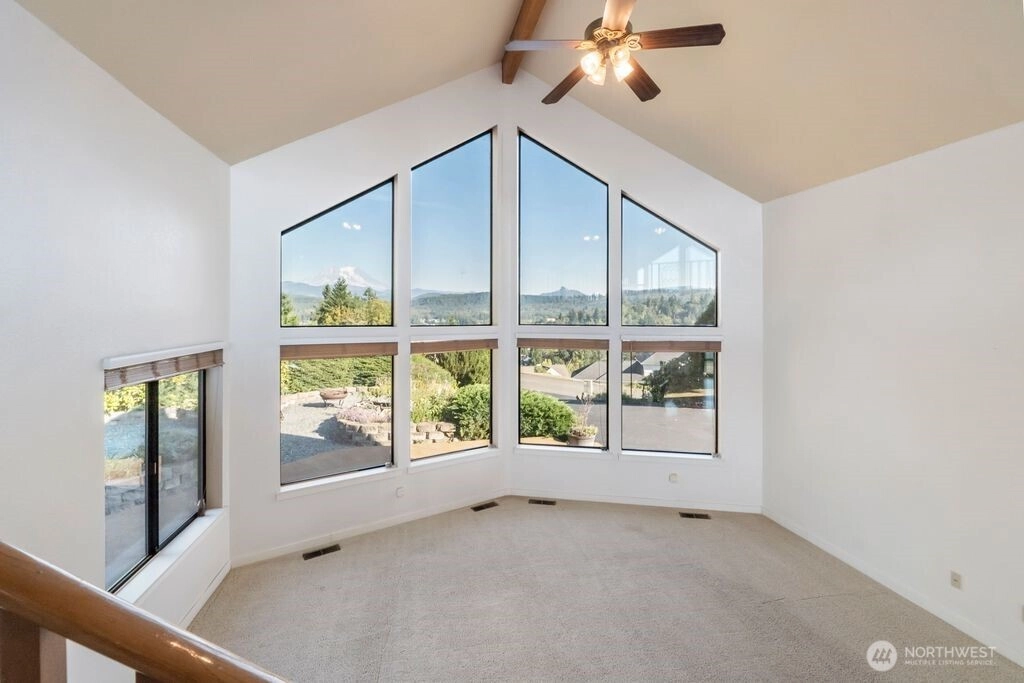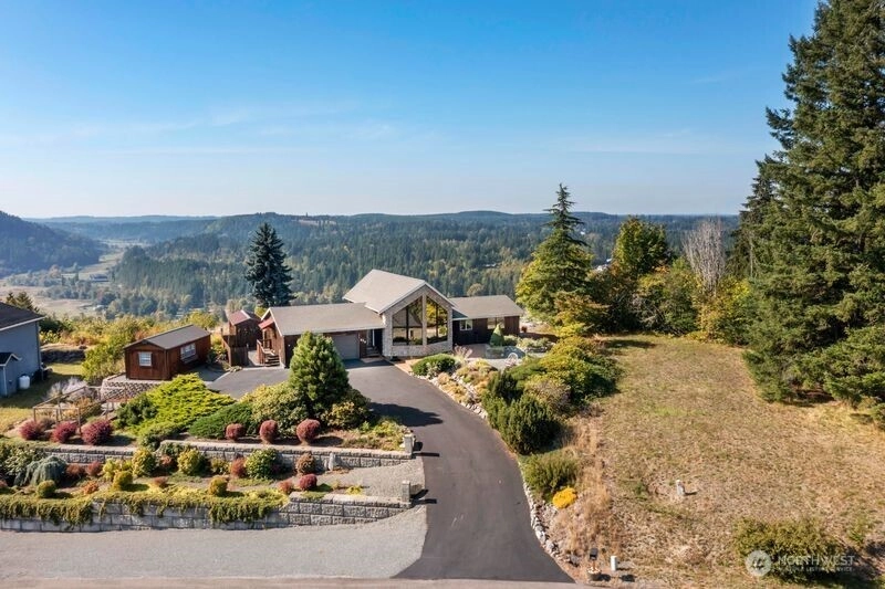 This mountain retreat home is so unique. It was built and positioned on the lot to capture each sunrise and sunset from inside windows. Year-round natural light throughout home. Has a panoramic view of Mt. Rainier in front w/ equally amazing views in back (territorial, valley & Ohop Lake in the winter).  Primary bedroom on main level w/ updated bath, newer tile and countertop. Updated kitchen. A loft, wood flooring, a secluded patio, two large wood sheds, garden space, RV parking, heat pump, mature landscaping w/water feature. Has a one bedroom attached dwelling that would be perfect for generational living or an airbnd. The beauty that surrounds this home year-round is breathtaking, a must See!!