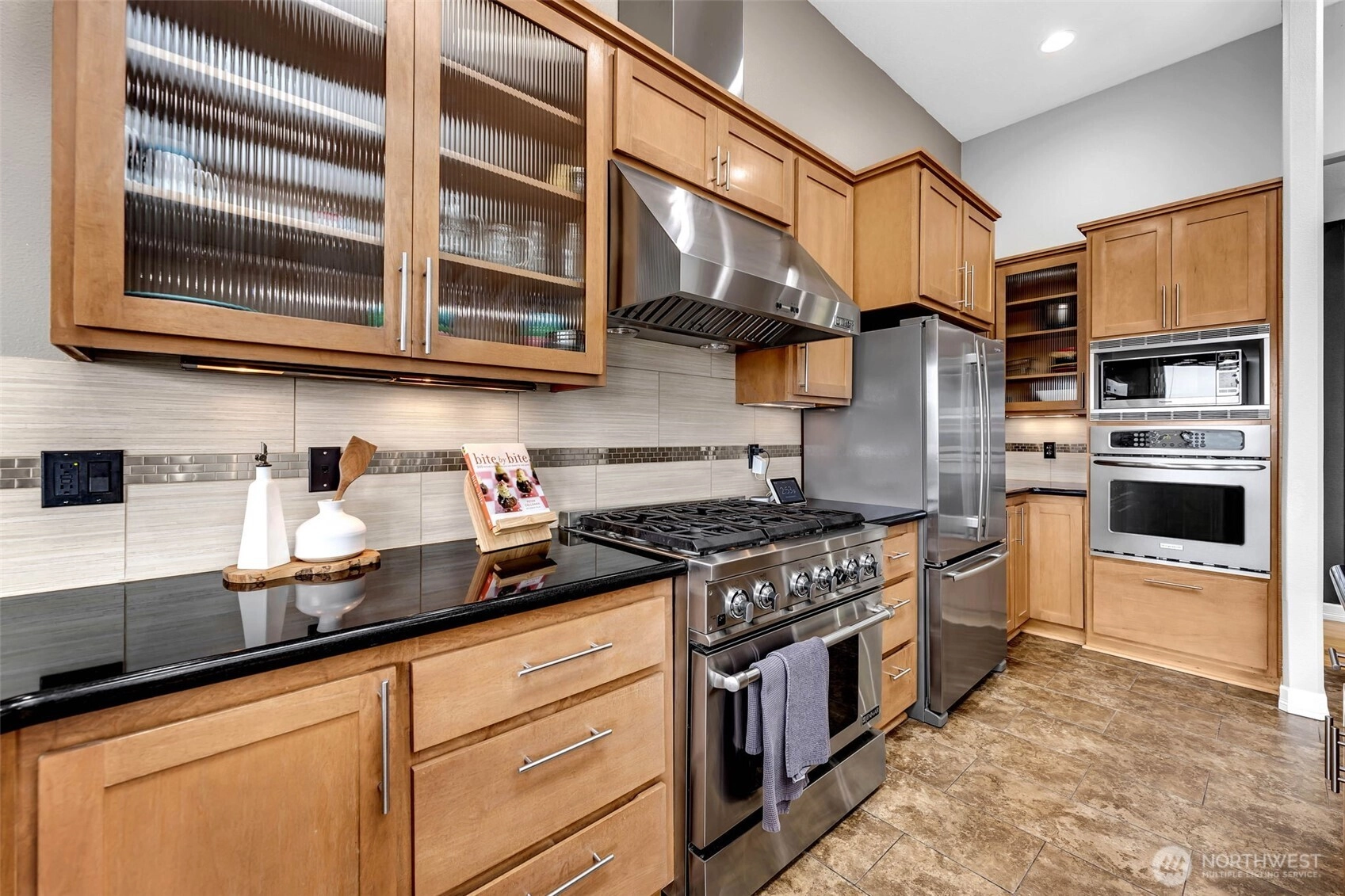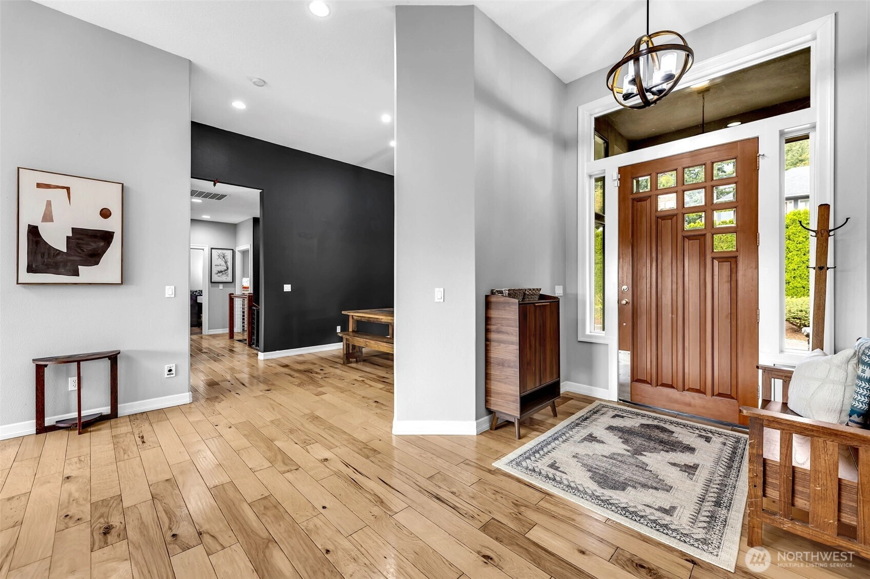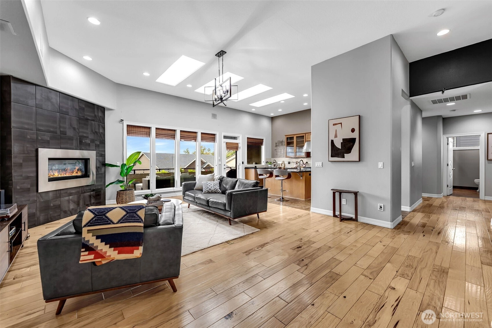 A stunning Custom Ranch Home with BEAUTIFUL Mt. Hood & Columbia River Views! Experience main level living in this beautifully designed 4 bedroom, 3.5 bath home, featuring two spacious ensuite bedrooms for added comfort and privacy. The open-concept layout is enhanced by the 12 foot ceilings & hardwood floors, PLUS all main level living! The kitchen is a chef’s dream, outfitted with high-end appliances & sleek finishes, truly perfect for entertaining. Step outside to the outdoor patio, extending your living space for year-round enjoyment. The full daylight basement offers flexibility, ideal for multigenerational living, or additional entertaining space. Situated at the end of a quiet cul-de-sac, this home offers peace, privacy, and views!
