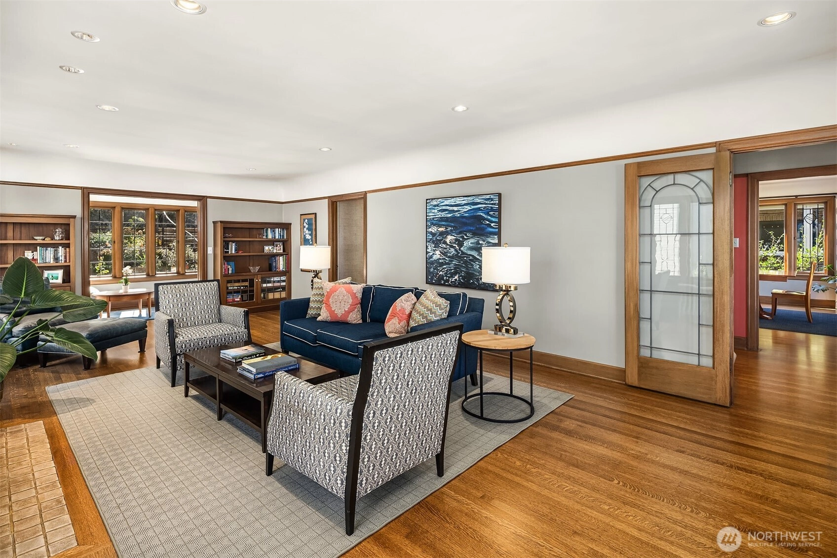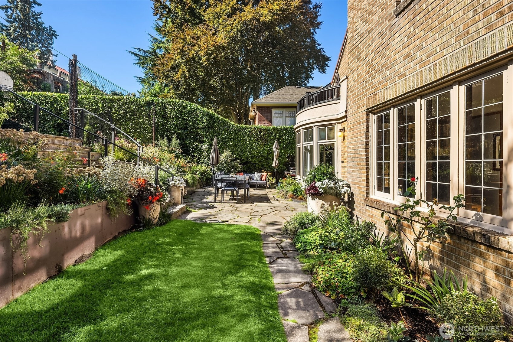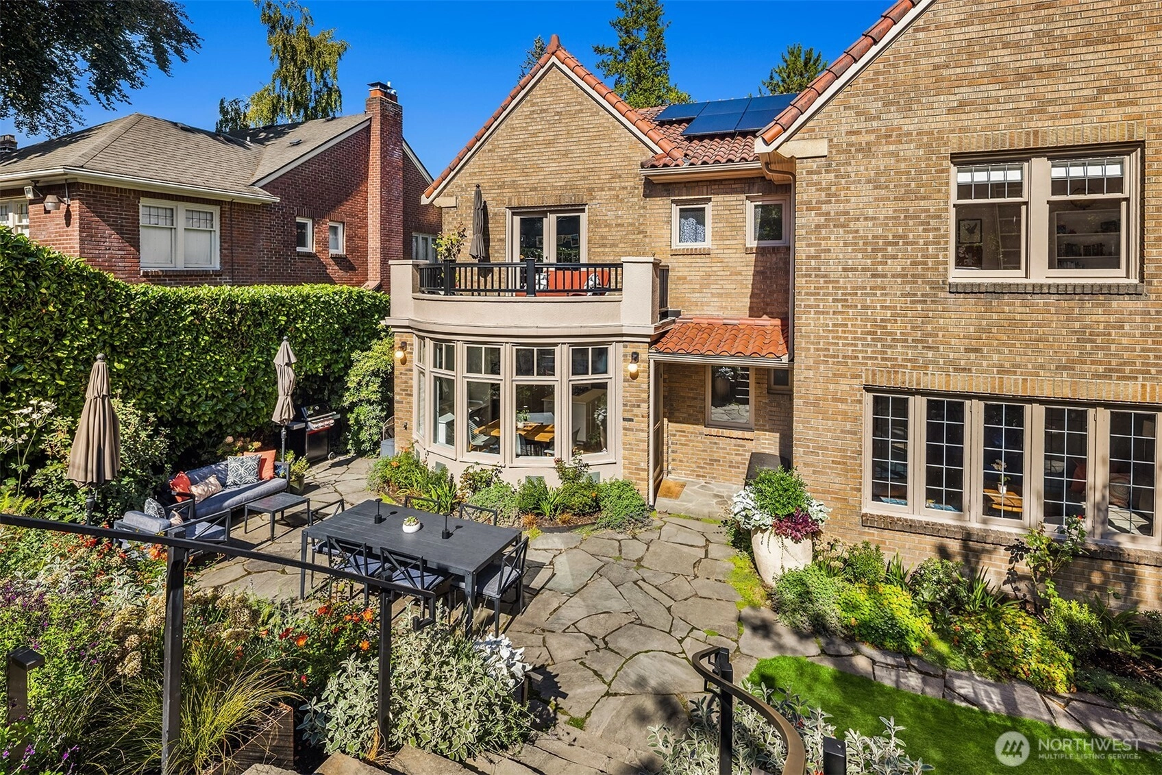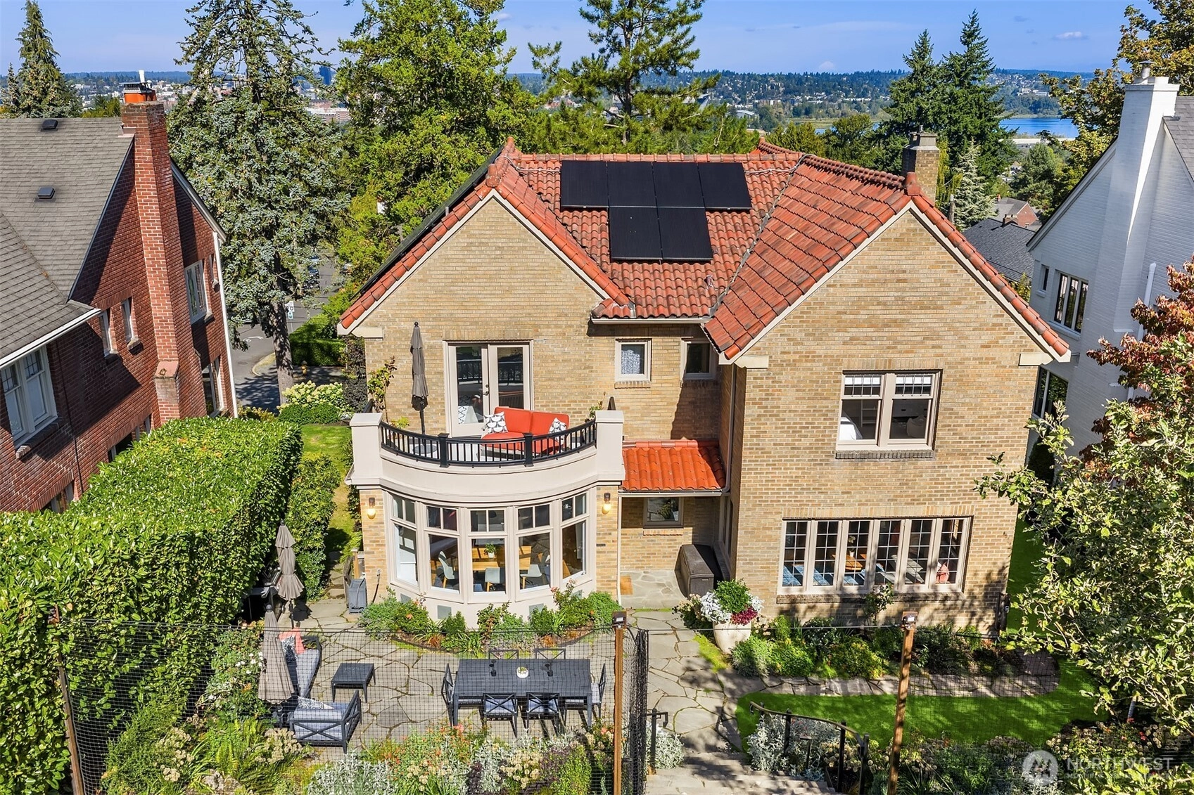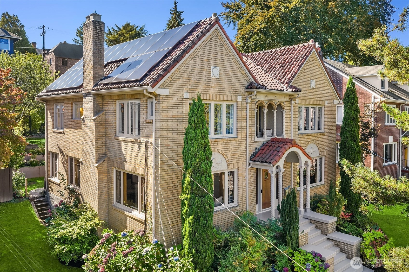 One of N Capitol Hill's finest homes w/ views of the Lake and Cascades! Built in 1926 and exquisitely maintained, this luxury home combines historical details w/ contemporary necessities. Original craftsmanship steeped throughout with tradition. Beautiful leaded glass windows, hardwood floors, Batchelder FP, French Doors, Coved Ceilings, picture moulding, custom built-in shelves & private balcony overlooking professionally landscaped yard w/ elegant gardens, patio & sport court. Exquisite formal LR, DR, chef’s kitchen, sunroom & spacious new media center. Plus more…updated radiant heaters, tile roof w/ solar panels, updated electrical panel, 2-car garage w/ EV charger. Close to restaurants, coffee shops, parks, bike trails, UW and freeway.