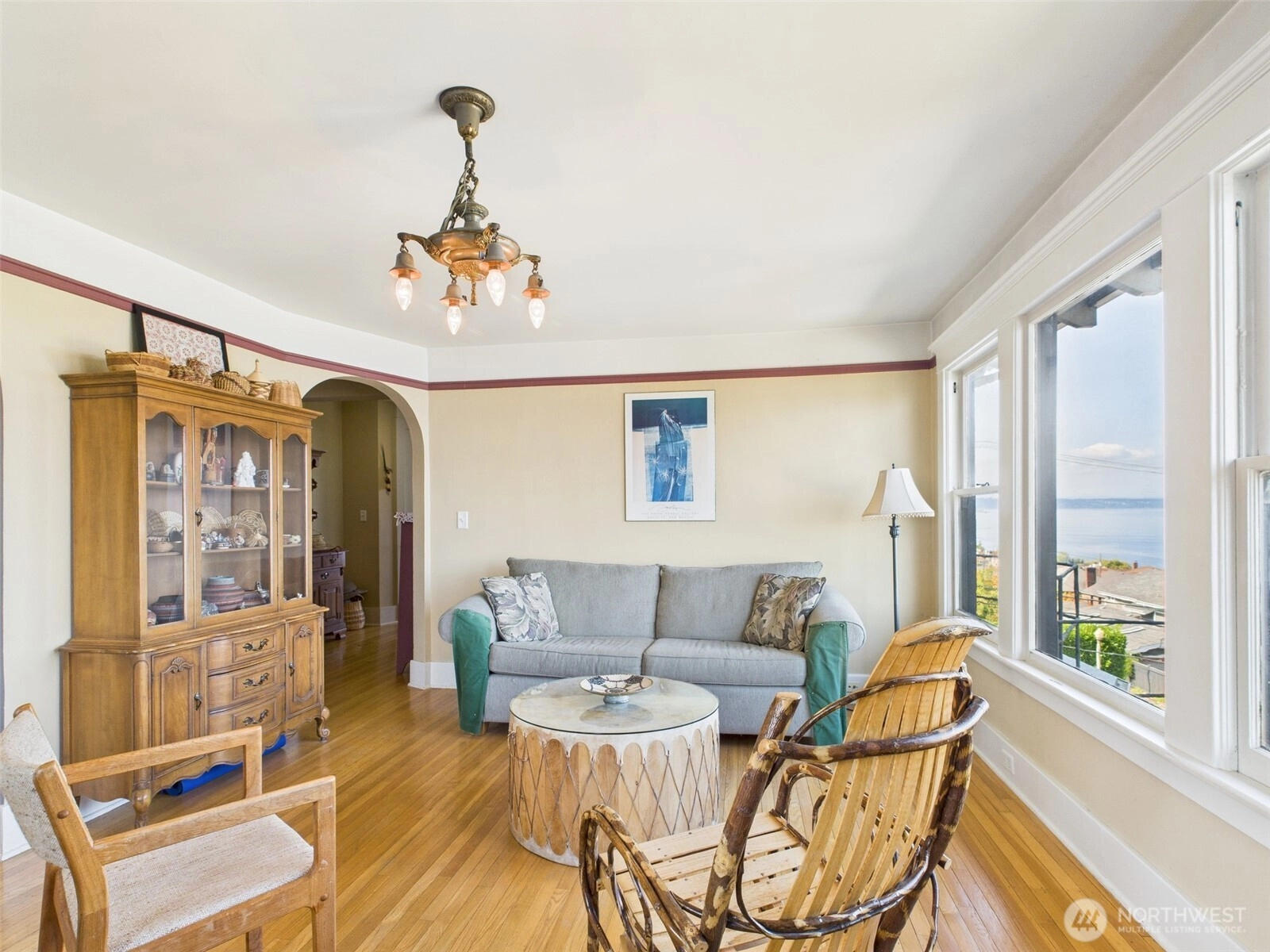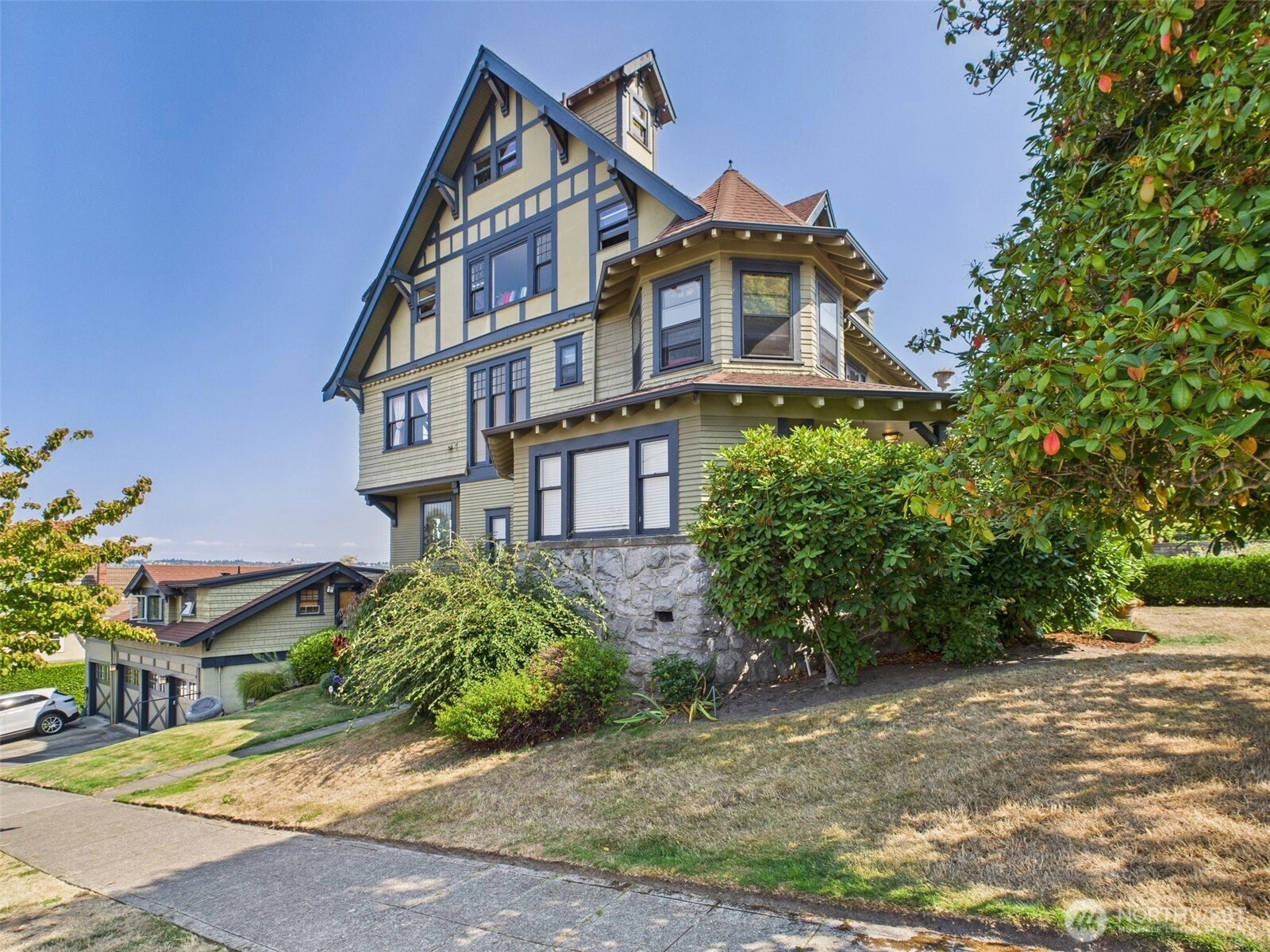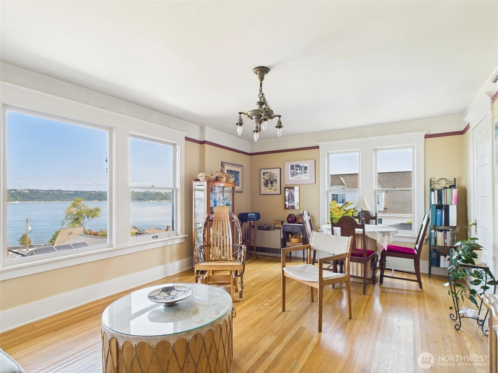 Located in Tacoma’s vibrant Stadium District, this historic 1905 residence exudes timeless elegance. Thoughtfully converted into stylish condo homes while preserving its original charm and character, this light-filled second-floor unit offers unobstructed views of Commencement Bay from nearly every window. Beautiful hardwood flooring flows throughout, complemented by graceful curved entryways, large moldings, and original fixtures that reflect the home’s rich history. The bedroom features French doors opening to a quaint sitting area, perfect for morning coffee or evening relaxation. With its seamless blend of historic details and modern convenience, this condo provides a truly unique and inviting living experience.