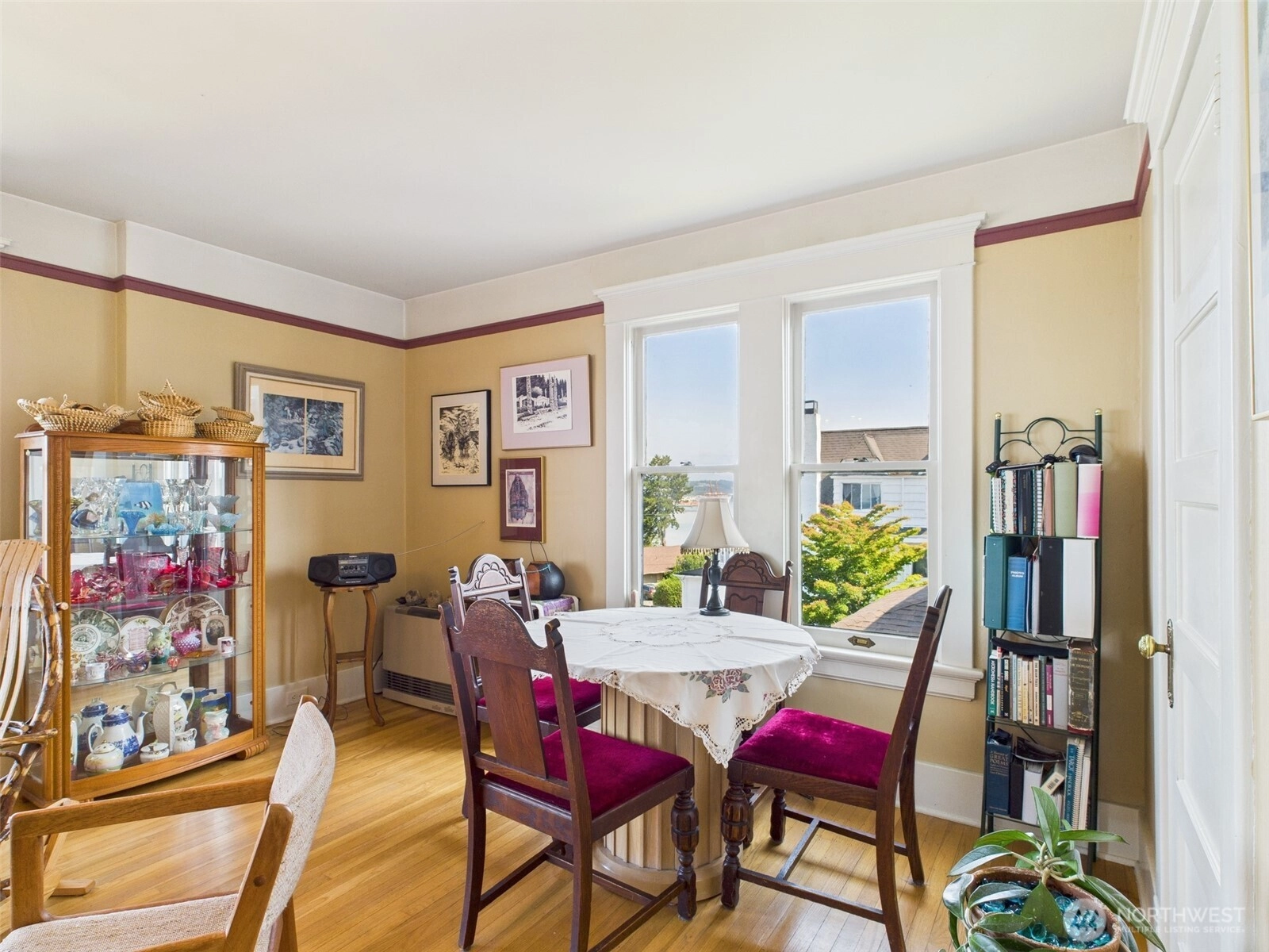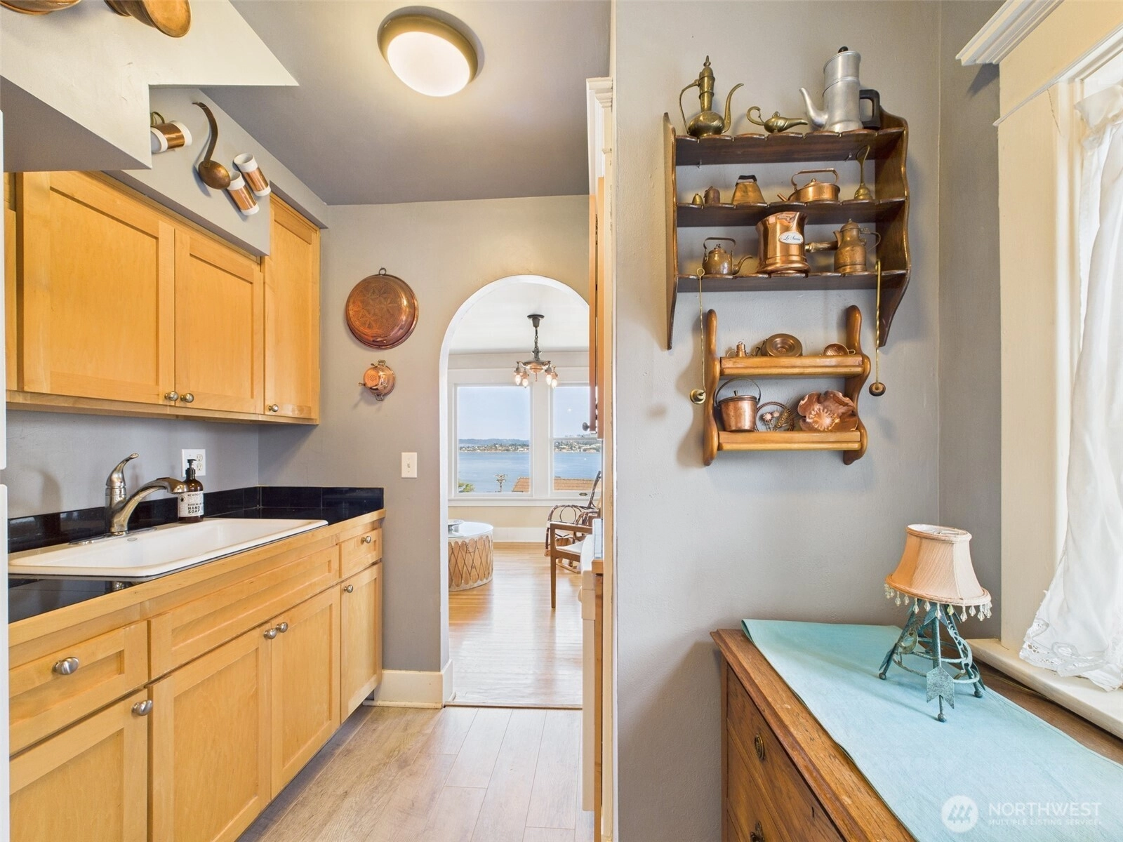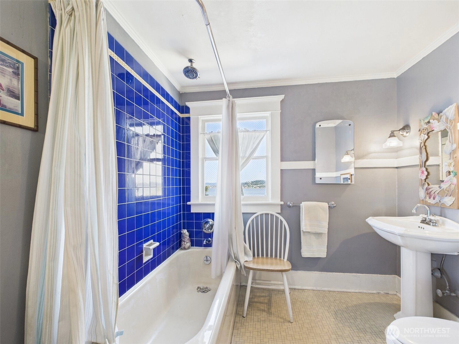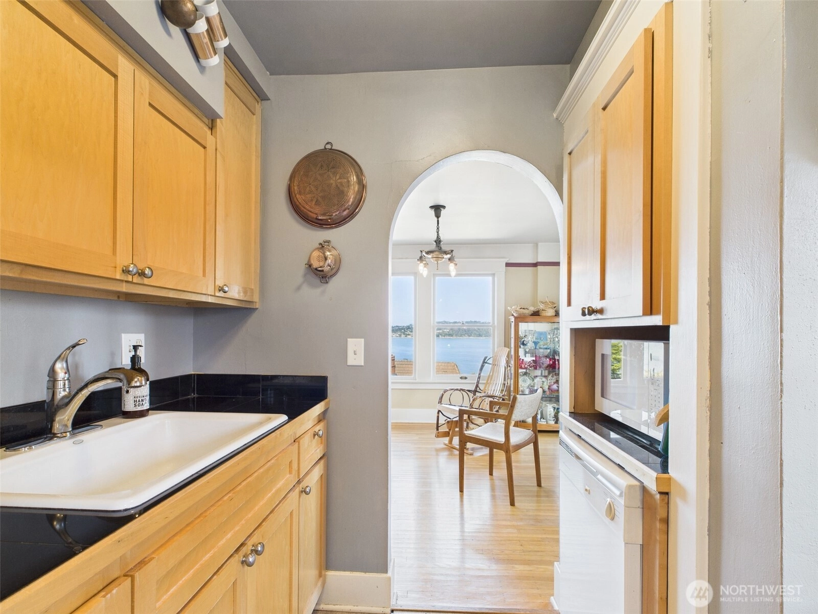 Located in Tacoma’s vibrant Stadium District, this historic 1905 residence exudes timeless elegance. Thoughtfully converted into stylish condo homes while preserving its original charm and character, this light-filled second-floor unit offers unobstructed views of Commencement Bay from nearly every window. Beautiful hardwood flooring flows throughout, complemented by graceful curved entryways, large moldings, and original fixtures that reflect the home’s rich history. The bedroom features French doors opening to a quaint sitting area, perfect for morning coffee or evening relaxation. With its seamless blend of historic details and modern convenience, this condo provides a truly unique and inviting living experience.