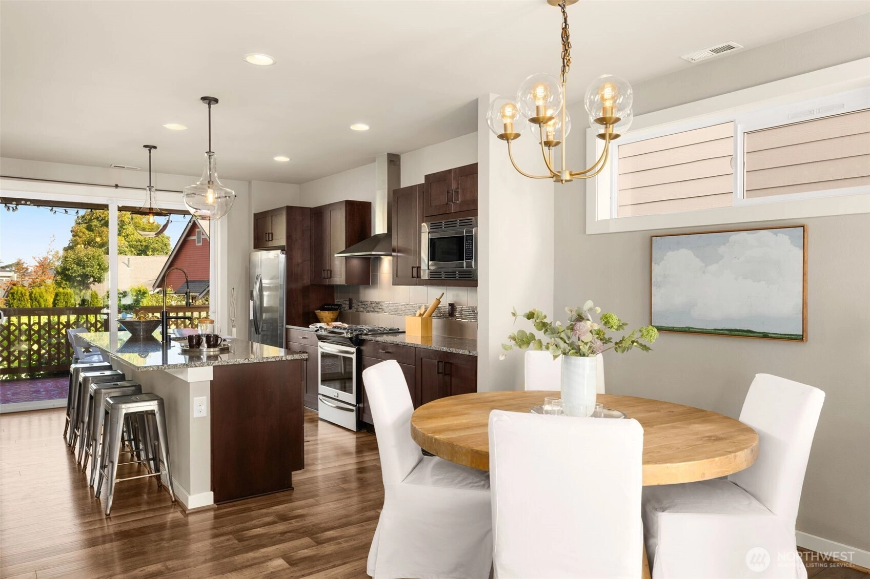 Welcome to West Seattle living at its finest. This beautiful 4-bedroom home is filled with designer touches and thoughtful details, offering style & function in every space. High ceilings & abundant natural light highlight the spacious main level, where a stunning kitchen w/ ample storage flows seamlessly to a large deck—perfect for entertaining or everyday living. Enjoy modern upgrades incl A/C, heat pump, & a cozy fireplace for cool evenings. Upstairs, retreat to a serene primary suite with generous closet space & a spa-like feel. The private yard is complete with raised beds, while the garage adds convenience and extra storage. With versatile spaces, smart storage, & timeless design, this home offers everything you’ve been searching for.