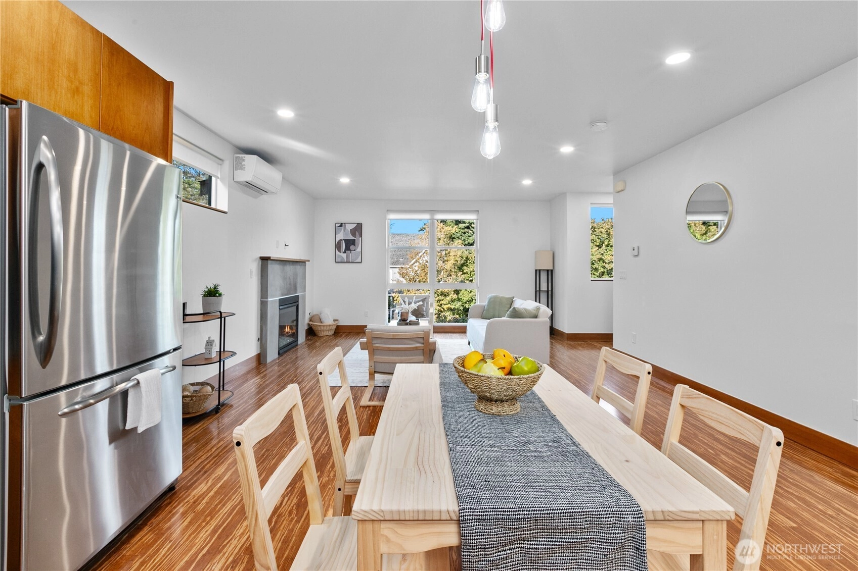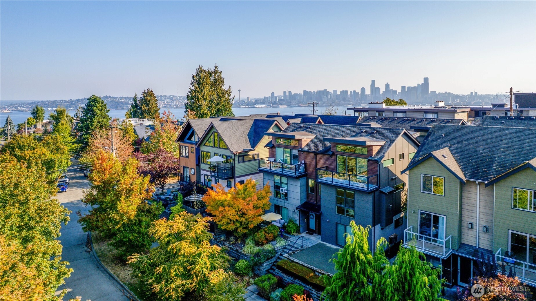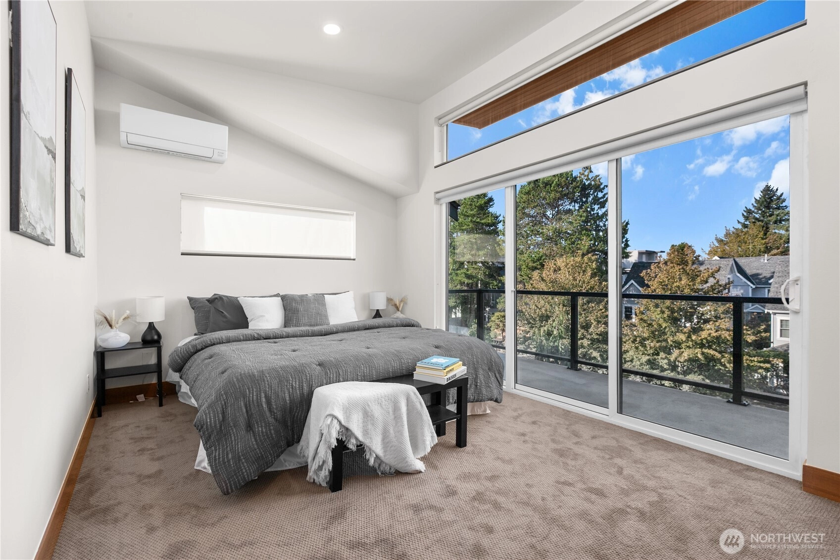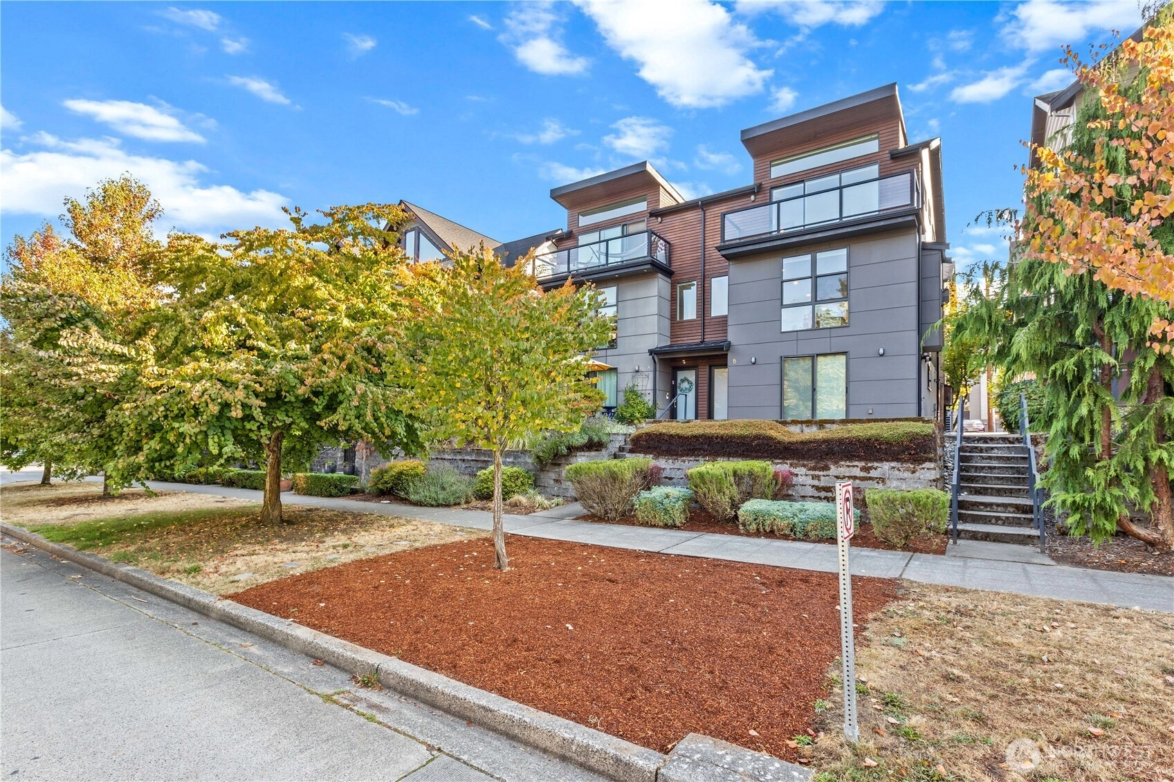 Exquisite 3 Bedroom, 2.5 Bath modern Townhome in the desirable North Admiral neighborhood of West Seattle. Featuring over 1,400 sq. ft. of sleek, clean lines and abundant natural light throughout. The modern gourmet kitchen opens to a spacious living area. The master bedroom suite offers panoramic views, providing a peaceful retreat. Enjoy year-round comfort with ductless heat pump heating and AC, radiant heated floors, and a gas fireplace. Recent updates include new blinds, carpet, and paint. This bright and airy townhome is a standout in the neighborhood and a must-see!