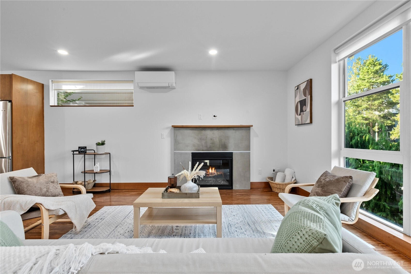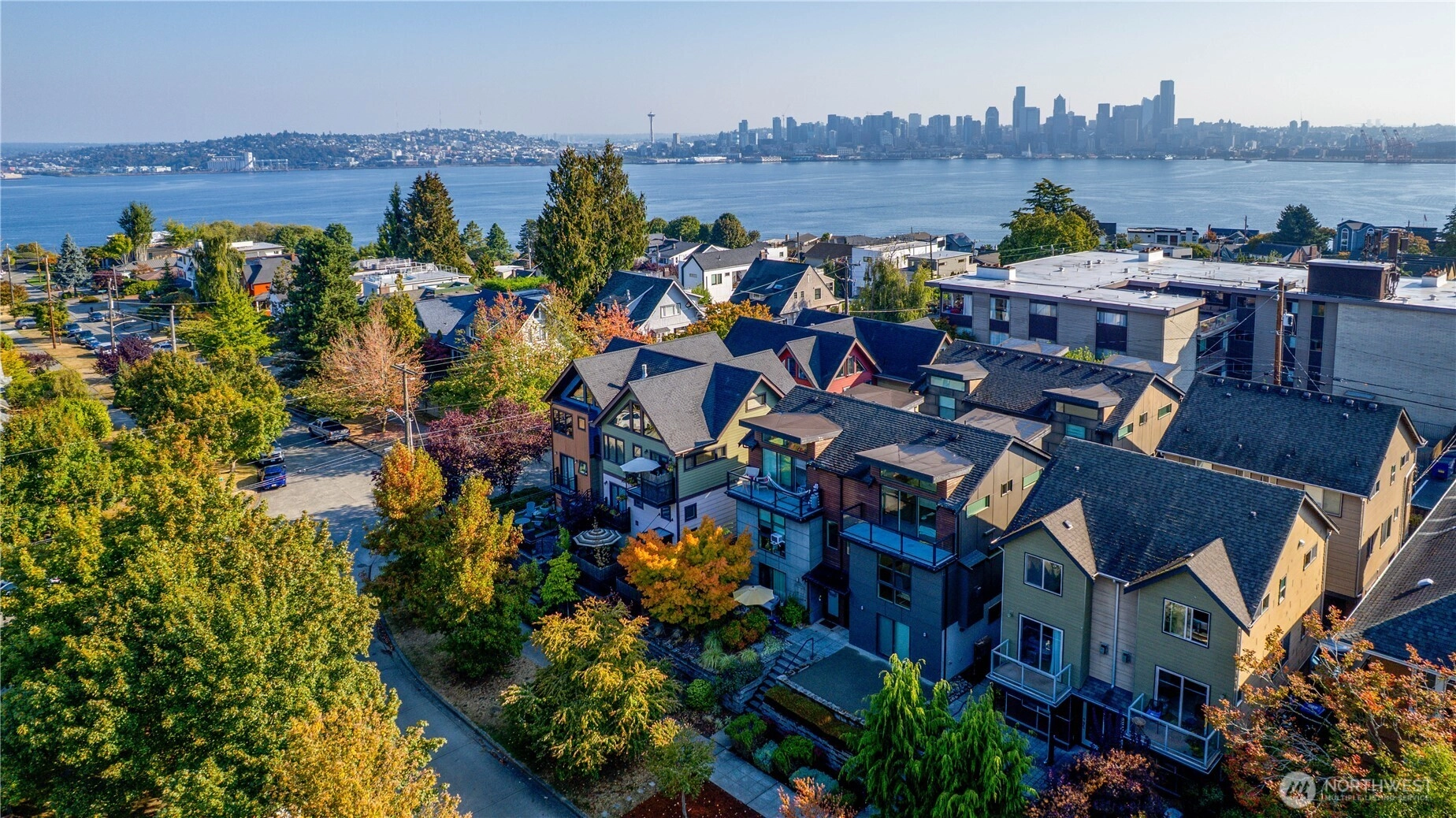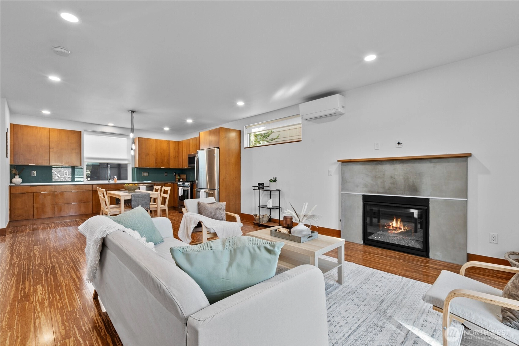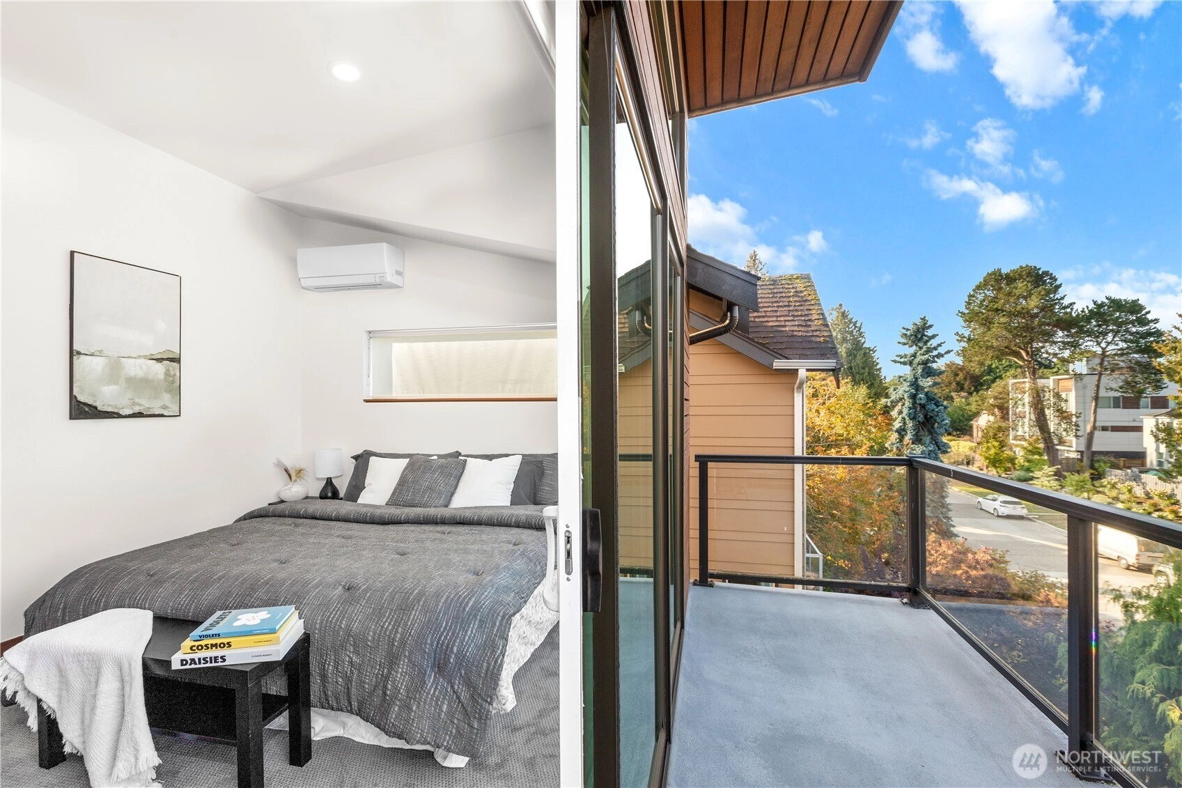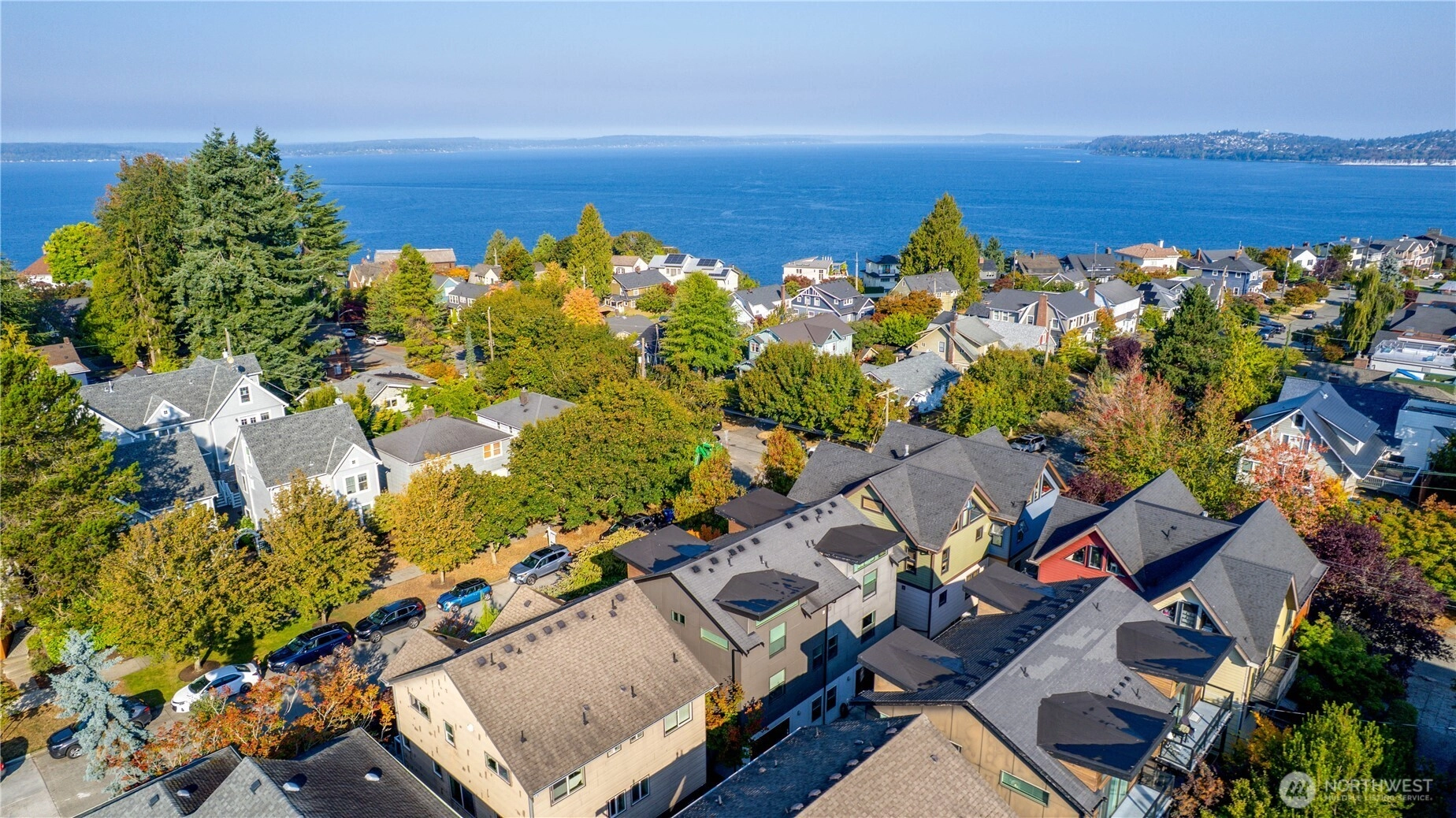 Exquisite 3 Bedroom, 2.5 Bath modern Townhome in the desirable North Admiral neighborhood of West Seattle. Featuring over 1,400 sq. ft. of sleek, clean lines and abundant natural light throughout. The modern gourmet kitchen opens to a spacious living area. The master bedroom suite offers panoramic views, providing a peaceful retreat. Enjoy year-round comfort with ductless heat pump heating and AC, radiant heated floors, and a gas fireplace. Recent updates include new blinds, carpet, and paint. This bright and airy townhome is a standout in the neighborhood and a must-see!