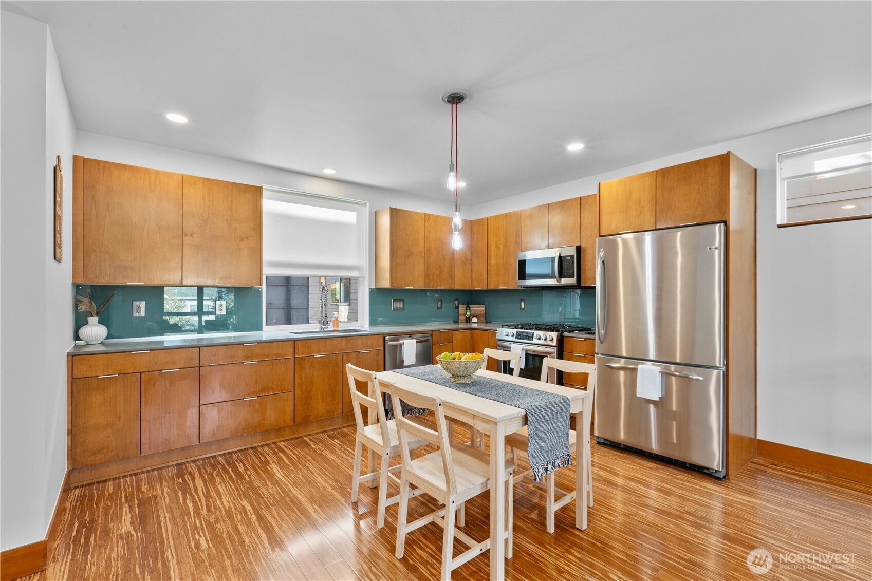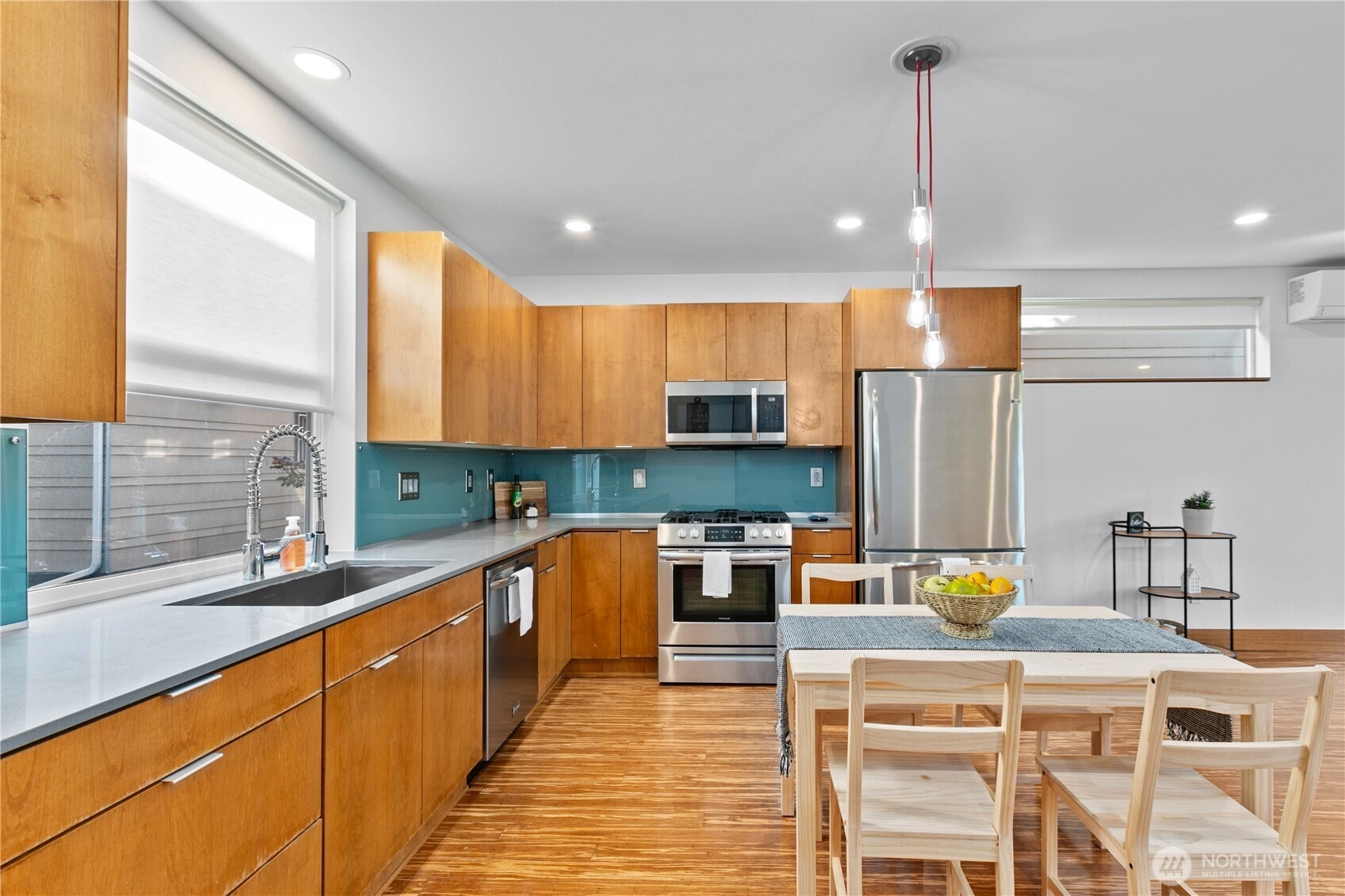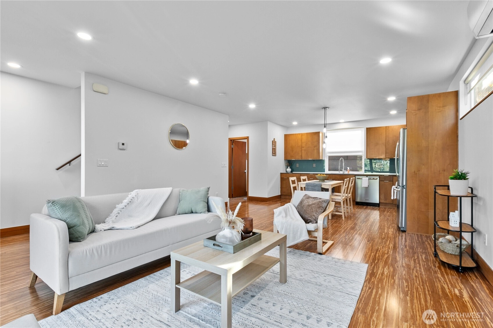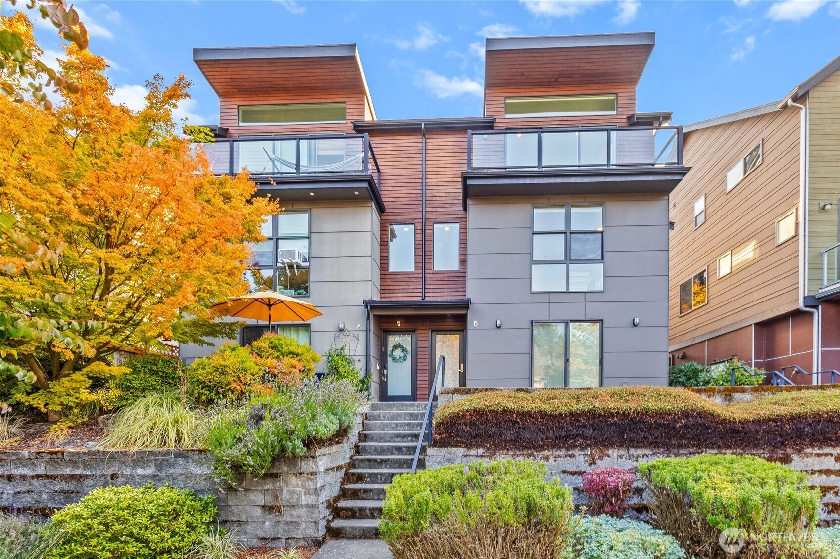Exquisite 3 Bedroom, 2.5 Bath modern Townhome in the desirable North Admiral neighborhood of West Seattle. Featuring over 1,400 sq. ft. of sleek, clean lines and abundant natural light throughout. The modern gourmet kitchen opens to a spacious living area. The master bedroom suite offers panoramic views, providing a peaceful retreat. Enjoy year-round comfort with ductless heat pump heating and AC, radiant heated floors, and a gas fireplace. Recent updates include new blinds, carpet, and paint. This bright and airy townhome is a standout in the neighborhood and a must-see!