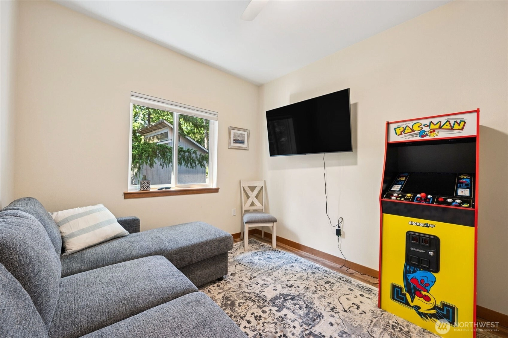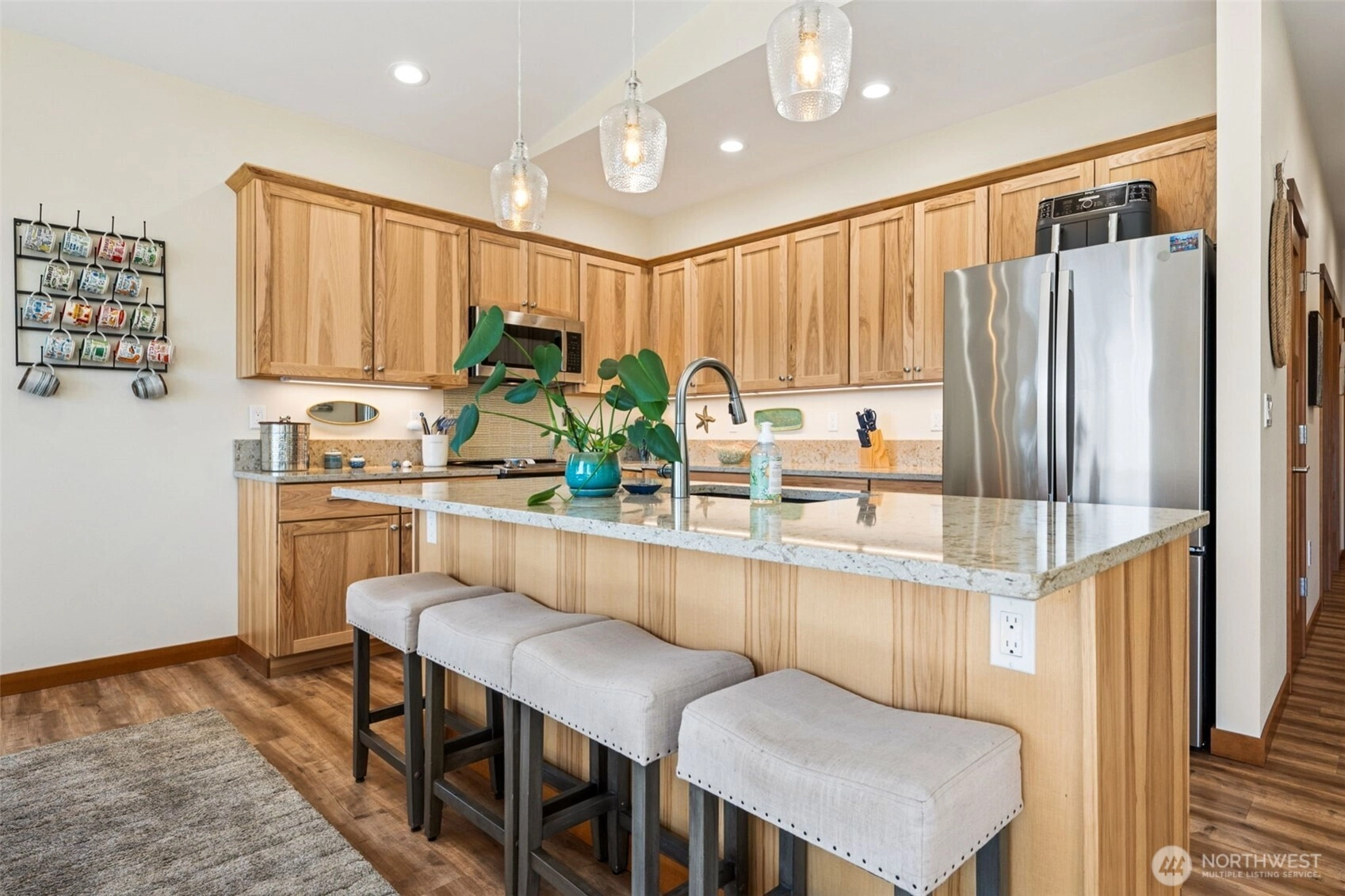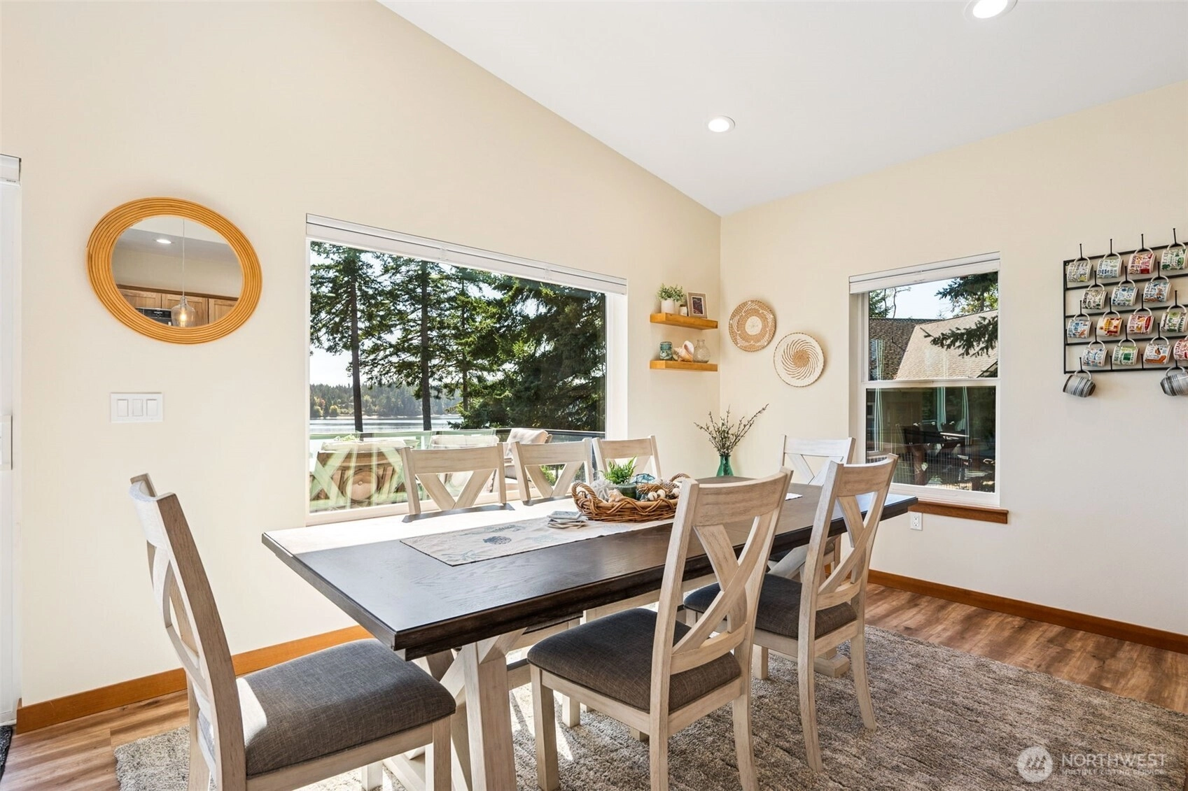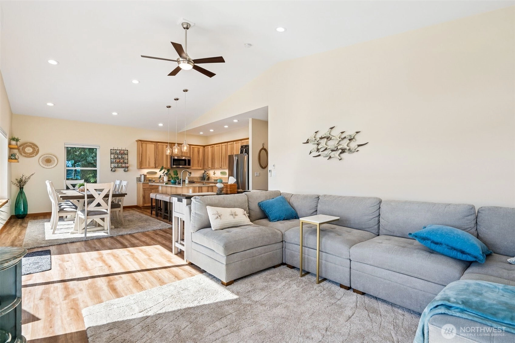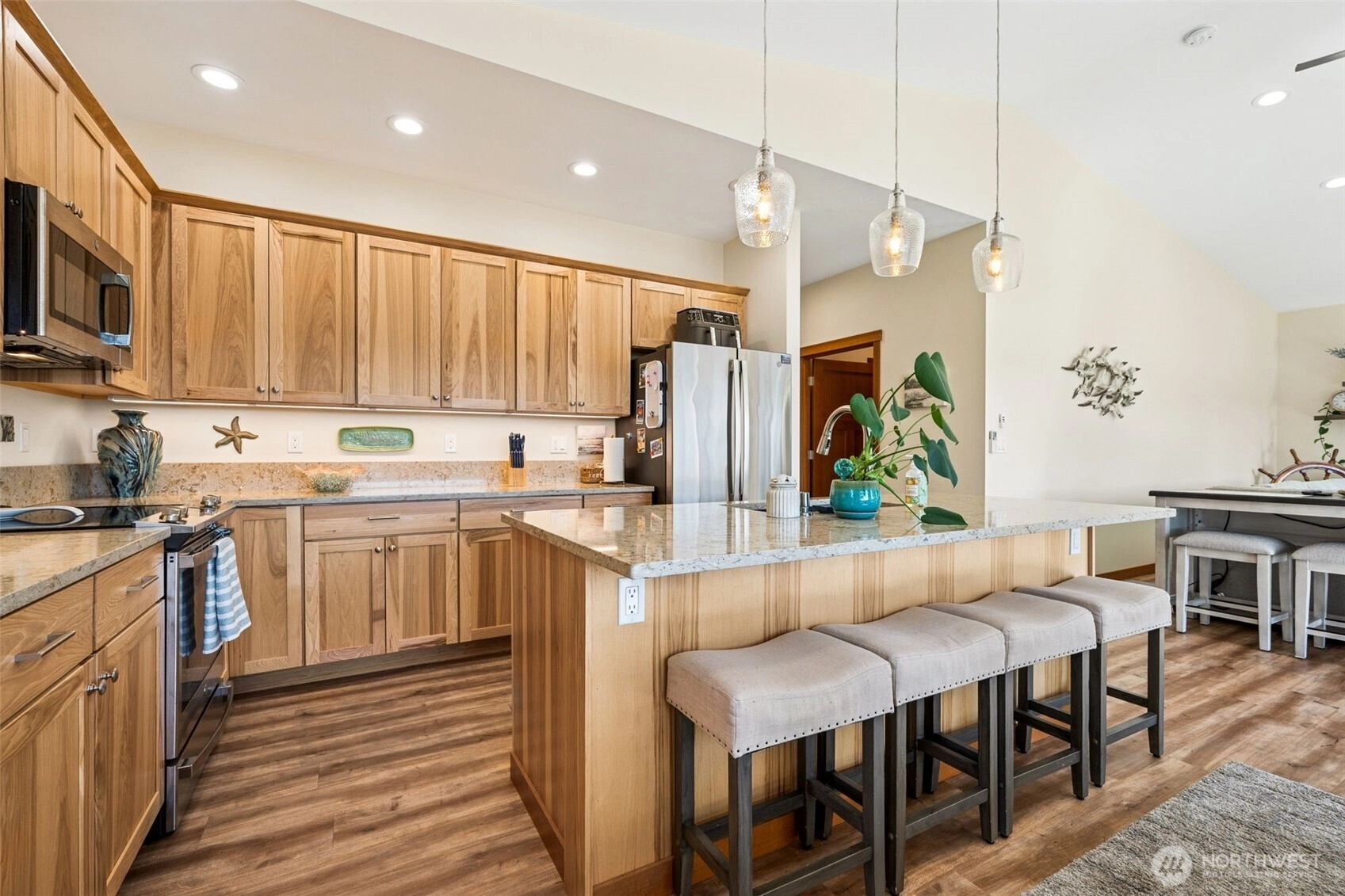 Puget Sound Waterfront Home, newly built in 2022. INCREDIBLE 180+ degree views & +/- 120 feet of waterfront accessed by easy stairs shared with neighbor. Great-room style living w/ vaulted ceilings, big windows, propane fireplace. Kitchen has SS appliances, solid surface counters, roomy island & sink, is plumbed for propane to range. Primary suite ~ view of the water & attached bath nicely finished w/tile, radiant floor heat. Second bedroom, office/den space, full bath with radiant floor heat. Plus sized insulated one car garage/utility area. On demand hot water system. Covered front entry. Large deck on water side. Mini split heat pump cools in summer too! Quiet, friendly community w/ neighboring high end homes & community shared beach.