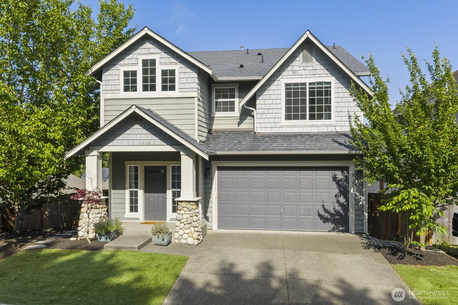 Welcome to your secluded Maple Valley retreat! Enjoy an enviable, newly added deck with true tree-house seclusion & stunning privacy—your view is to the treetops, not to the neighbor's living room. Spacious great room w/ high-end finishes. Gourmet Kitchen boasts quartz, subway tile, stainless appliances, walk-in pantry, & mudroom w/ built-ins. Baths feature sleek tile & quartz. Luxurious Primary Suite w/ step-in shower (dual heads), custom closet built-ins, & laundry chute. Enjoy morning sun in the primary facing east! Deck opens to a fully fenced turf backyard for low-maintenance entertaining. Don't miss the charming wild fruit orchard just beyond the fence! ***Photos virtually staged.