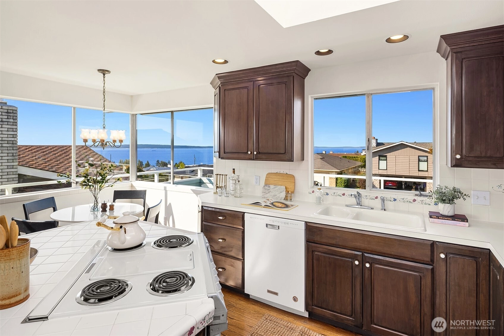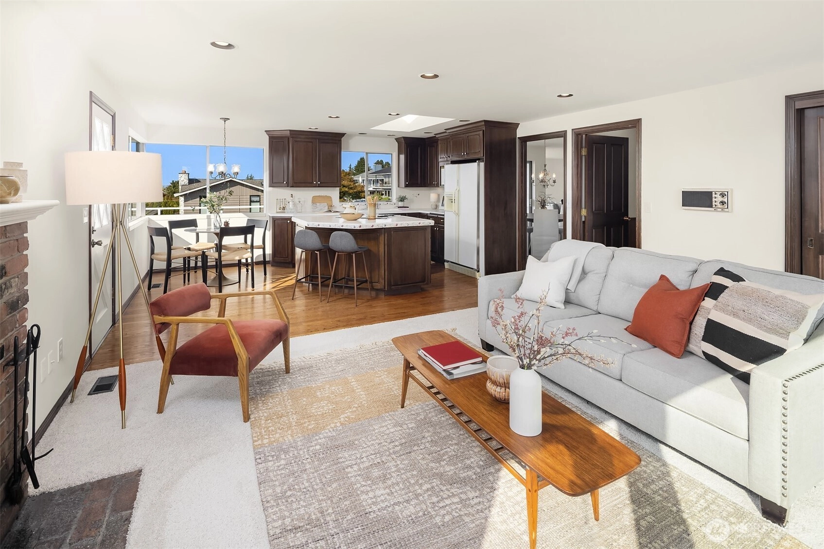 Perched up off the street sits this one owner mid-century home with amazing, sweeping views of the Olympics and Puget Sound! Watch the everchanging palate of skies, cruise ships, ferries & sunsets! Expansive front deck lets you relax and enjoy. This home was designed for entertaining! The flow is fantastic, and the spaces work perfectly. Both levels have views, are spacious & thoughtfully designed. Architect, Bud Erickson, was designer of 65 Nordstrom Stores! Olympic Manor has become one of the most sought-after neighborhoods in the city due to its mid-century architecture, sidewalks, proximity to downtown, desirable schools, markets, the beach & wonderful parks. The sense of community shines! Not to be missed, you will love living here!