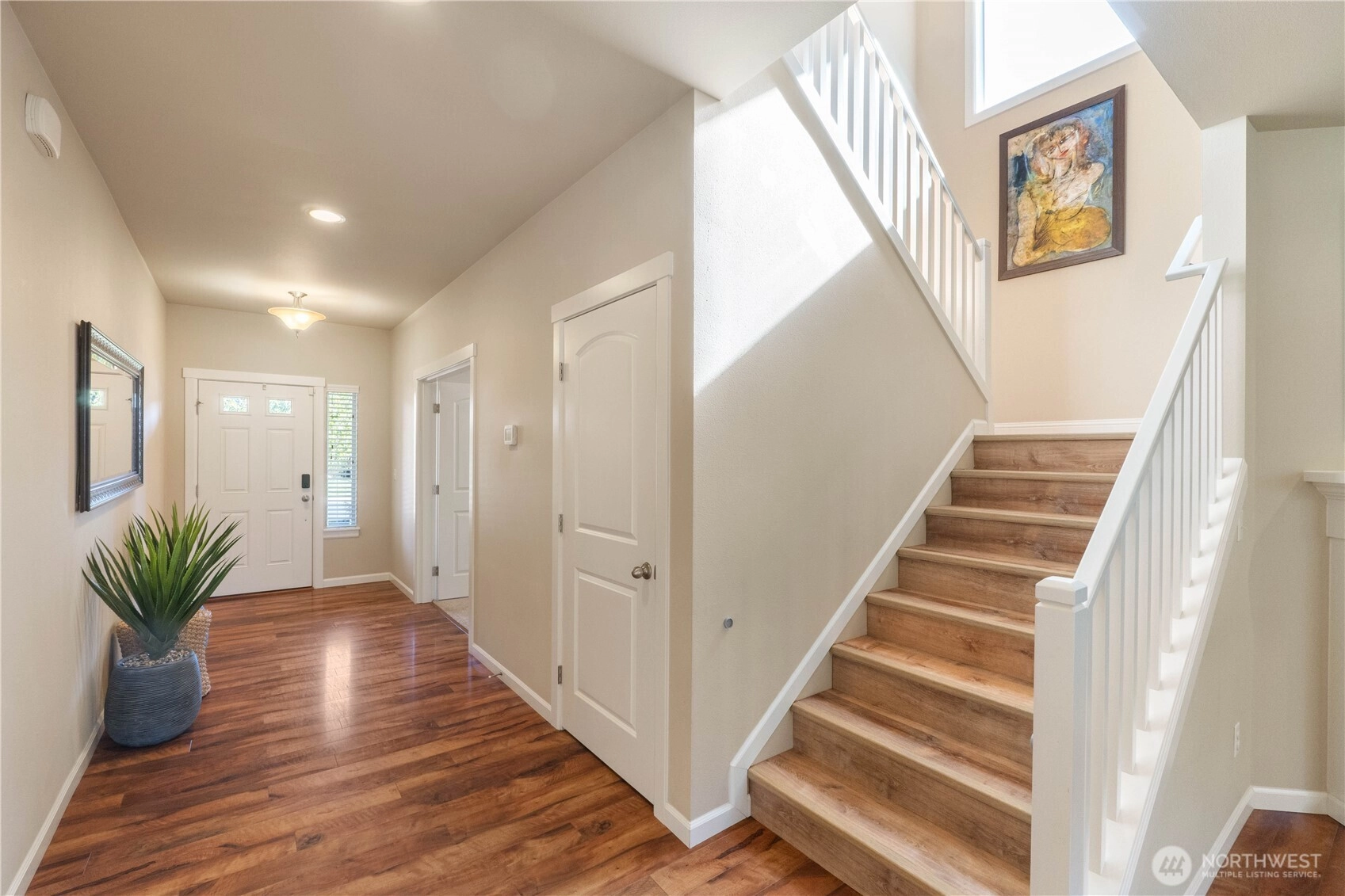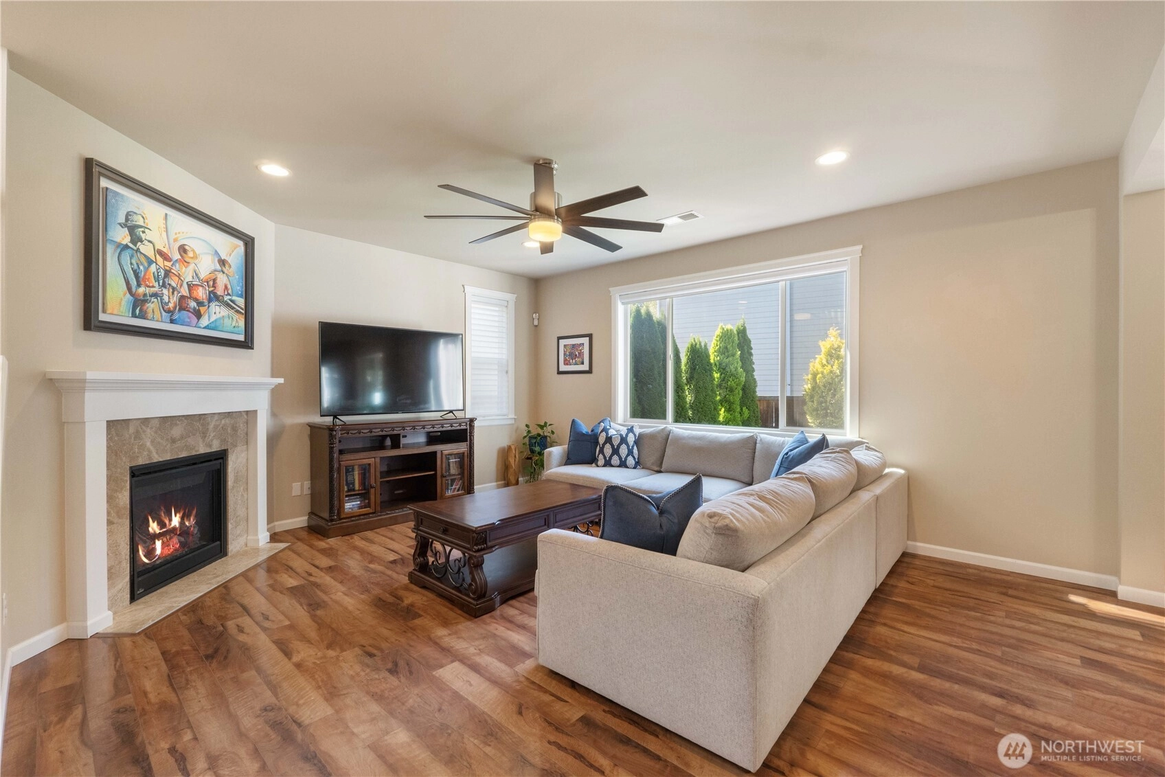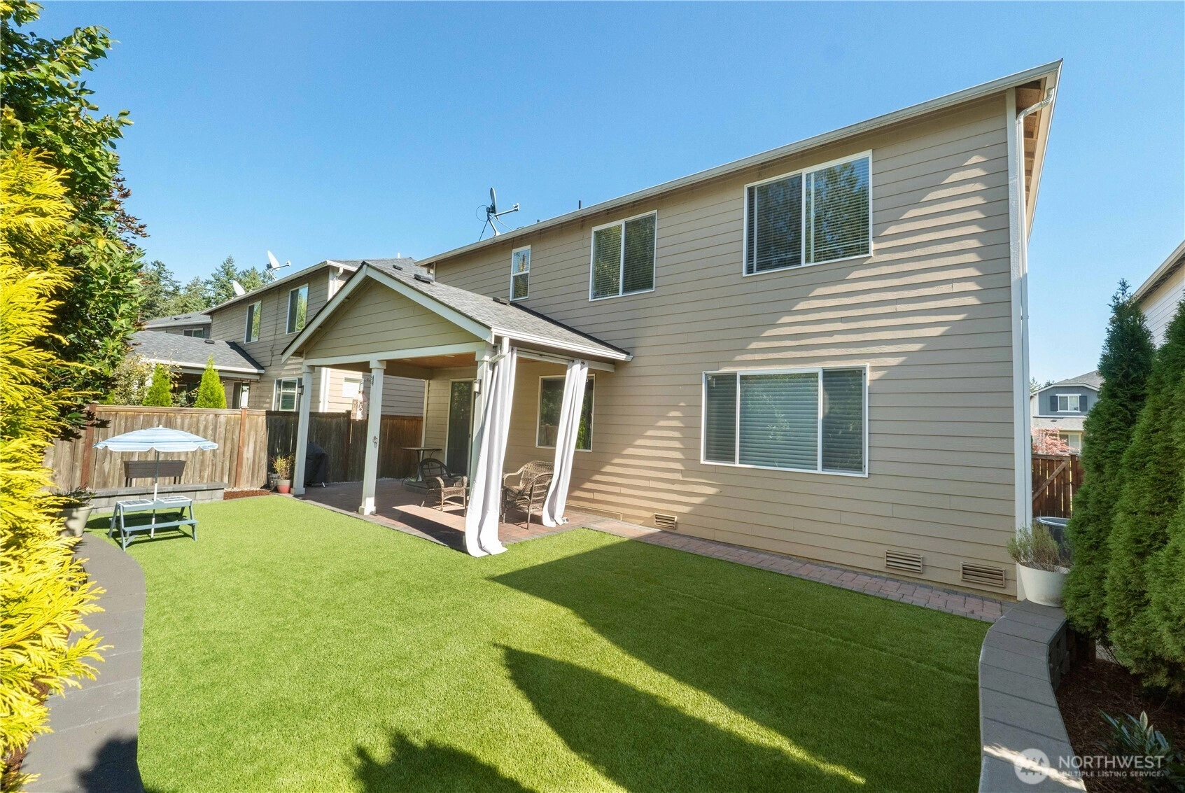 Well-maintained and with only one owner, this home shines with pride of ownership! The spacious kitchen features a large island perfect for entertaining, while the downstairs office is ideal for remote work. Retreat to the expansive primary suite with a 5-piece bath and generous walk-in closet. Enjoy year-round comfort with A/C and relax in your backyard oasis boasting a covered patio, artificial turf, professional landscaping, and fully-fenced for privacy. Large neighborhood community park nearby with basketball court and playground. Conveniently located near JBLM, with shopping, dining, and amenities just minutes away, this home is move-in ready and waiting for you!