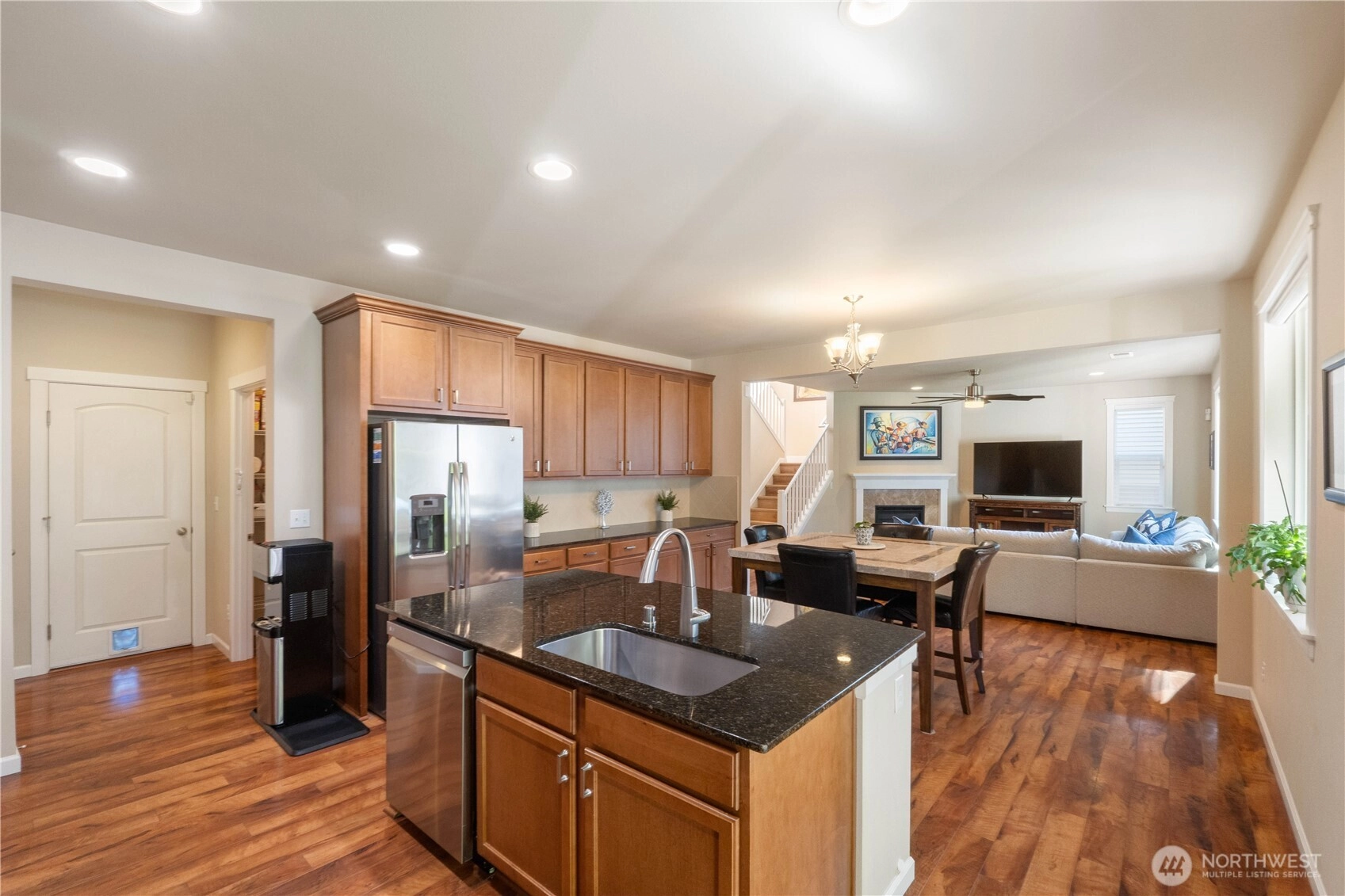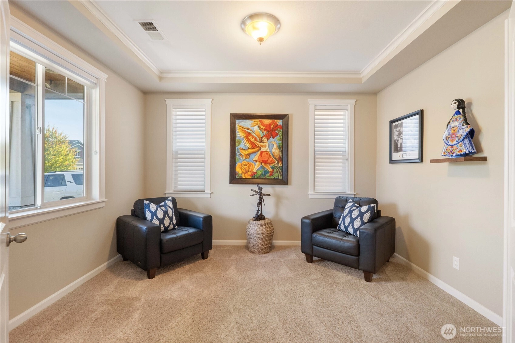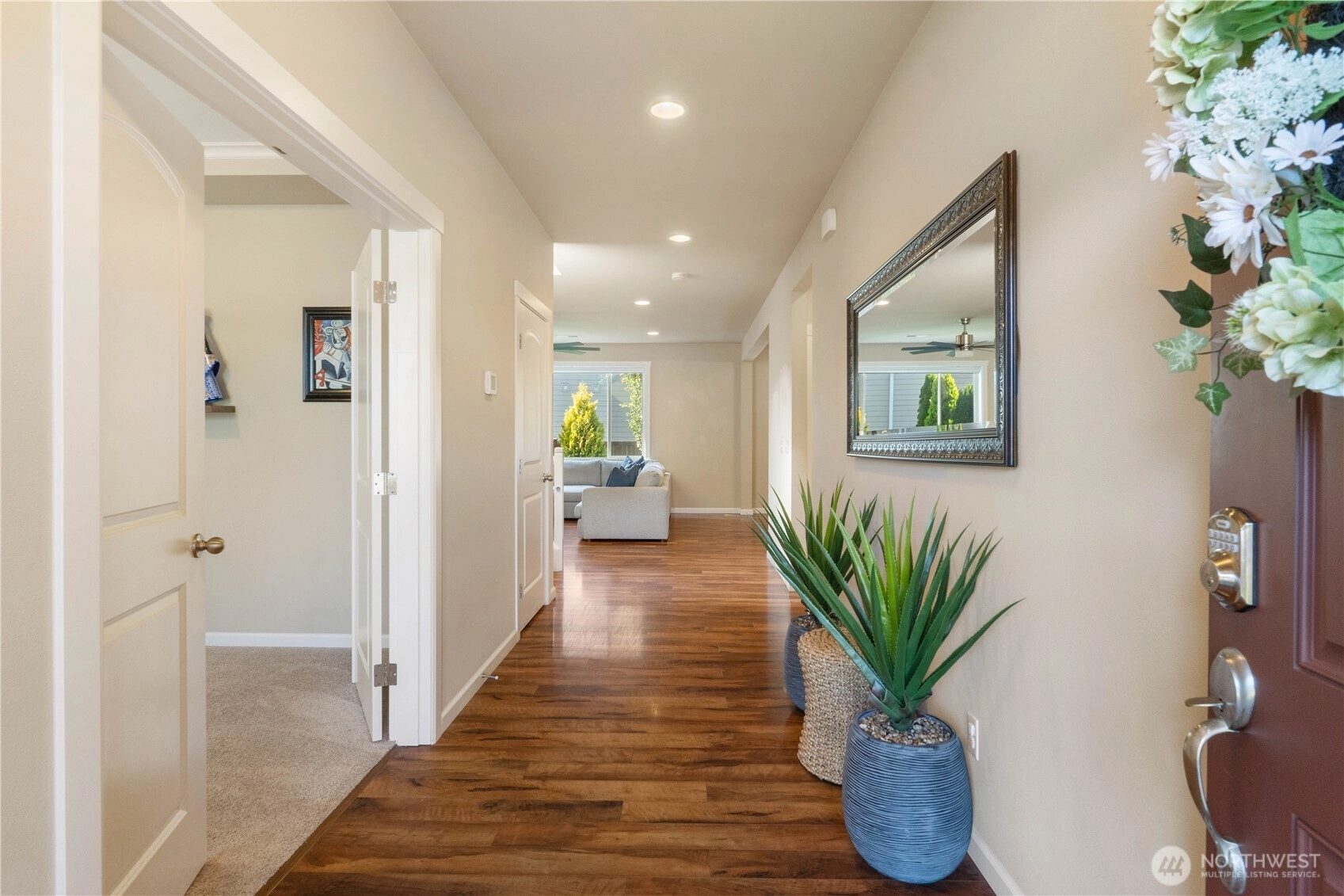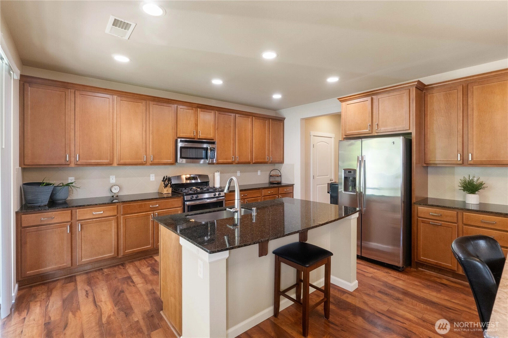 Well-maintained and with only one owner, this home shines with pride of ownership! The spacious kitchen features a large island perfect for entertaining, while the downstairs office is ideal for remote work. Retreat to the expansive primary suite with a 5-piece bath and generous walk-in closet. Enjoy year-round comfort with A/C and relax in your backyard oasis boasting a covered patio, artificial turf, professional landscaping, and fully-fenced for privacy. Large neighborhood community park nearby with basketball court and playground. Conveniently located near JBLM, with shopping, dining, and amenities just minutes away, this home is move-in ready and waiting for you!