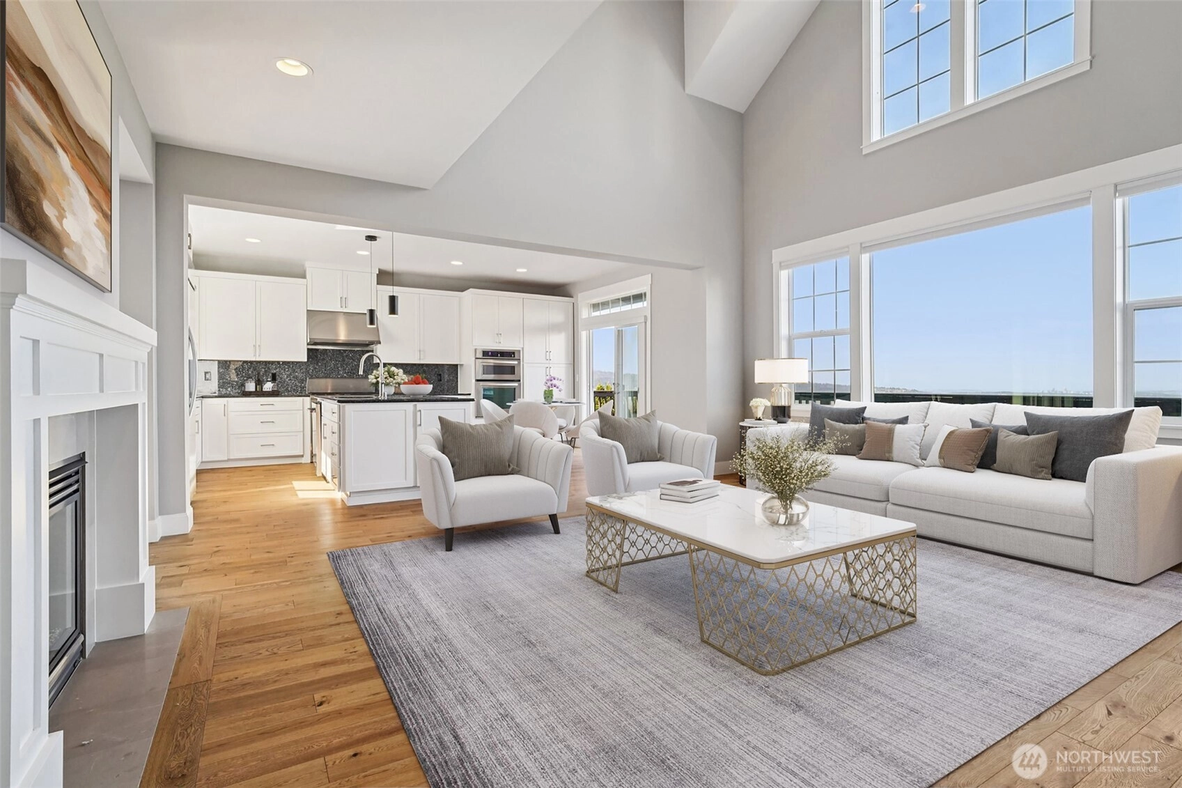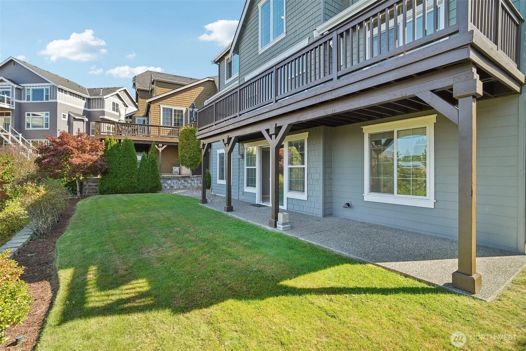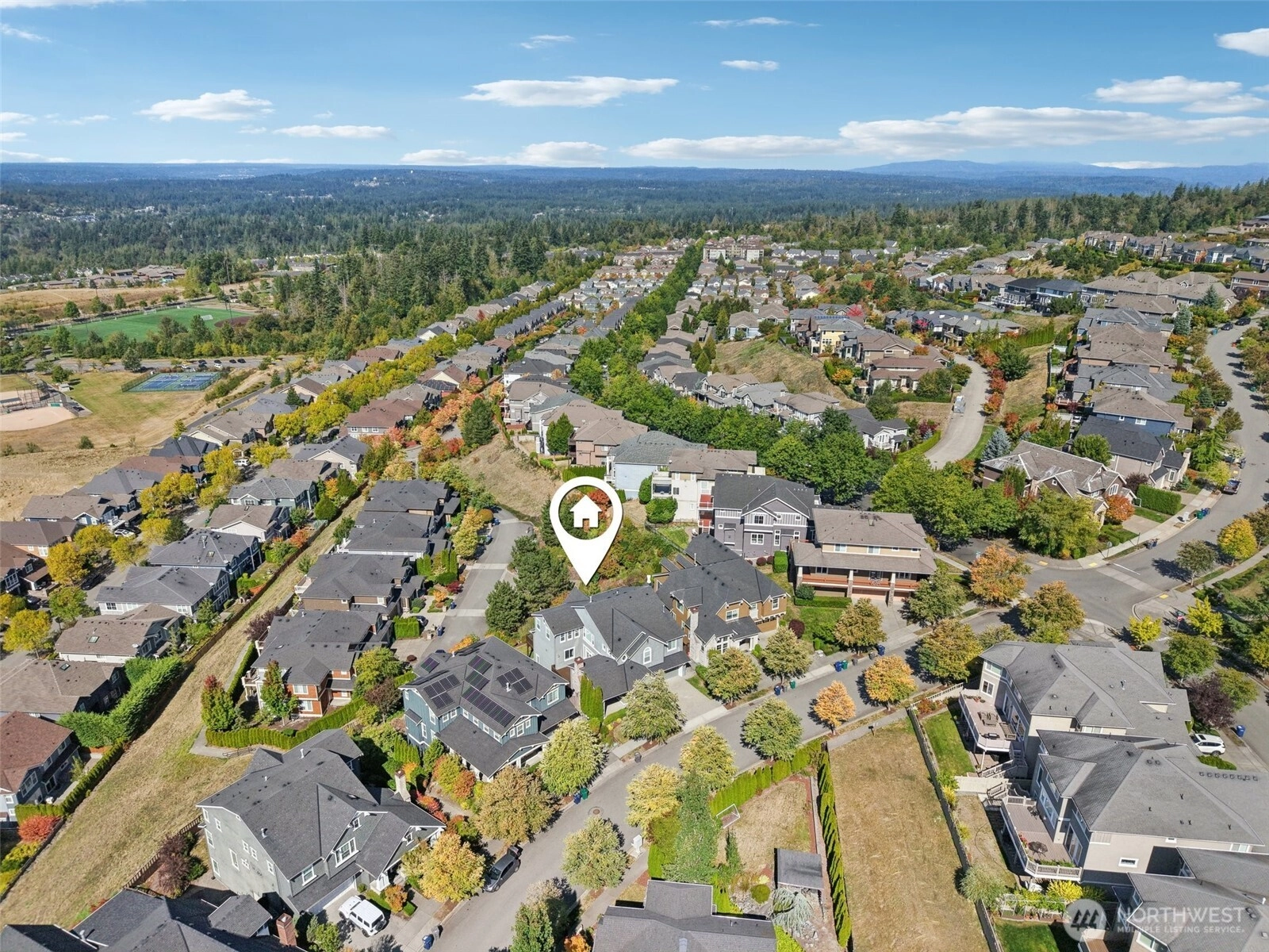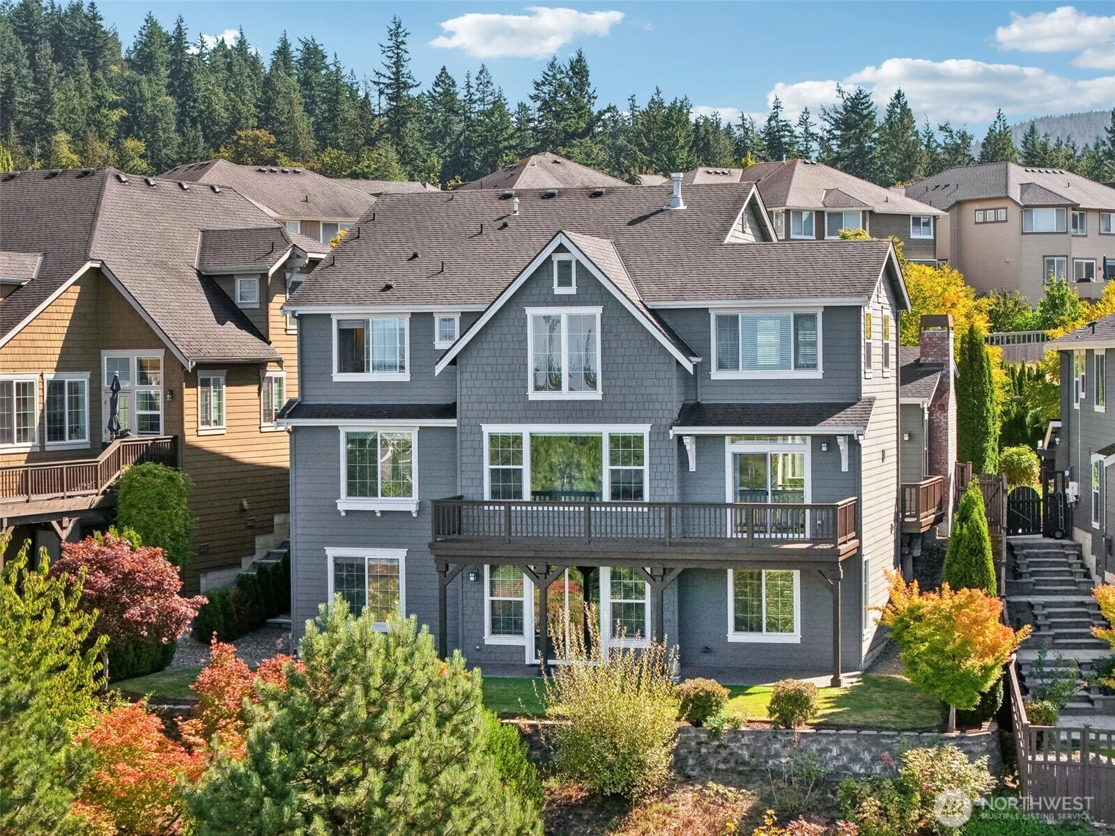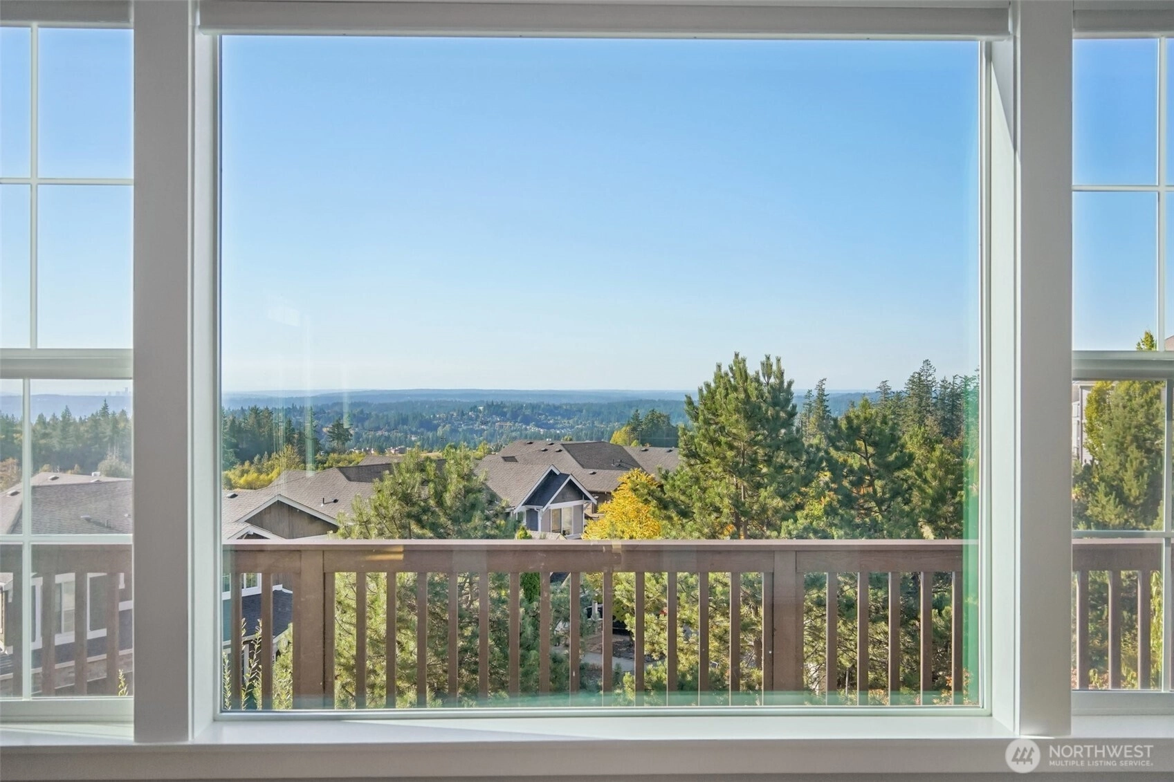Unparalleled views in The Issaquah Highlands! Natural light, vaulted ceilings & windows maximize the view from every level. Complete w/ 6 Bedrooms and 3 full + 1 ¾ baths! Three bedrooms including primary on 2nd floor w/ loft space, 1 on main near ¾ bath & 2 bedrooms in the basement. An office/parlor with a cozy fireplace & French doors opens to the front porch. The formal dining room w/ double sided FP & French doors opens to the mid-home privacy deck. Large family & basement bonus rooms perfect for multi-functional living. Enjoy expansive views from deck off kitchen. Home features over $100k in upgrades, extended hardwoods, slab granite kit, A/C, new carpet & more. The perfect blend of being conveniently located & surreally private.
