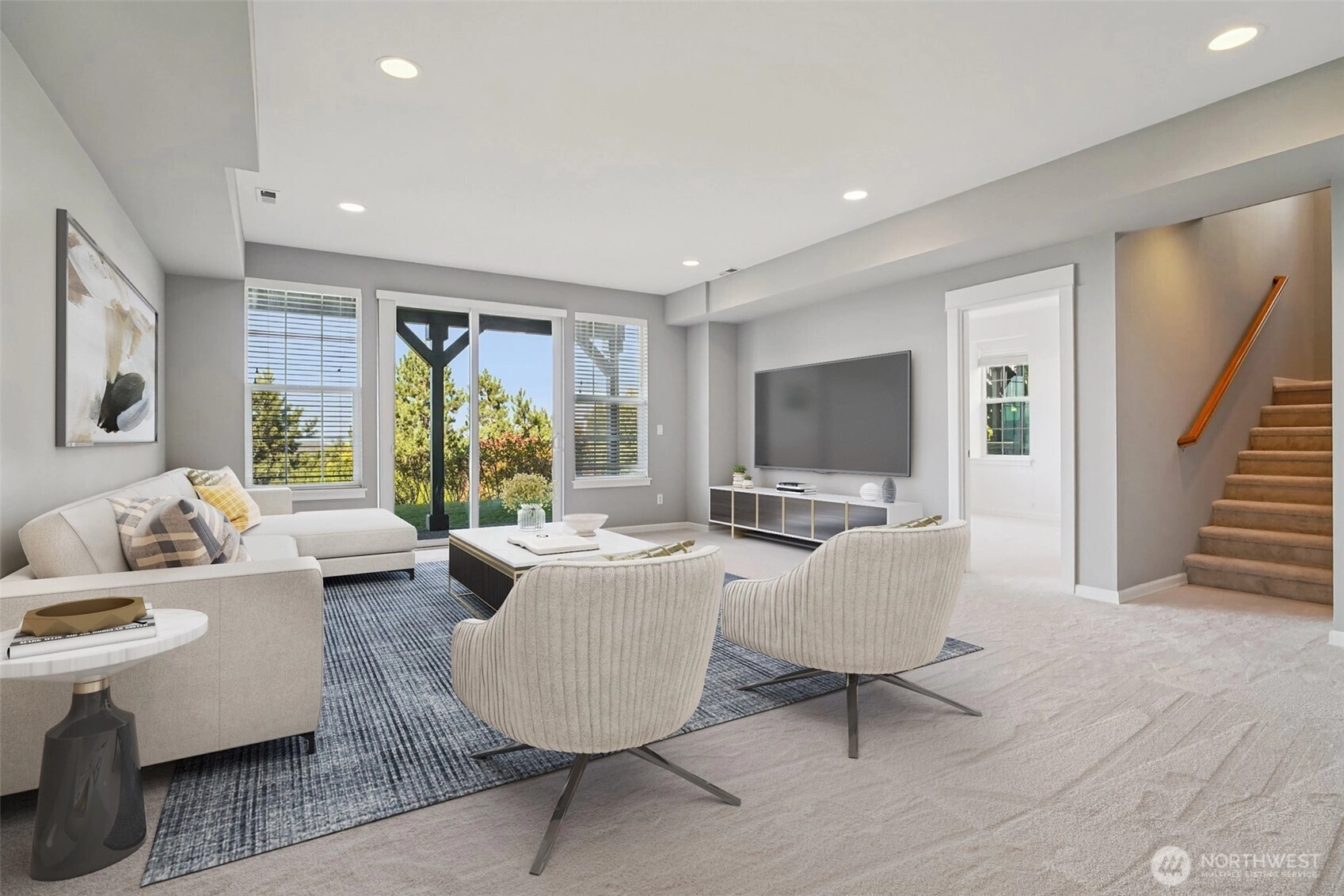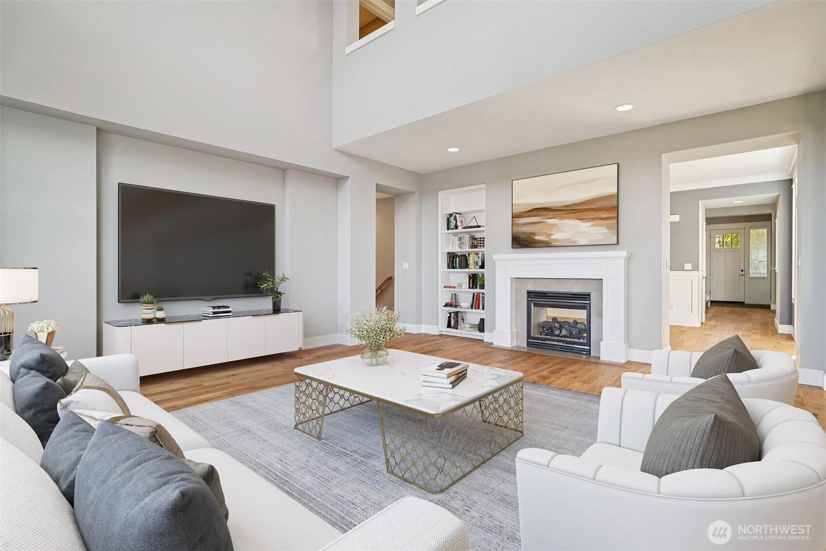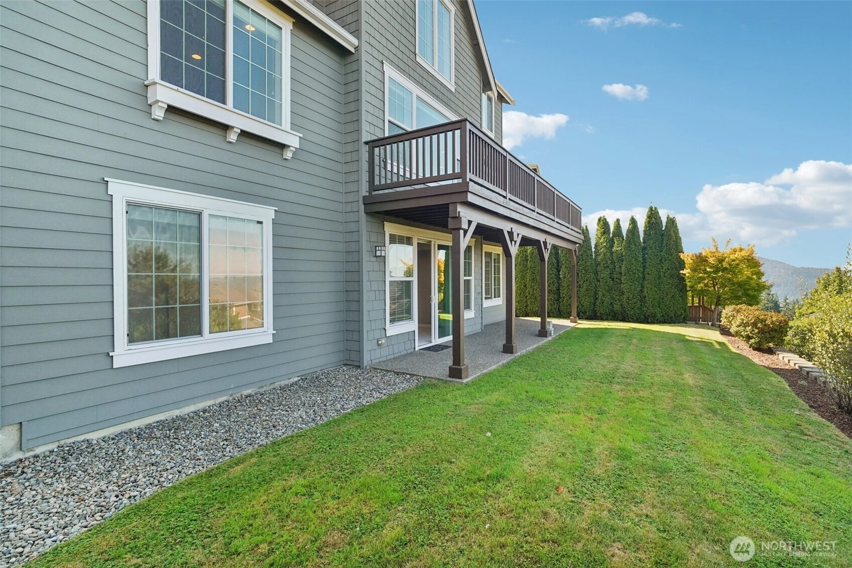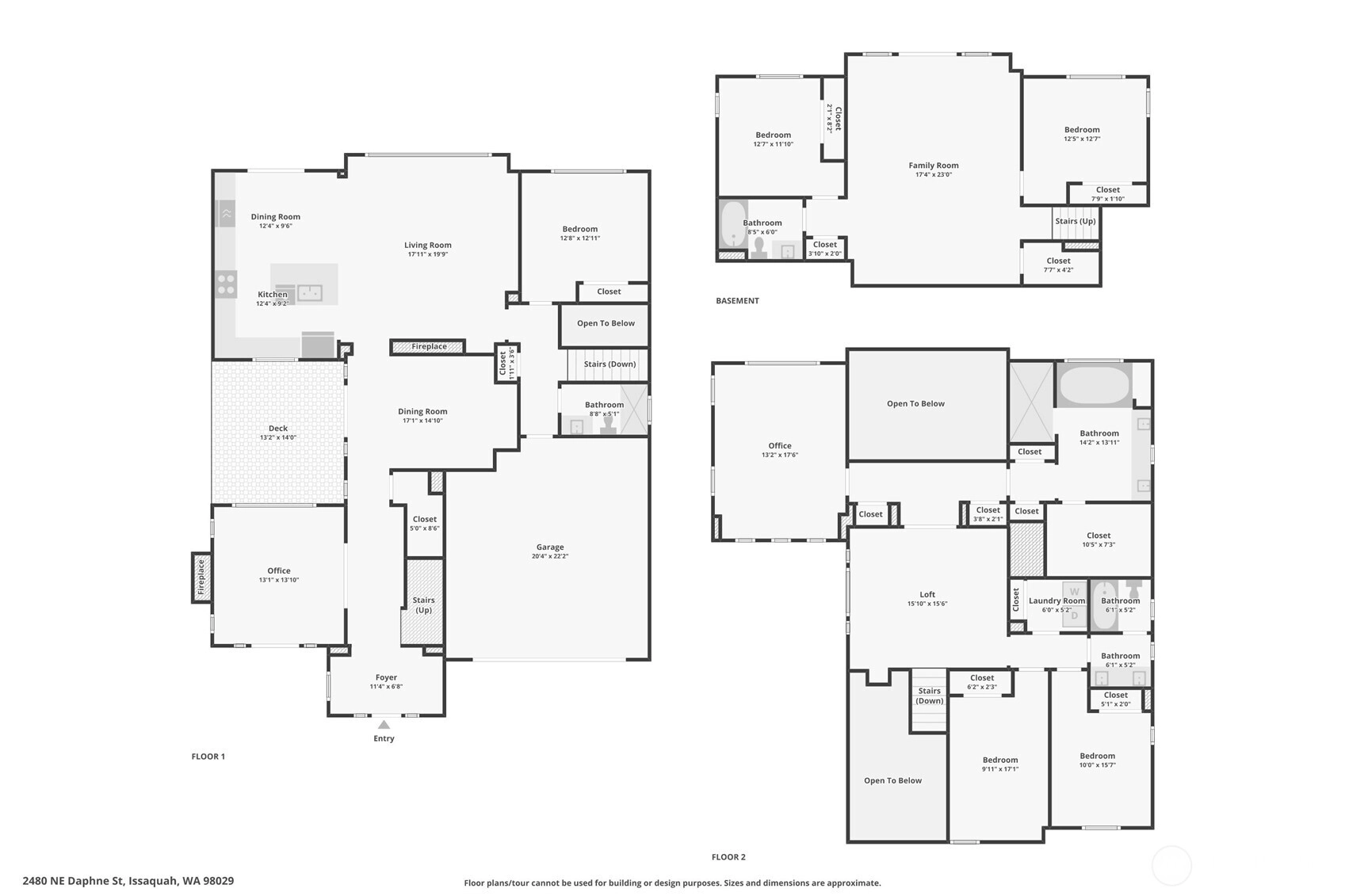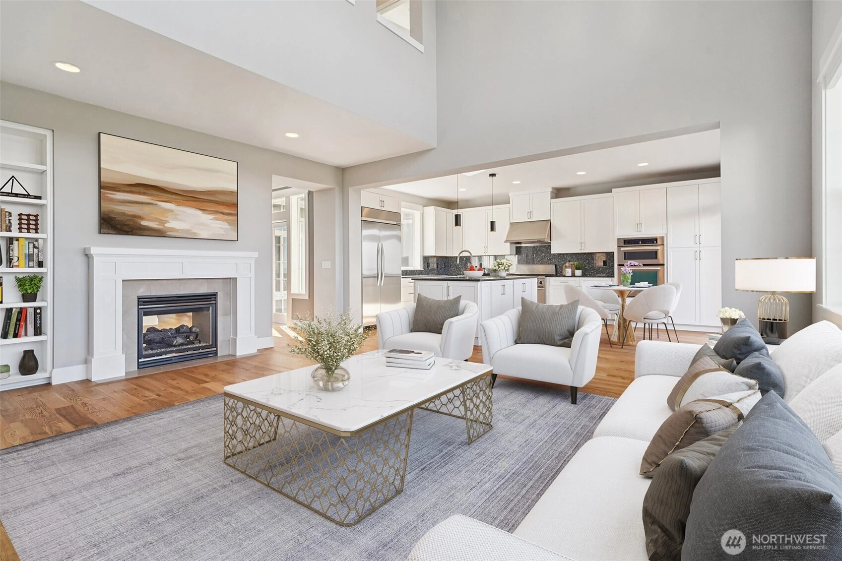 Unparalleled views in The Issaquah Highlands! Natural light, vaulted ceilings & windows maximize the view from every level. Complete w/ 6 Bedrooms and 3 full + 1 ¾ baths! Three bedrooms including primary on 2nd floor w/ loft space, 1 on main near ¾ bath & 2 bedrooms in the basement. An office/parlor with a cozy fireplace & French doors opens to the front porch. The formal dining room w/ double sided FP & French doors opens to the mid-home privacy deck. Large family & basement bonus rooms perfect for multi-functional living. Enjoy expansive views from deck off kitchen. Home features over $100k in upgrades, extended hardwoods, slab granite kit, A/C, new carpet & more. The perfect blend of being conveniently located & surreally private.