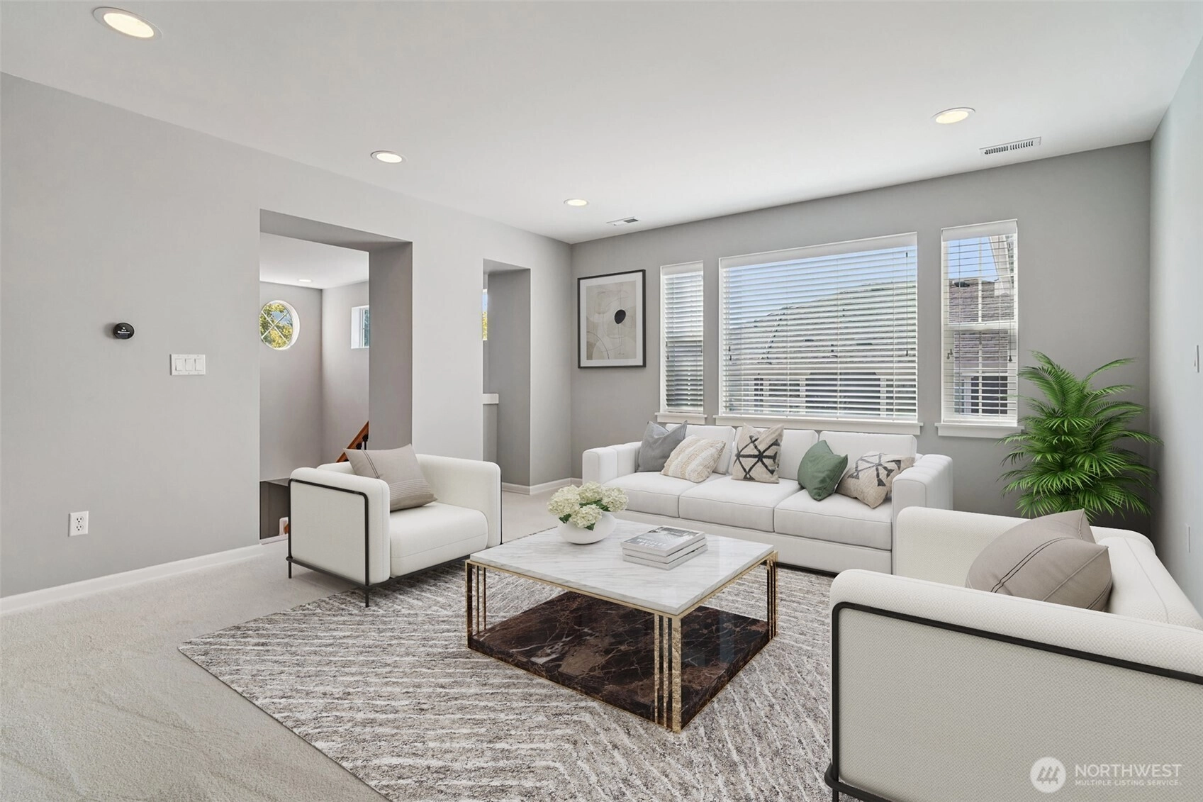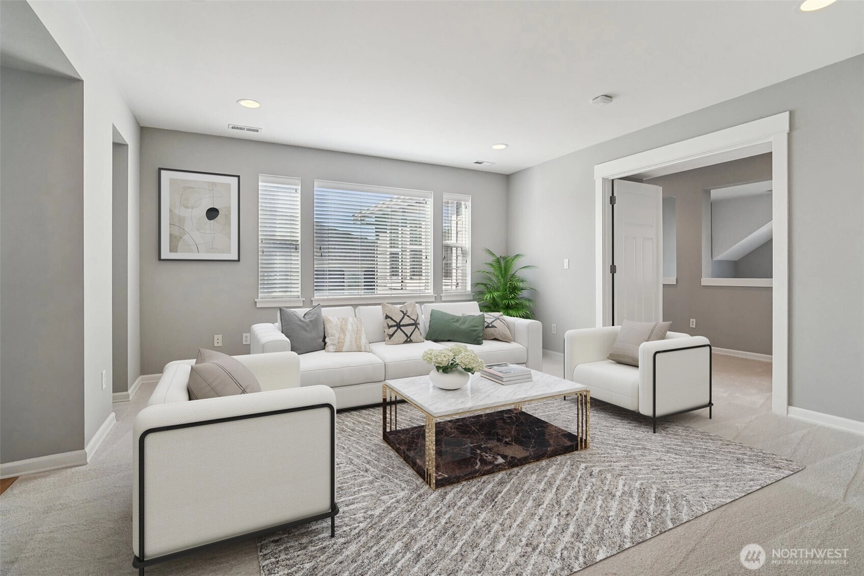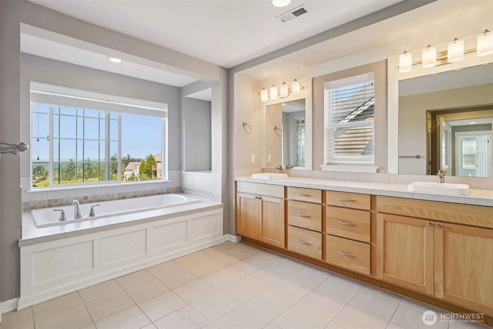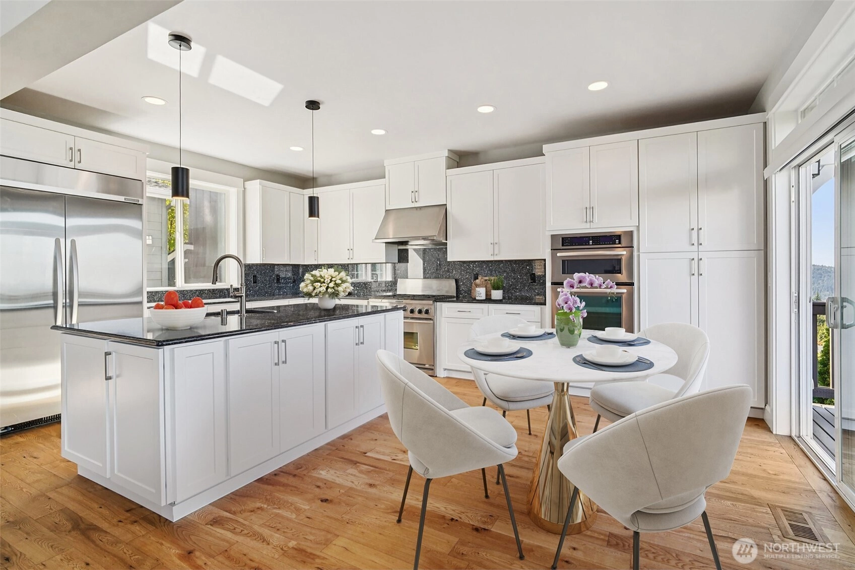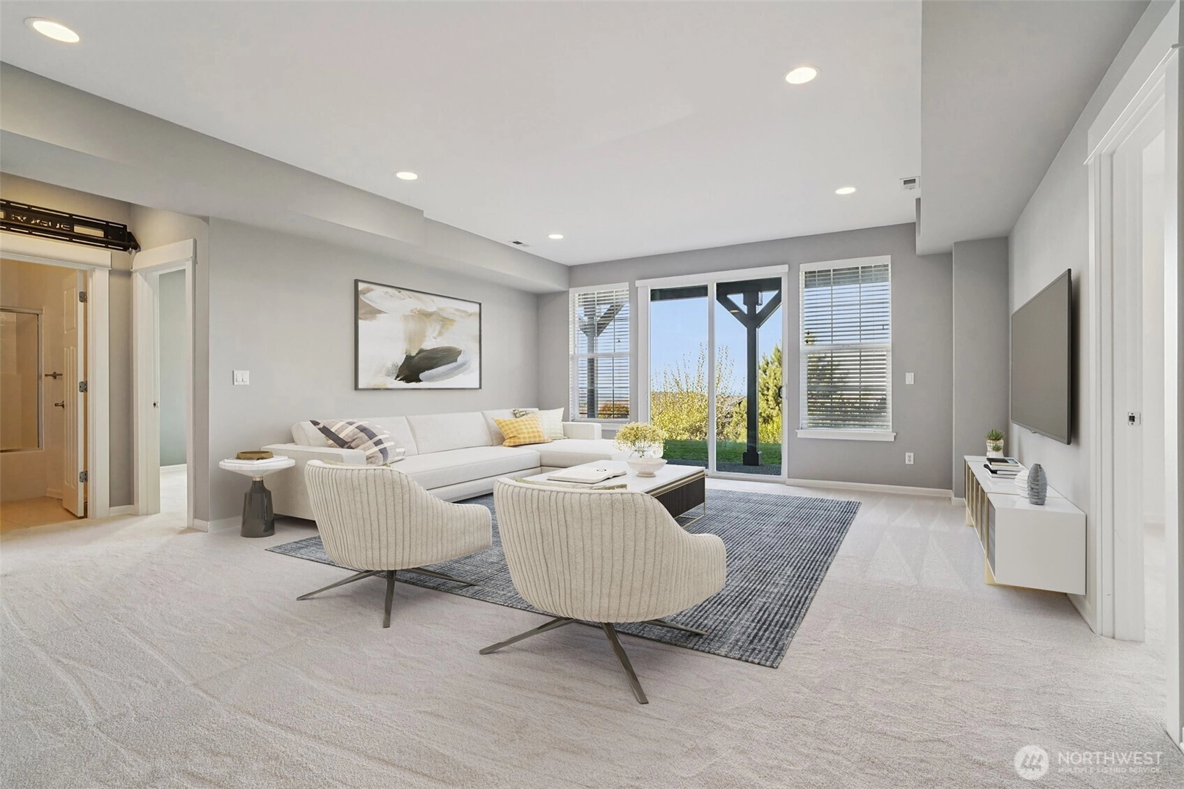 Unparalleled views in The Issaquah Highlands! Natural light, vaulted ceilings & windows maximize the view from every level. Complete w/ 6 Bedrooms and 3 full + 1 ¾ baths! Three bedrooms including primary on 2nd floor w/ loft space, 1 on main near ¾ bath & 2 bedrooms in the basement. An office/parlor with a cozy fireplace & French doors opens to the front porch. The formal dining room w/ double sided FP & French doors opens to the mid-home privacy deck. Large family & basement bonus rooms perfect for multi-functional living. Enjoy expansive views from deck off kitchen. Home features over $100k in upgrades, extended hardwoods, slab granite kit, A/C, new carpet & more. The perfect blend of being conveniently located & surreally private.