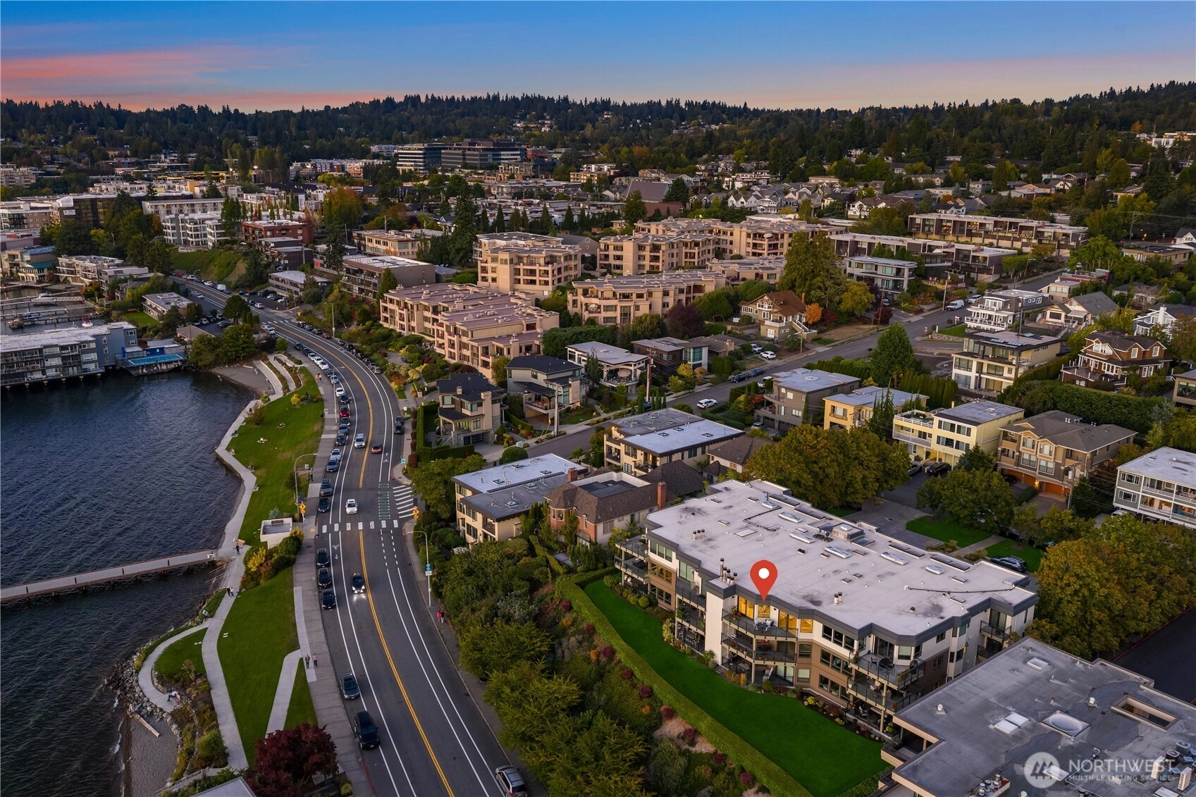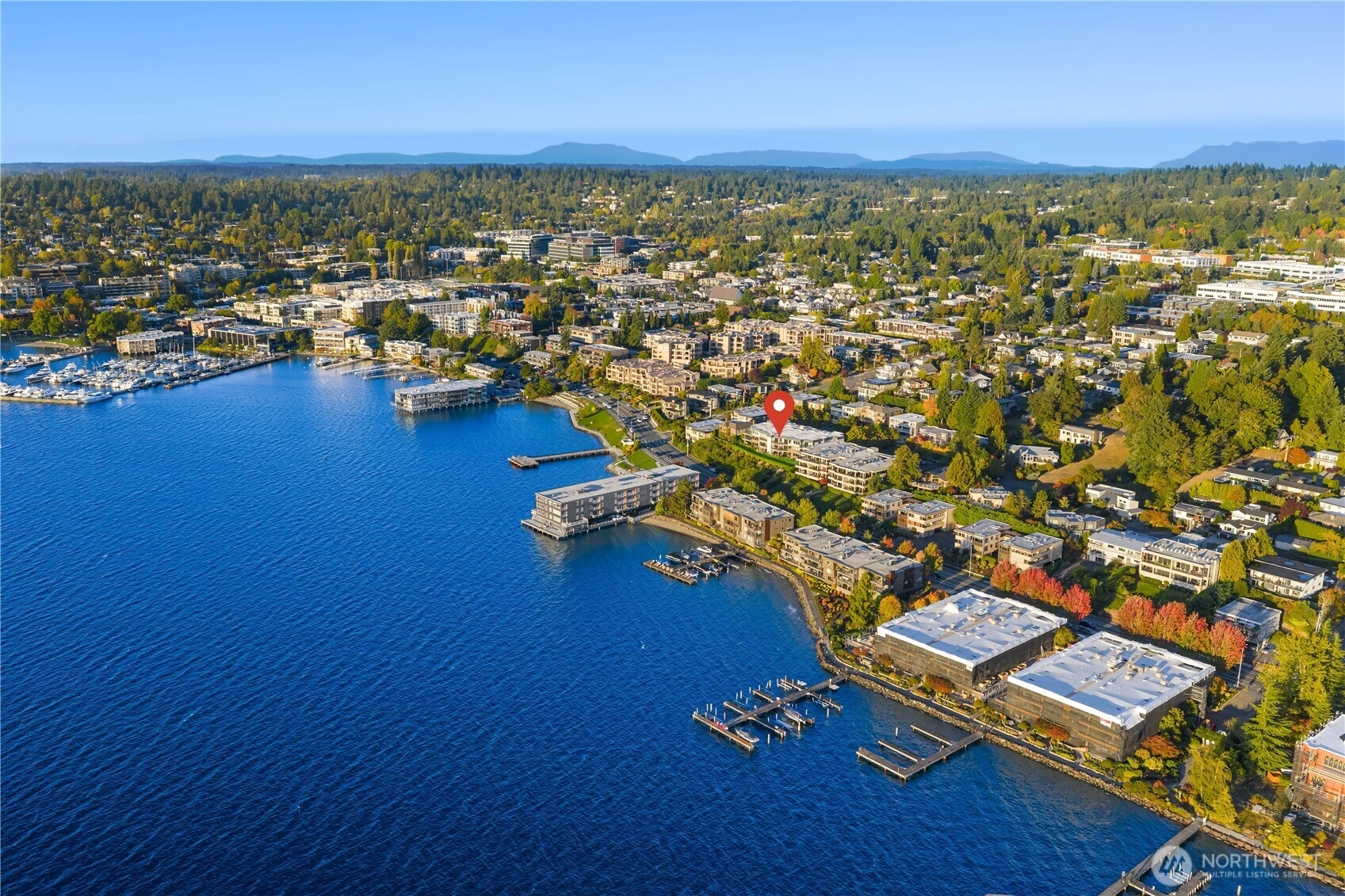 Wonderful Downtown Kirkland Condo w/ Spectacular Views! Welcome to this rare opportunity in a boutique condo community in the heart of Kirkland! Perched on the top floor, this stunning home offers sweeping views of Lake Washington, Seattle skyline, & breathtaking sunsets. Inside, you'll find brand-new hardwood floors, a generous remodeled chefs kitchen & fresh interior paint, creating a move-in ready space w/ timeless appeal. Spacious & bright, the open-concept layout is perfect for entertaining or relaxing while enjoying the views. Located just steps from waterfront parks, restaurants, & everything downtown Kirkland has to offer. Small, well-maintained complex offers privacy& charm. Don’t miss your chance to own this exceptional view home!