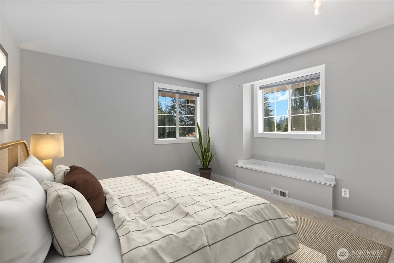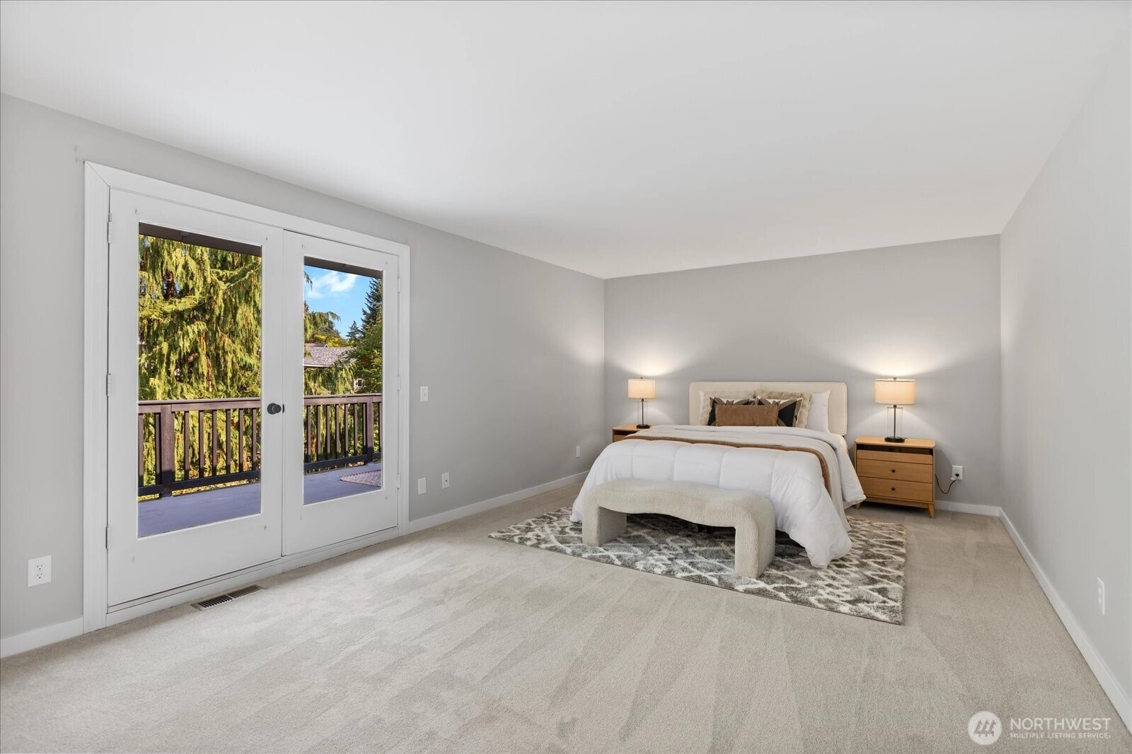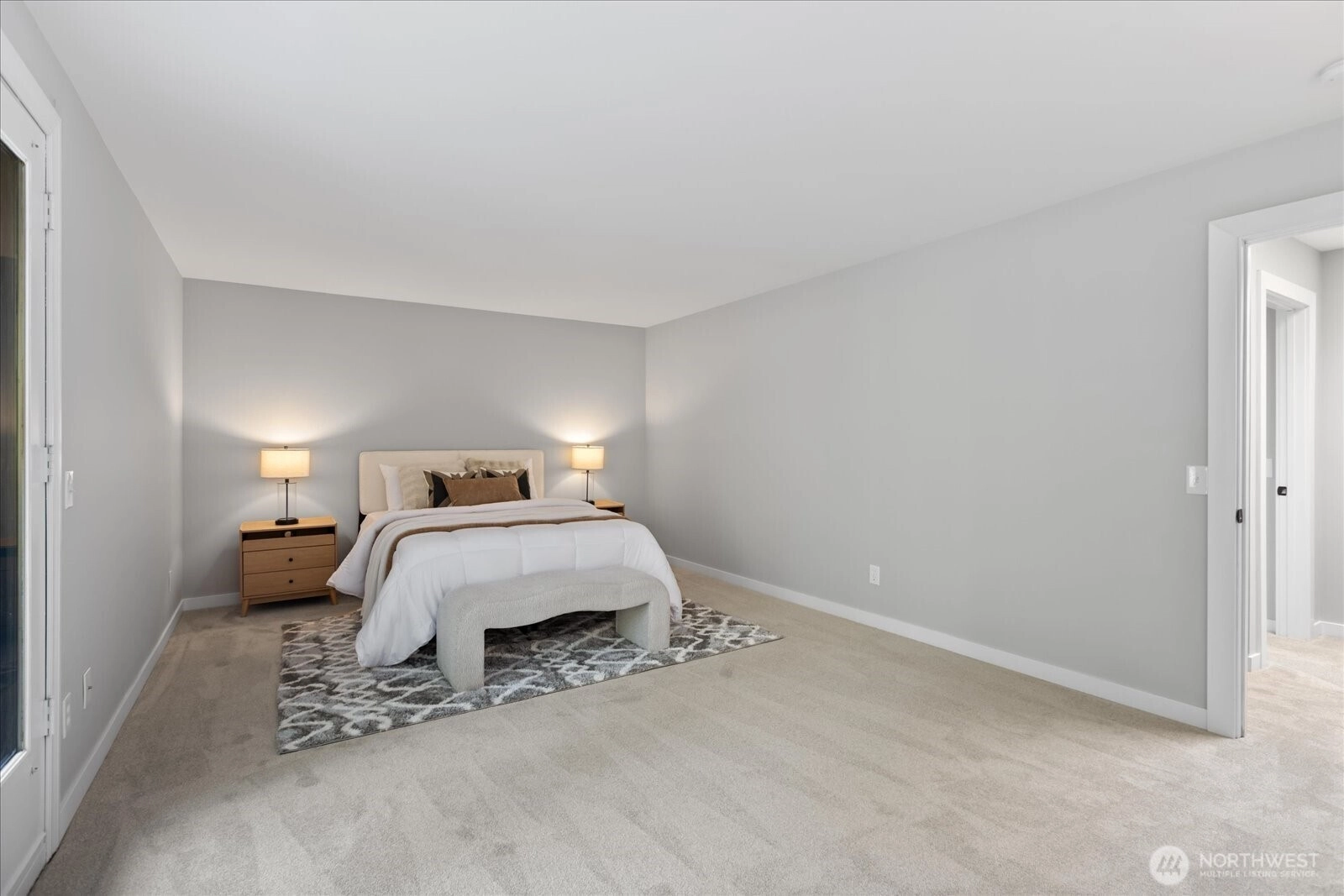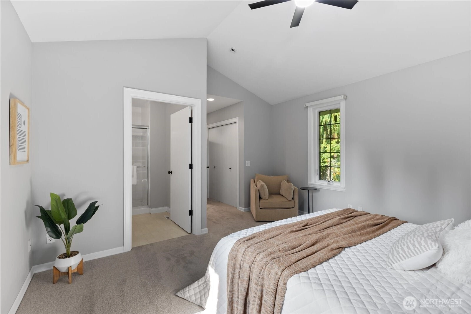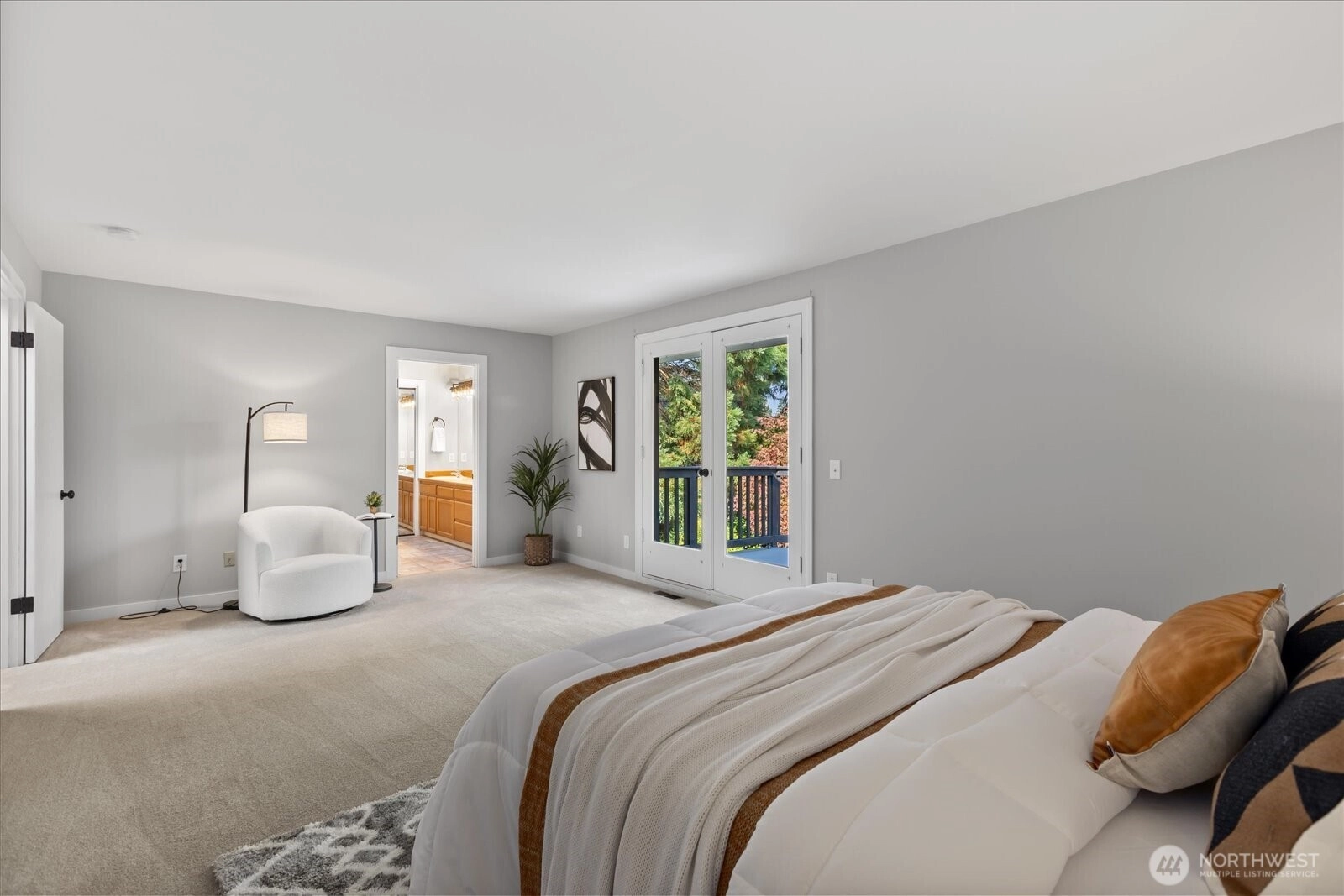 Discover rare flexibility in this Mill Creek cul-de-sac home featuring two true primary suites! The main-floor suite features its own private entrance, ideal for multi-generational living, extended guests, or a home office. Upstairs, the second primary suite includes a private deck, creating a retreat of its own. Thoughtfully updated with new interior & exterior paint, new trim, refinished hardwoods, and plush new carpet throughout, this home is move-in ready. The location is second to none, just minutes to Mill Creek Town Center with its dining, shopping, and trails, plus quick commuter access. Enjoy the charm of a tucked-away neighborhood while still being close to everything. Welcome home!