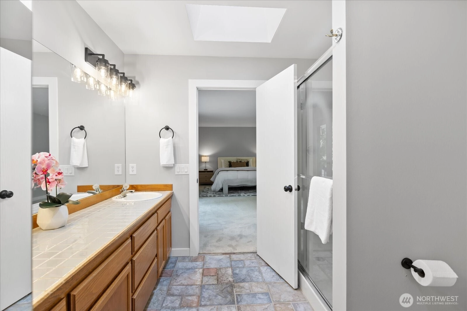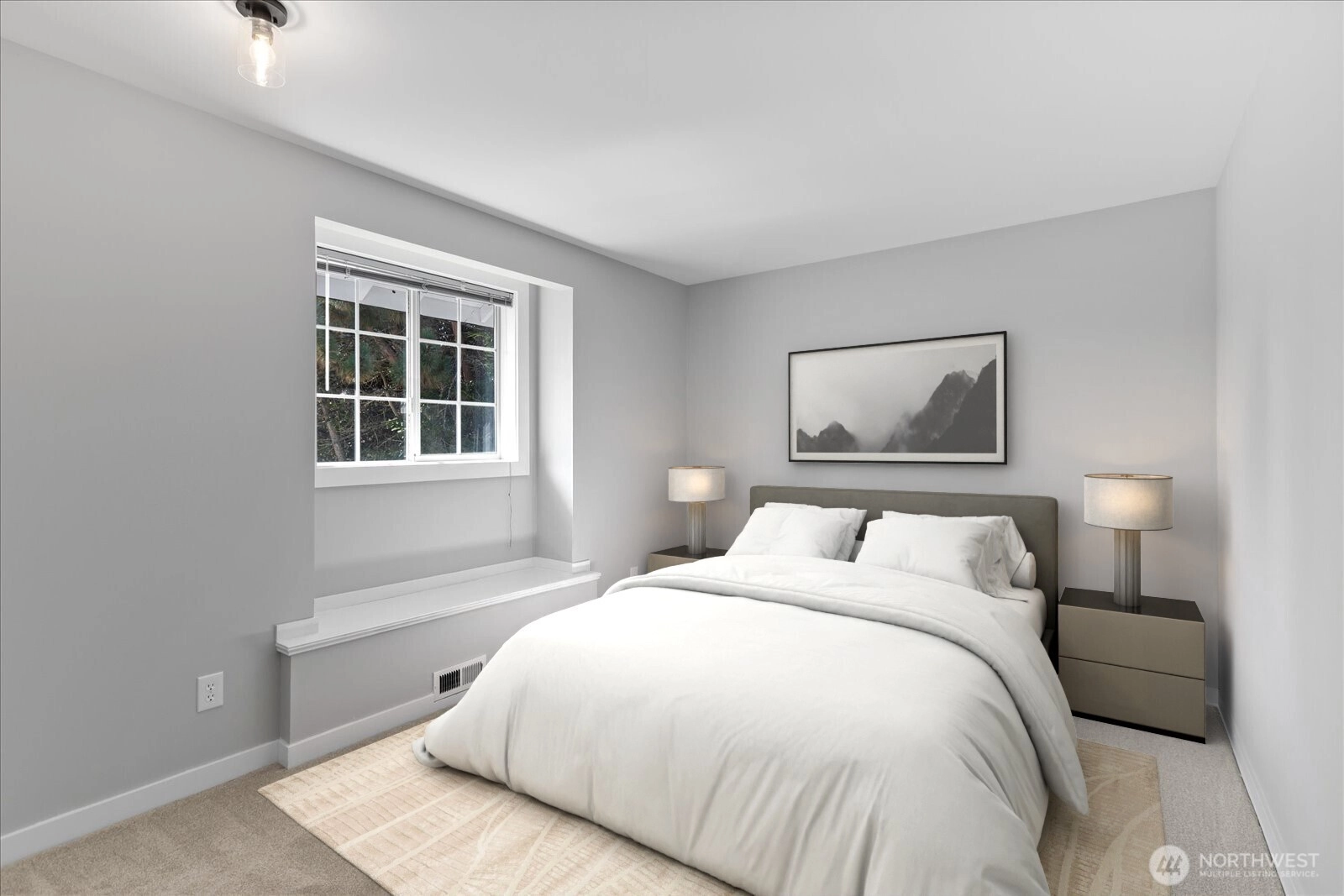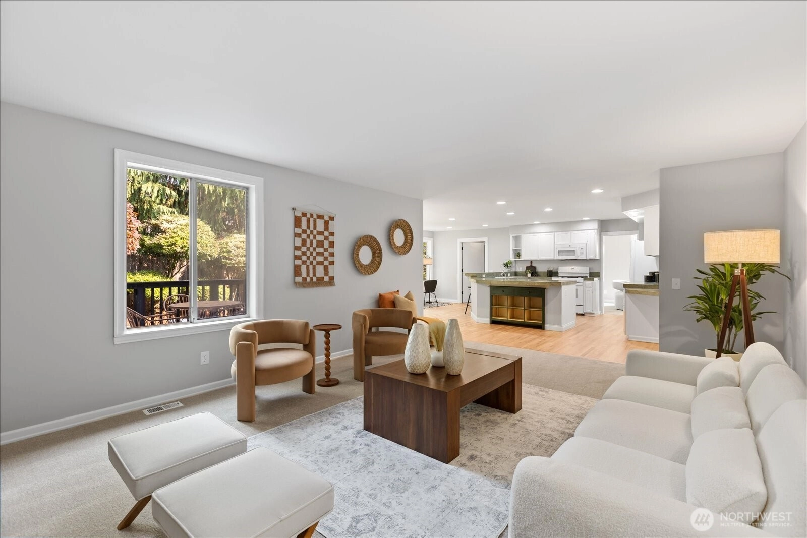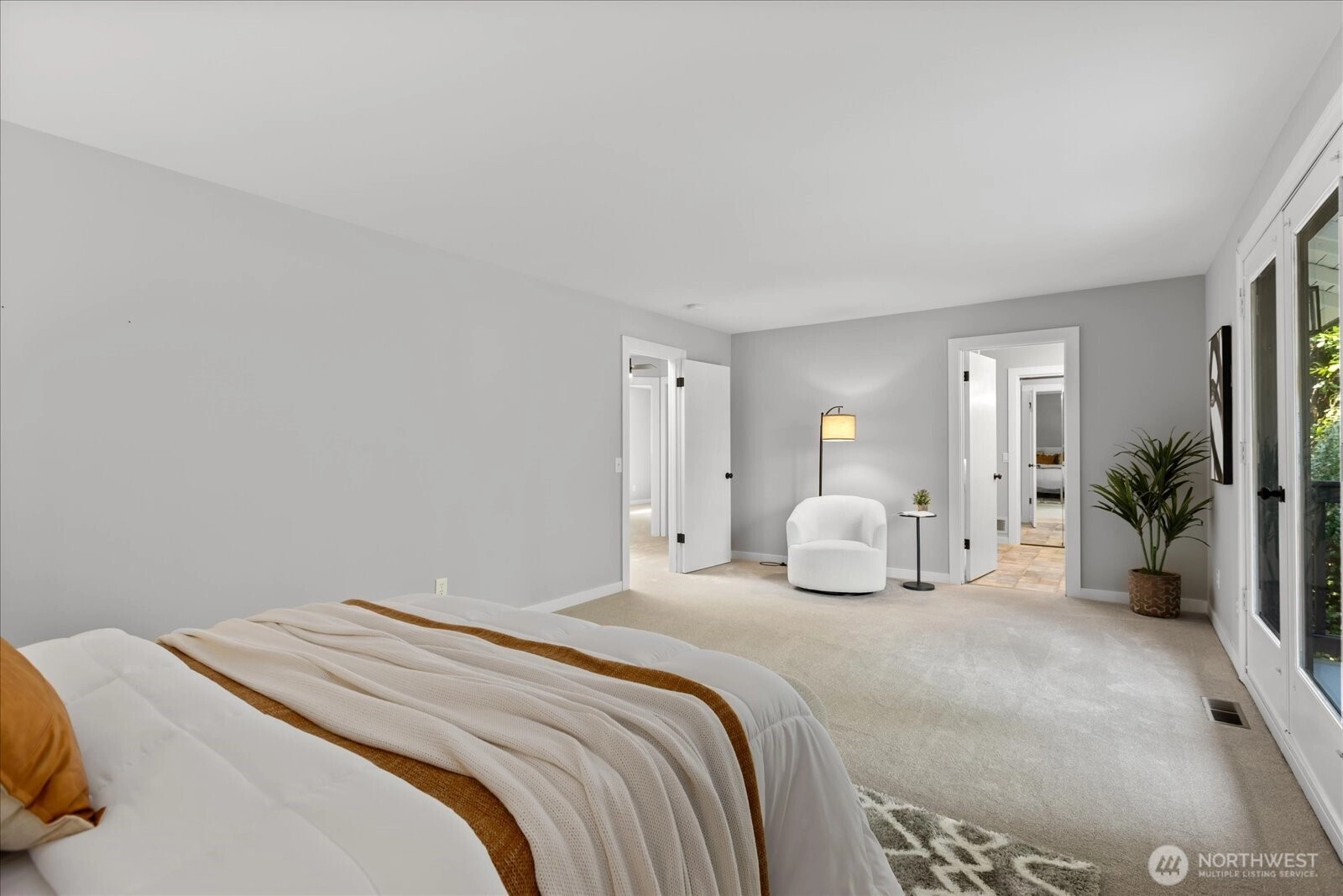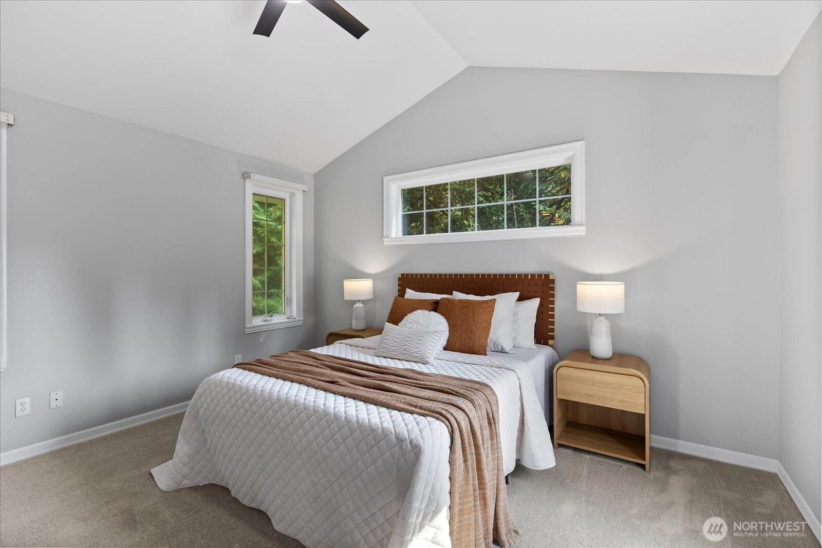 Discover rare flexibility in this Mill Creek cul-de-sac home featuring two true primary suites! The main-floor suite features its own private entrance, ideal for multi-generational living, extended guests, or a home office. Upstairs, the second primary suite includes a private deck, creating a retreat of its own. Thoughtfully updated with new interior & exterior paint, new trim, refinished hardwoods, and plush new carpet throughout, this home is move-in ready. The location is second to none, just minutes to Mill Creek Town Center with its dining, shopping, and trails, plus quick commuter access. Enjoy the charm of a tucked-away neighborhood while still being close to everything. Welcome home!
