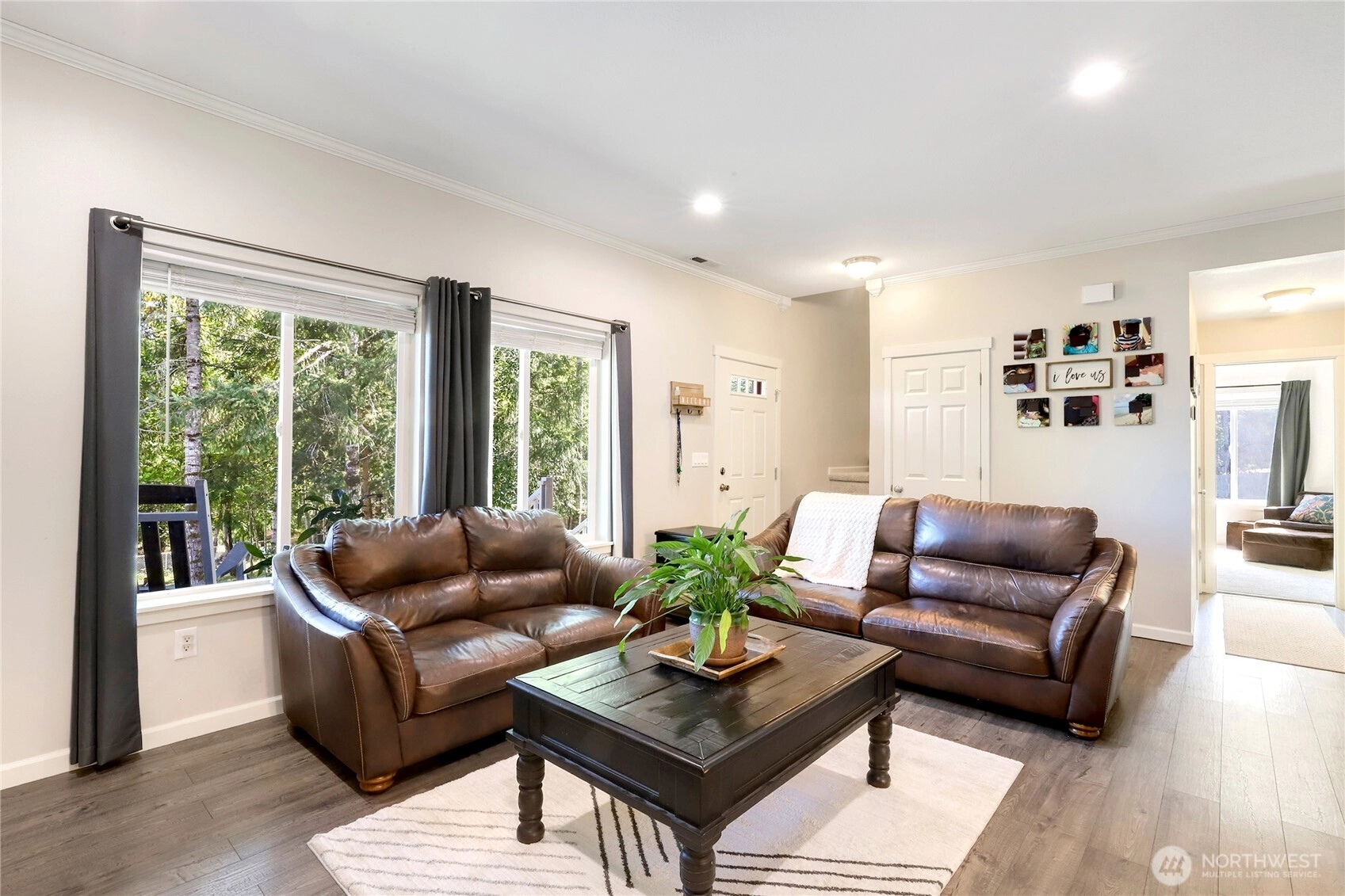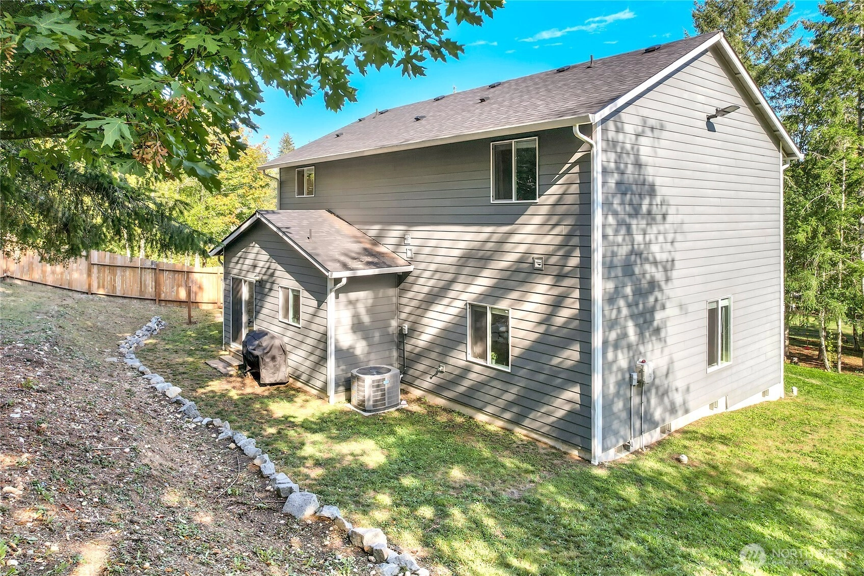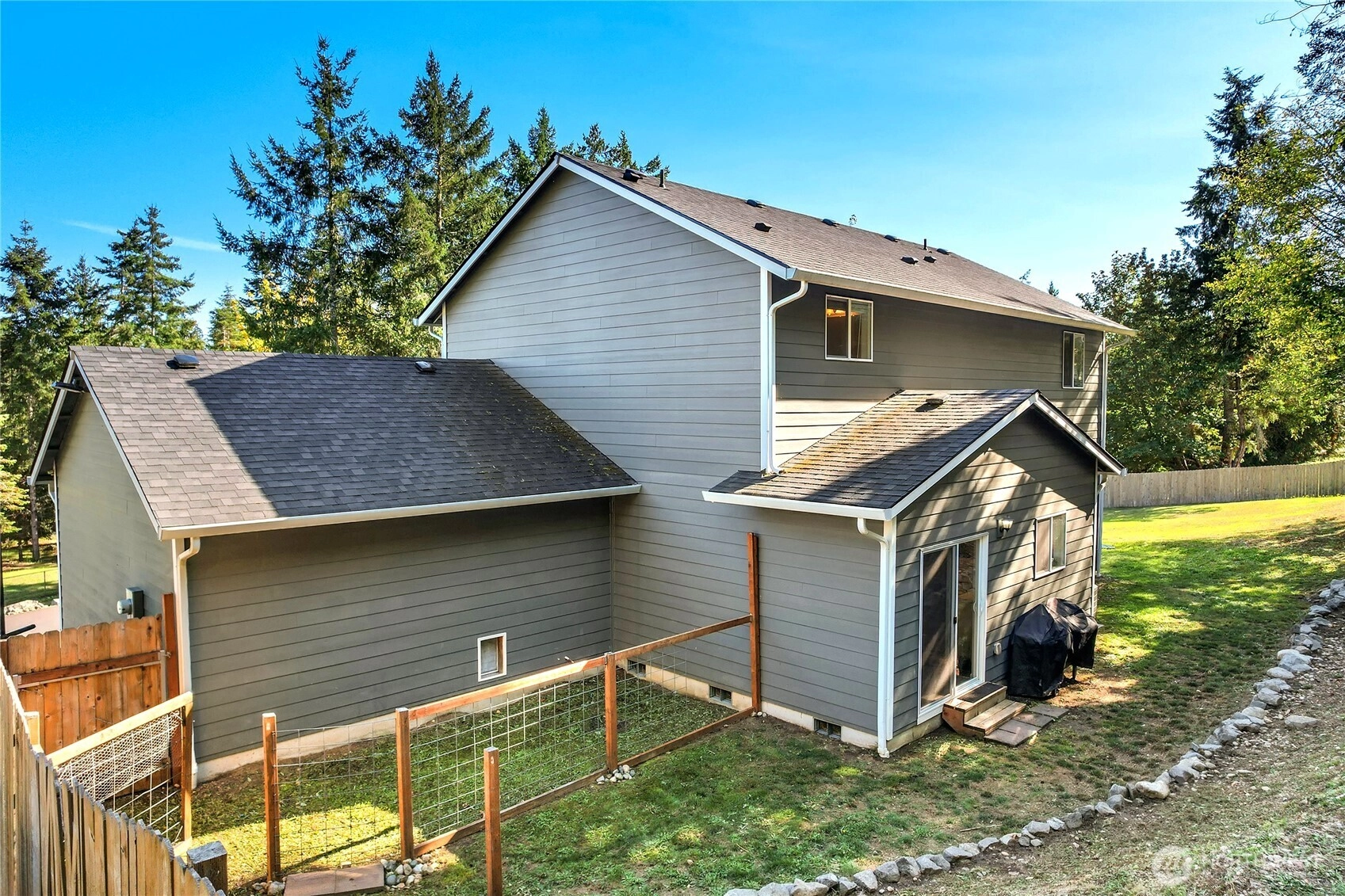 Welcome to this newly built multigenerational home offering thoughtful design and modern comfort. With two primary bedrooms, including one on the main level, plus two additional bedrooms and a spacious loft upstairs, there’s room for flexibility and function. The gourmet kitchen boasts a large island, walk-in pantry, soft-close cabinets, and stainless steel appliances. Enjoy 9-ft ceilings and brand-new laminate flooring on the main. Additional highlights include a covered front porch, upper-level laundry, smart thermostat with heating and A/C, and a fully wired low-voltage system. Outside, the large fenced yard features a generous dog run, space for backyard chickens, and a garden. Complete with a two-car garage and shared well.