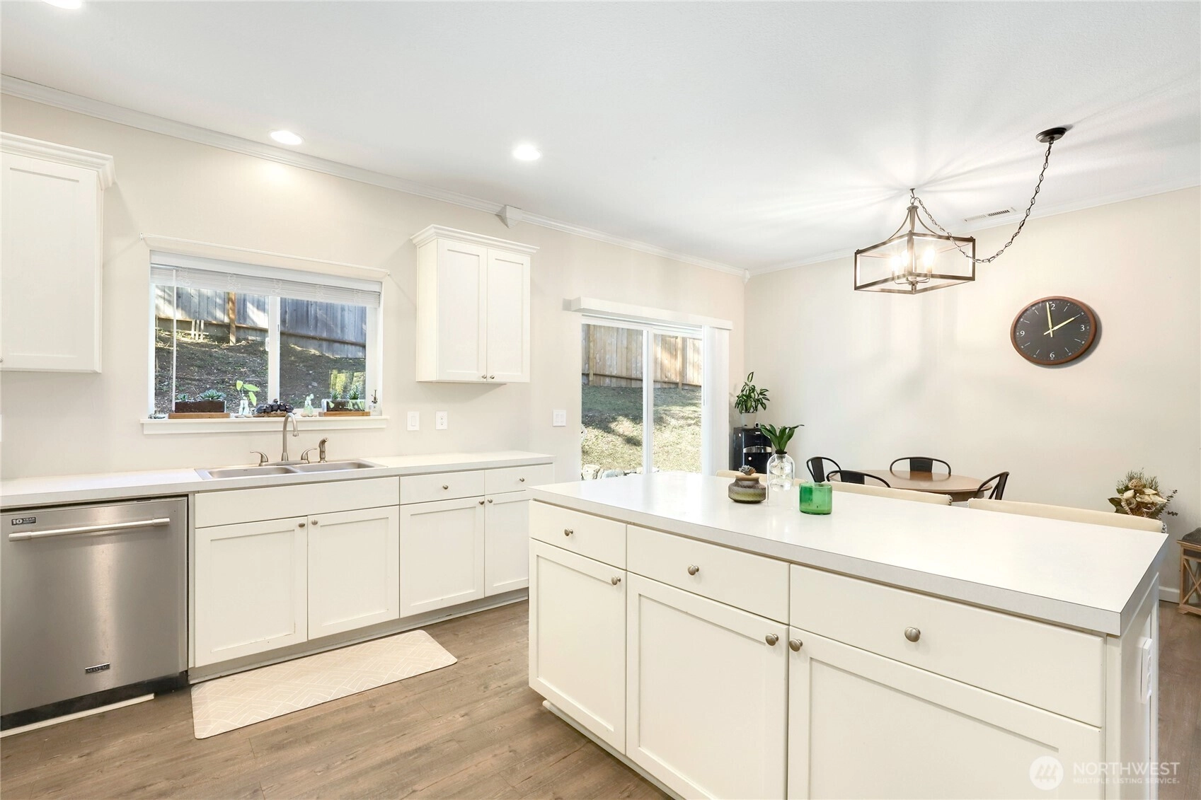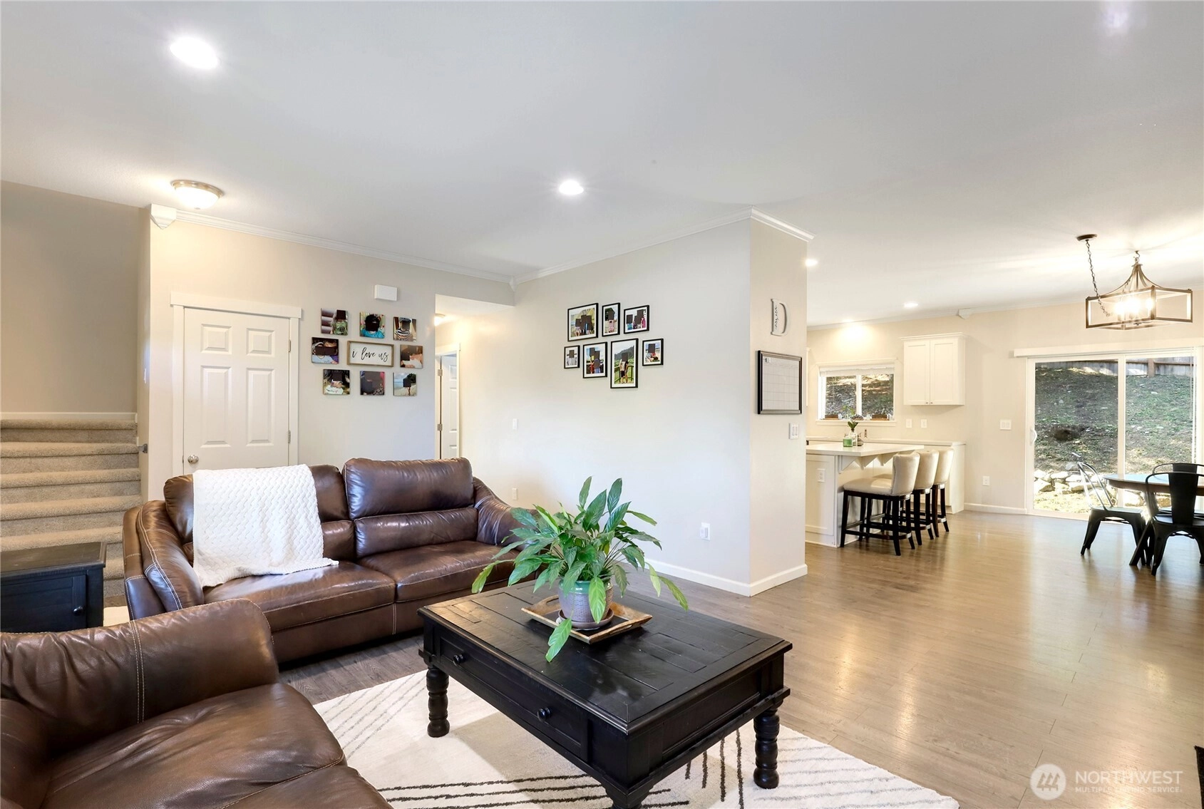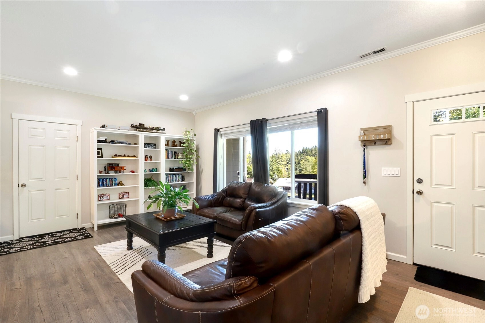 Welcome to this newly built multigenerational home offering thoughtful design and modern comfort. With two primary bedrooms, including one on the main level, plus two additional bedrooms and a spacious loft upstairs, there’s room for flexibility and function. The gourmet kitchen boasts a large island, walk-in pantry, soft-close cabinets, and stainless steel appliances. Enjoy 9-ft ceilings and brand-new laminate flooring on the main. Additional highlights include a covered front porch, upper-level laundry, smart thermostat with heating and A/C, and a fully wired low-voltage system. Outside, the large fenced yard features a generous dog run, space for backyard chickens, and a garden. Complete with a two-car garage and shared well.