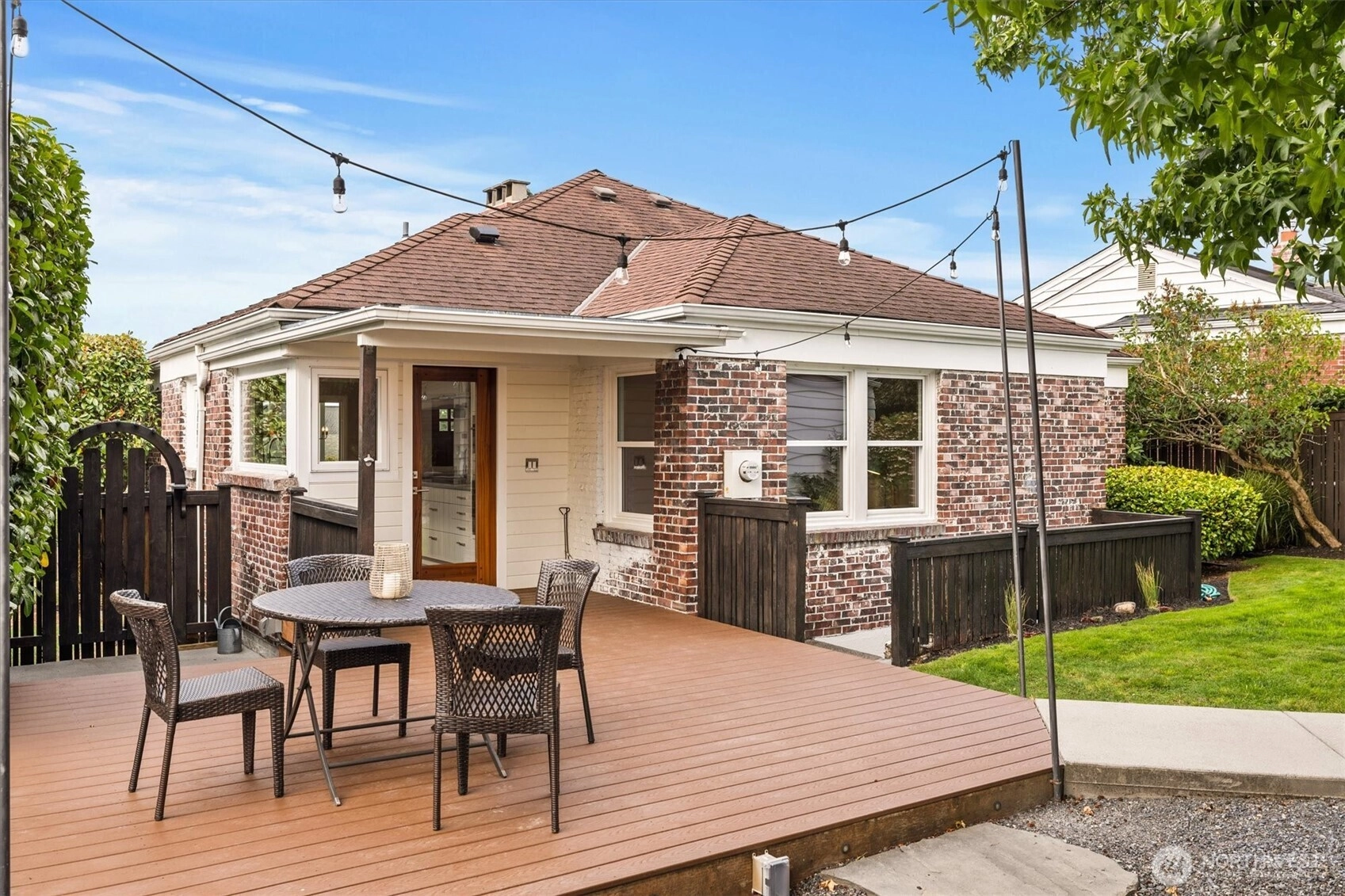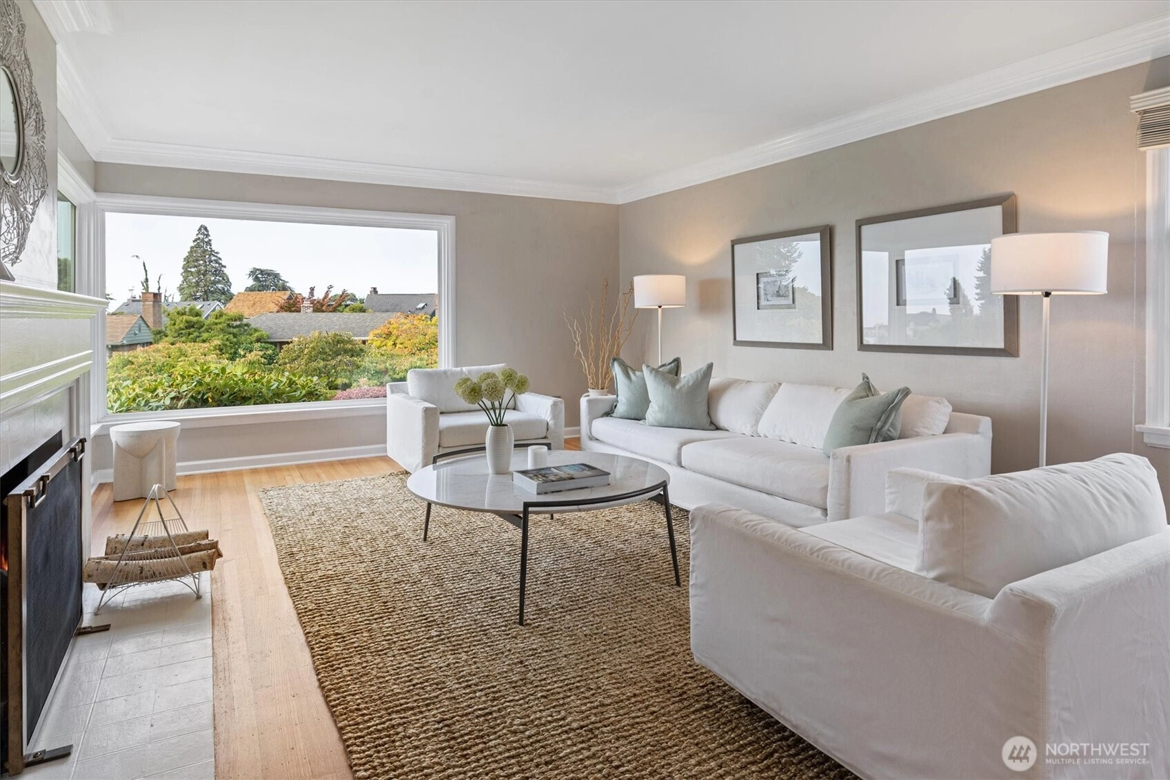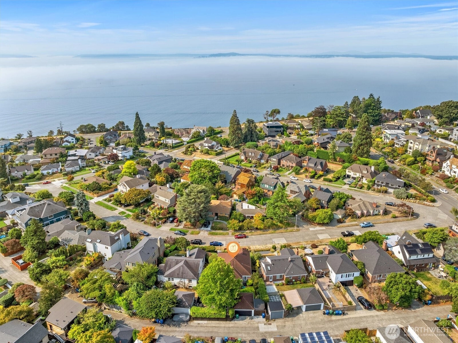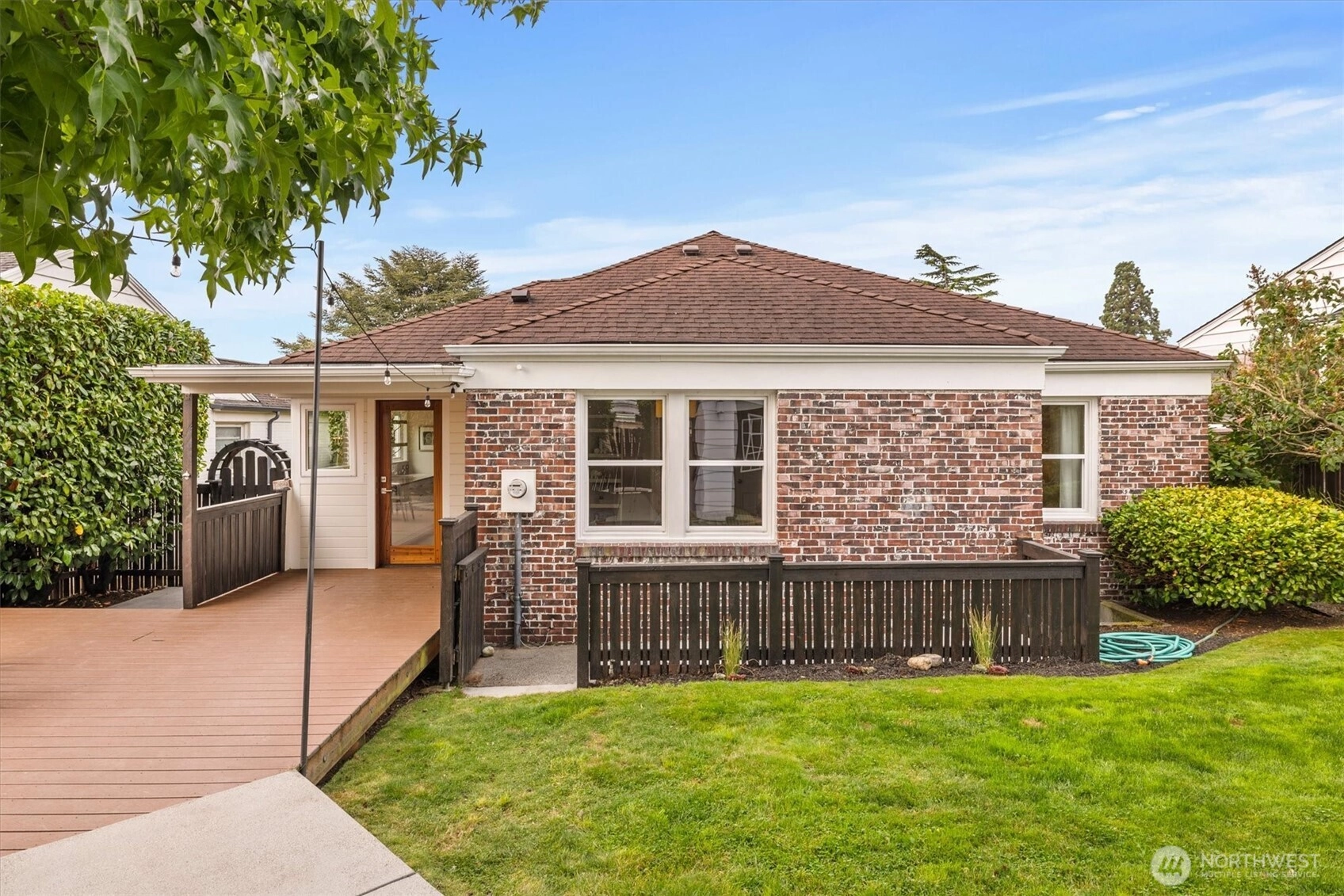 Sited above the street this 1940’s white-washed brick blends timeless charm w/modern updates & captures a water view. Sun-filled spaces feature hrdwds, a sleek kitchen, spa-like primary bath, & guest 1/2 bath. The fully finished lower level offers two bedrooms, a spacious family room, ¾ bath, office nook, and generous laundry. Outside, enjoy a level backyd with alley access to a two-car garage. Nestled on a quiet street in one of Magnolia’s most sought-after neighborhoods, this home delivers character, comfort, and lifestyle—mere blks to Magnolia Blvd, the Village, parks, & schools, with easy commute to South Lake Union & Downtown Seattle by bus, bike, or car. Updates include sewer line, electrical panel, front steps, railings, and more.