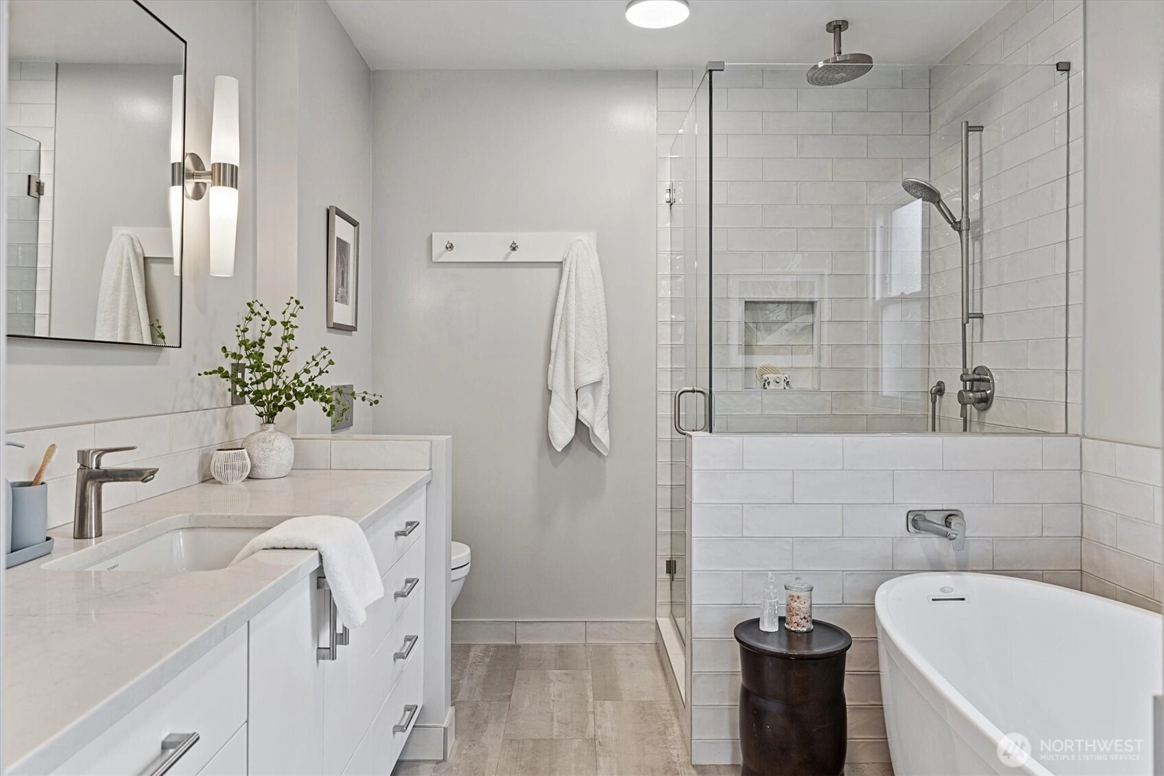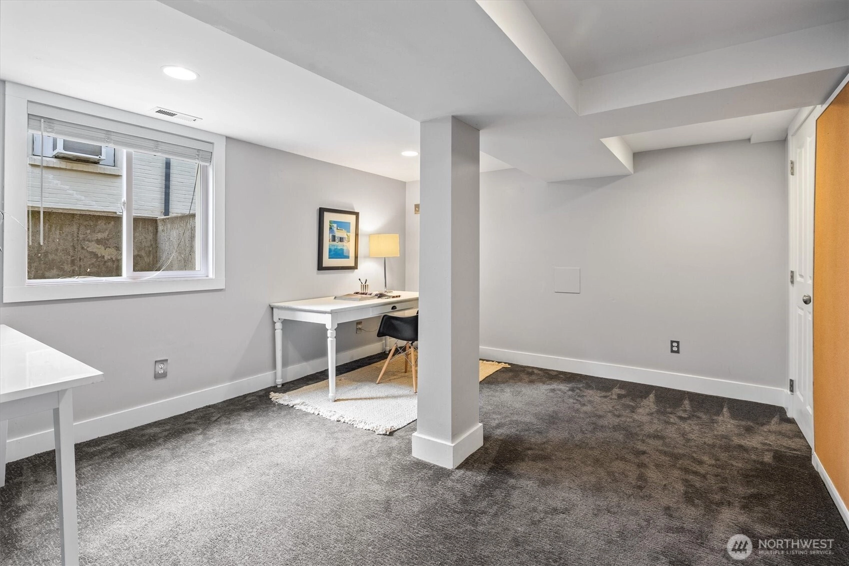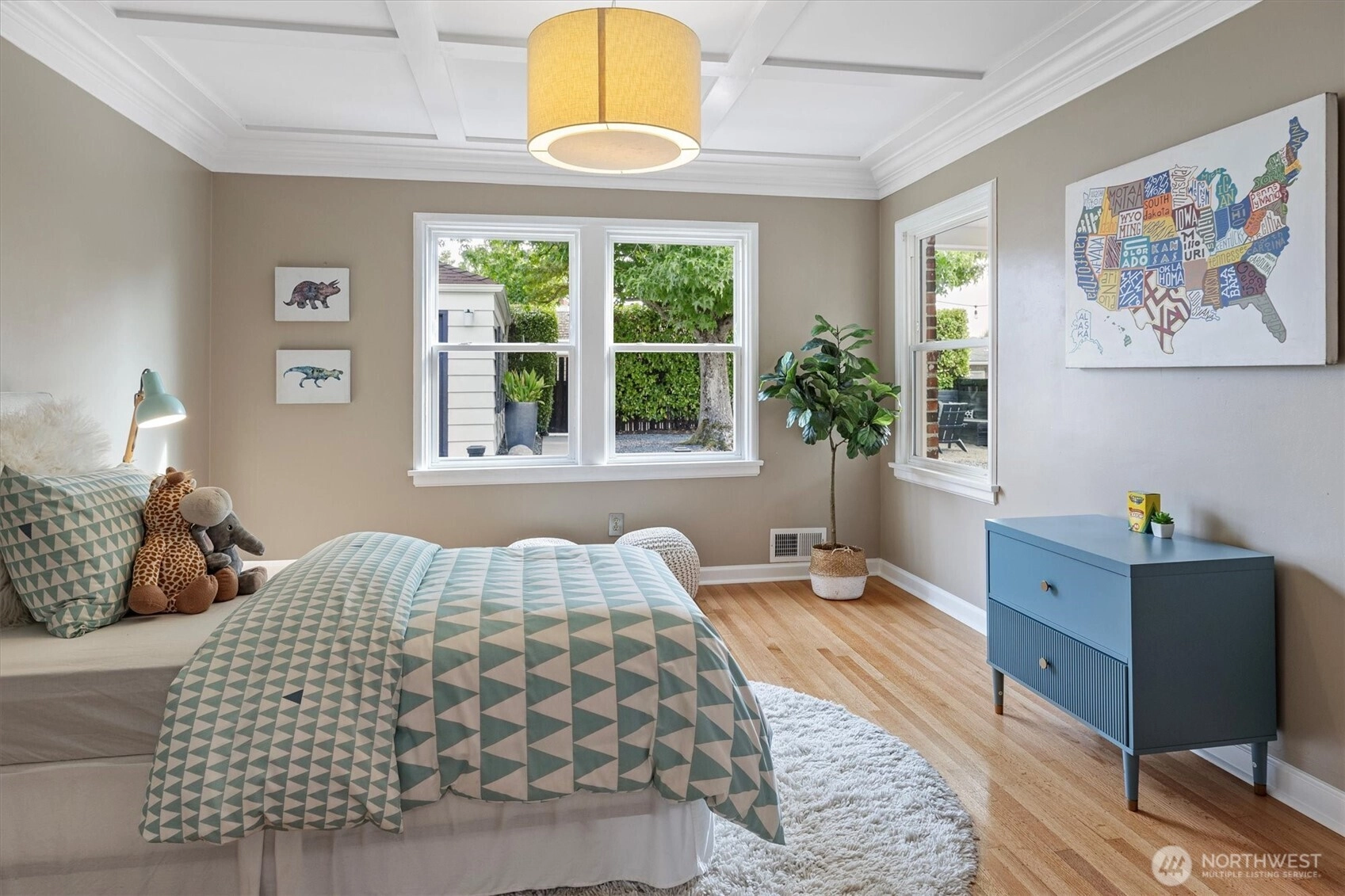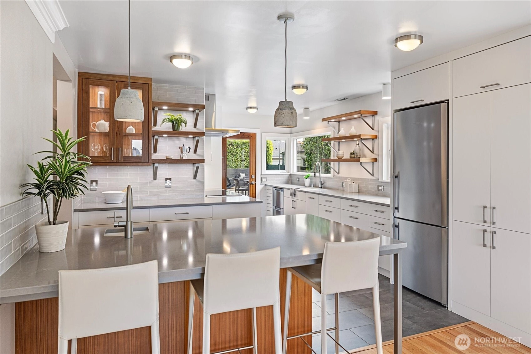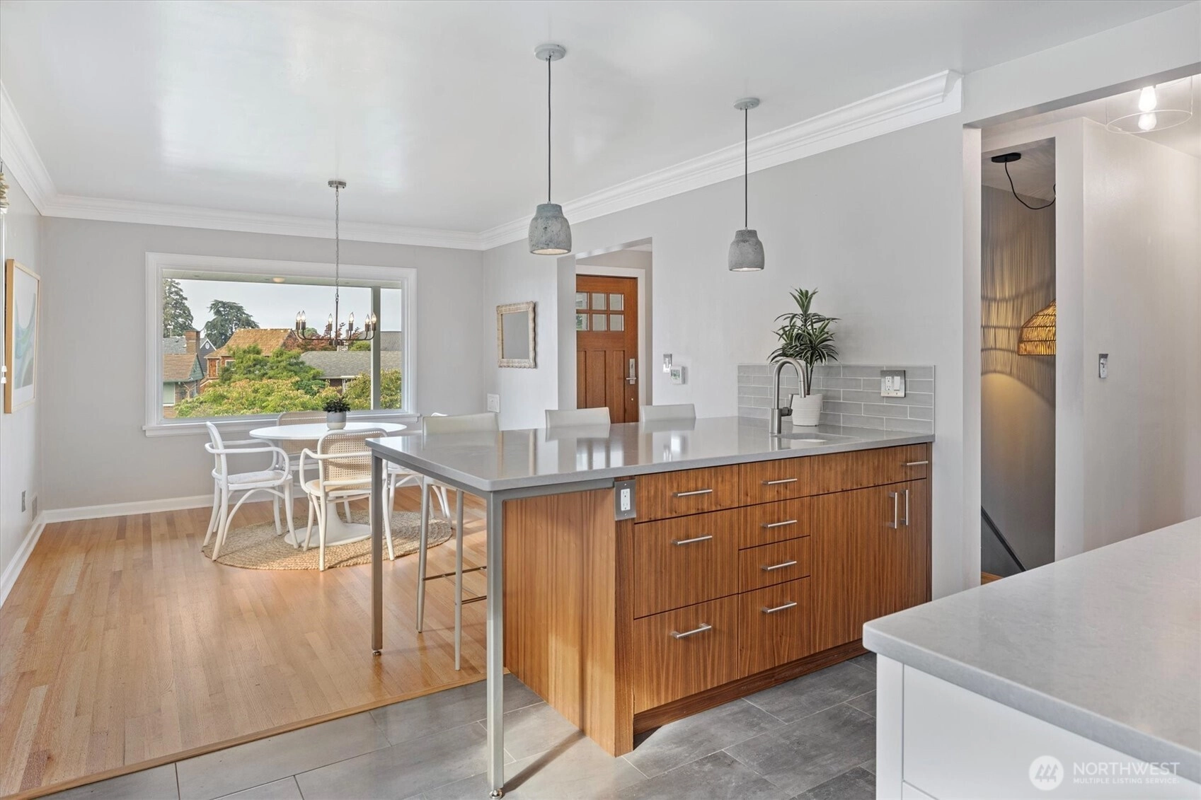 Sited above the street this 1940’s white-washed brick blends timeless charm w/modern updates & captures a water view. Sun-filled spaces feature hrdwds, a sleek kitchen, spa-like primary bath, & guest 1/2 bath. The fully finished lower level offers two bedrooms, a spacious family room, ¾ bath, office nook, and generous laundry. Outside, enjoy a level backyd with alley access to a two-car garage. Nestled on a quiet street in one of Magnolia’s most sought-after neighborhoods, this home delivers character, comfort, and lifestyle—mere blks to Magnolia Blvd, the Village, parks, & schools, with easy commute to South Lake Union & Downtown Seattle by bus, bike, or car. Updates include sewer line, electrical panel, front steps, railings, and more.