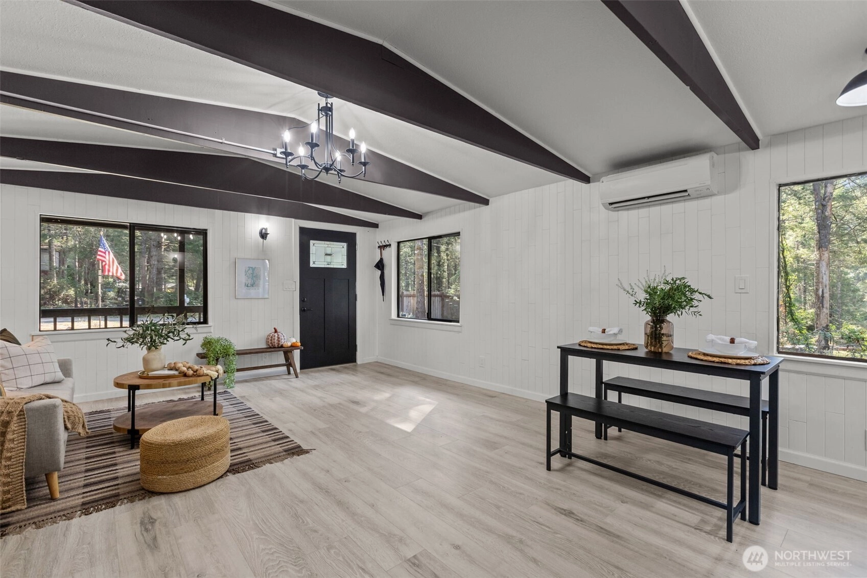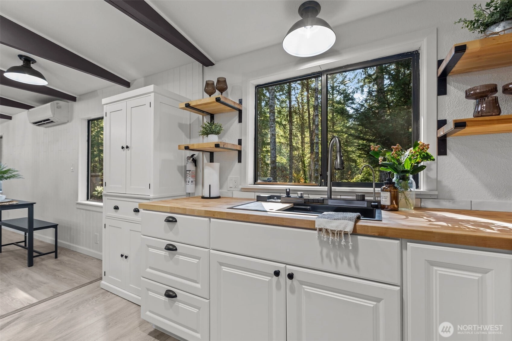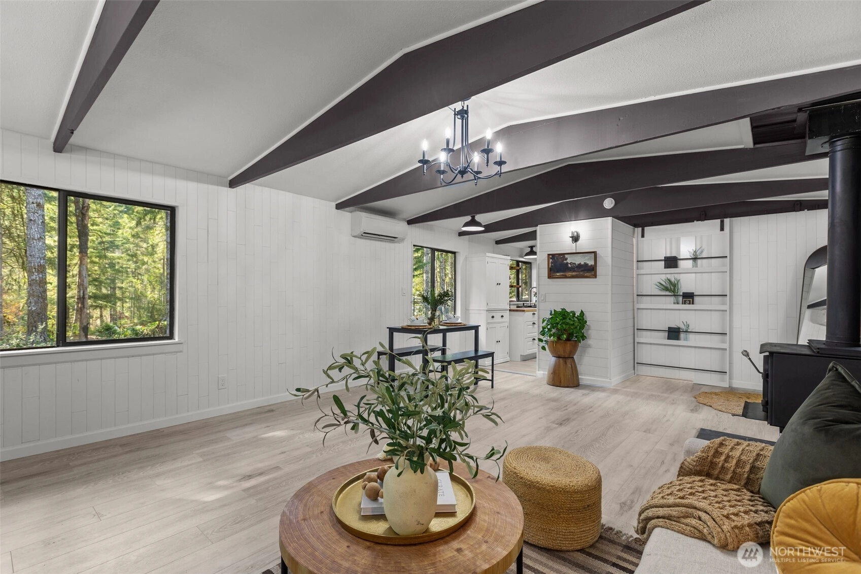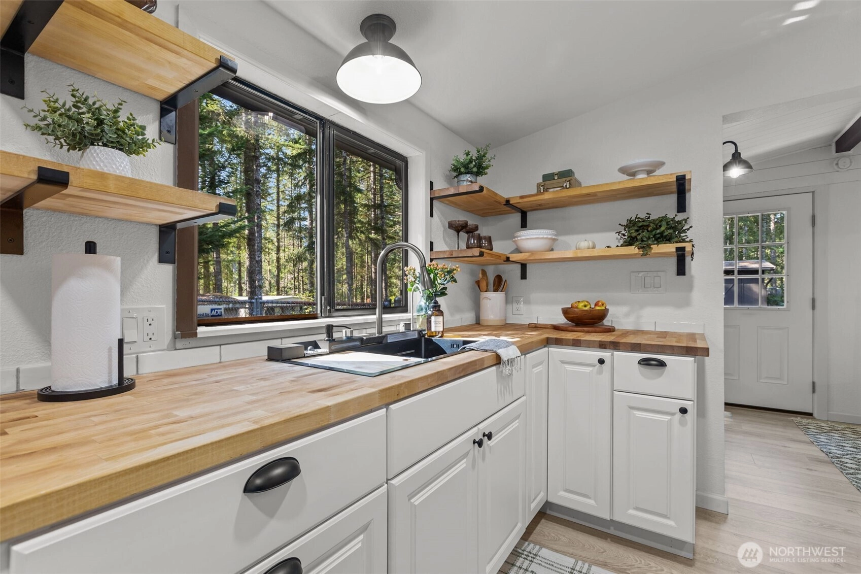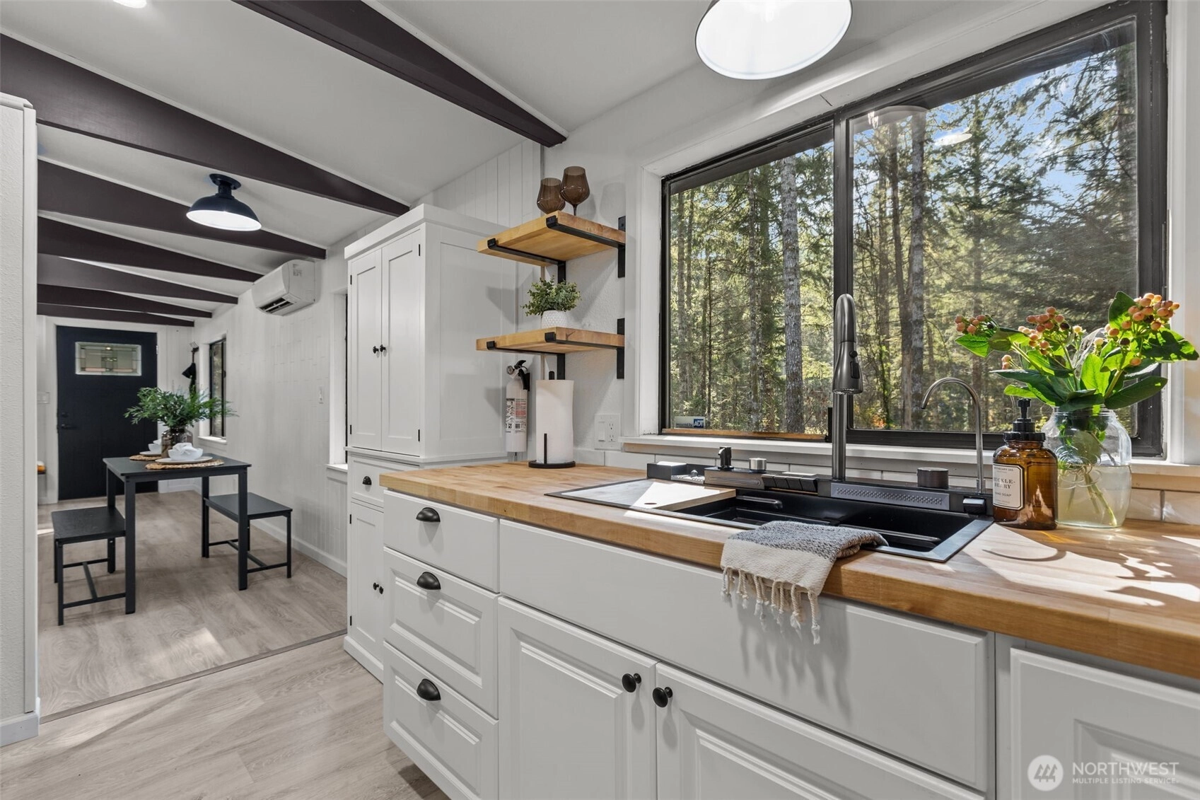Welcome to your dreamy cabin retreat! Nestled on a large corner lot with lush landscaping and a private, gated entry, this home has been fully remodeled from head to toe with a stylish Anthropologie-inspired vibe. Step inside to discover fresh interior and exterior paint, a brand-new kitchen with modern appliances, and cozy living spaces filled with warmth and character. The home features a brand-new lifetime warranty roof, efficient heat pump & mini split. Outside, enjoy the beauty of your fully fenced backyard complete with a fire pit, 10x12 shop, 2-car carport, and additional outbuildings—plus ample RV & boat parking. Located in the quiet and serene Maggie Lake Community, you’ll have access to both lake living and saltwater adventures.