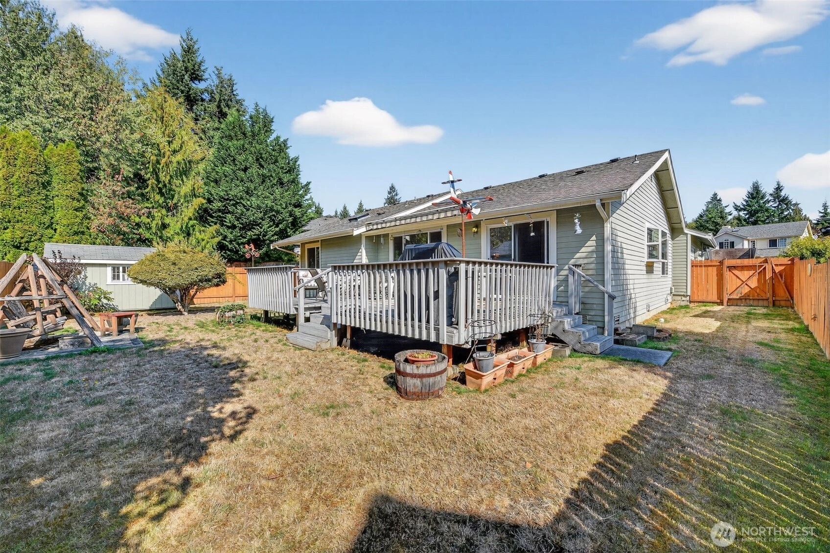 Charming home in Silverdale’s Ridgetop neighborhood, tucked away on a quiet dead-end street. Enjoy a cozy wood-burning fireplace, back deck with motorized sun shade, an accessible shower, and an 8×12 shed for extra storage. The fully fenced yard, spacious interior, attached garage, and large lot provide plenty of room to relax and entertain. Conveniently located just minutes from Island Lake and Park, nestled between Liberty Bay and Dyes Inlet, and close to shopping. The ideal blend of comfort, utility, and location—don’t miss this one!