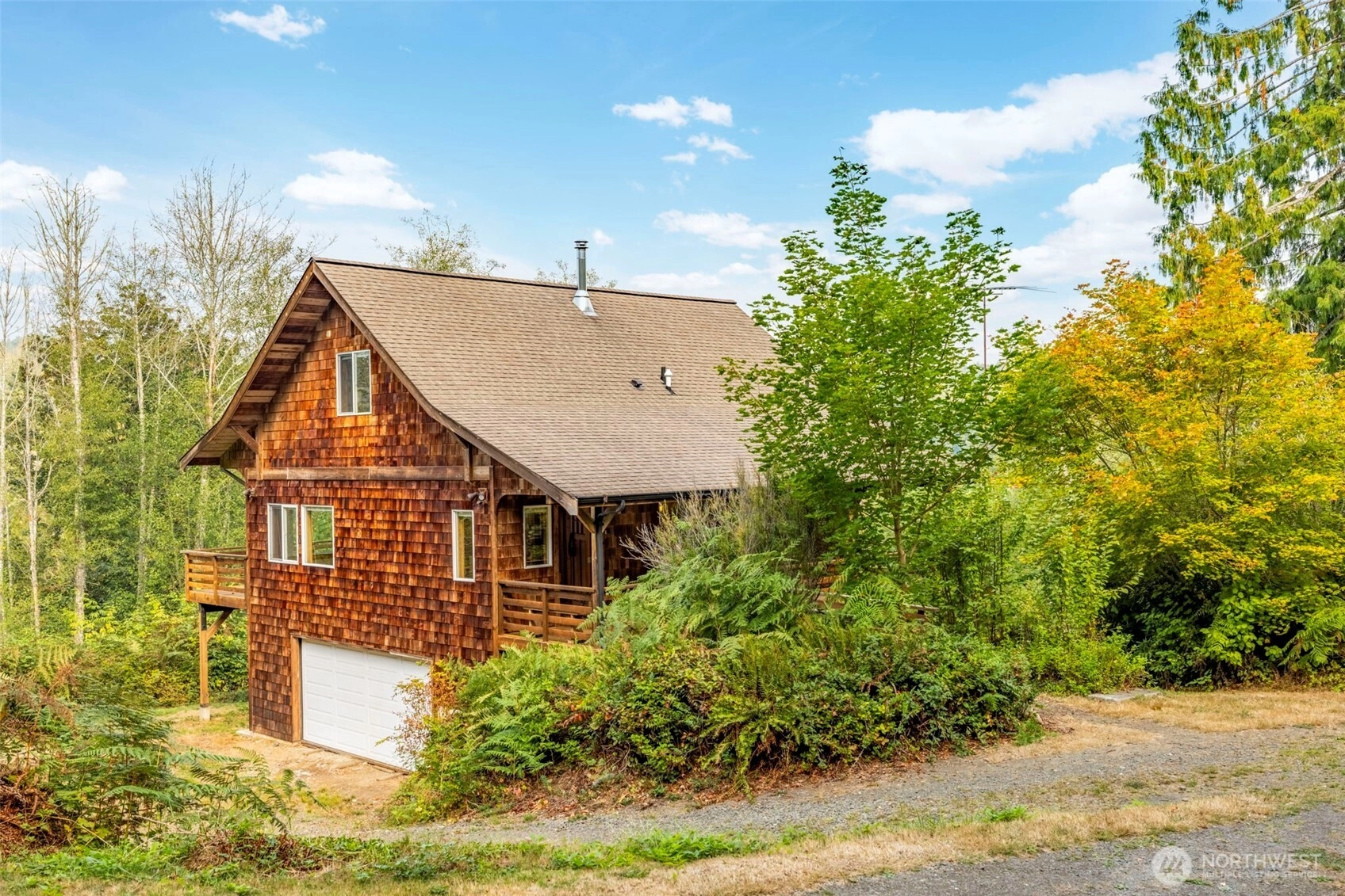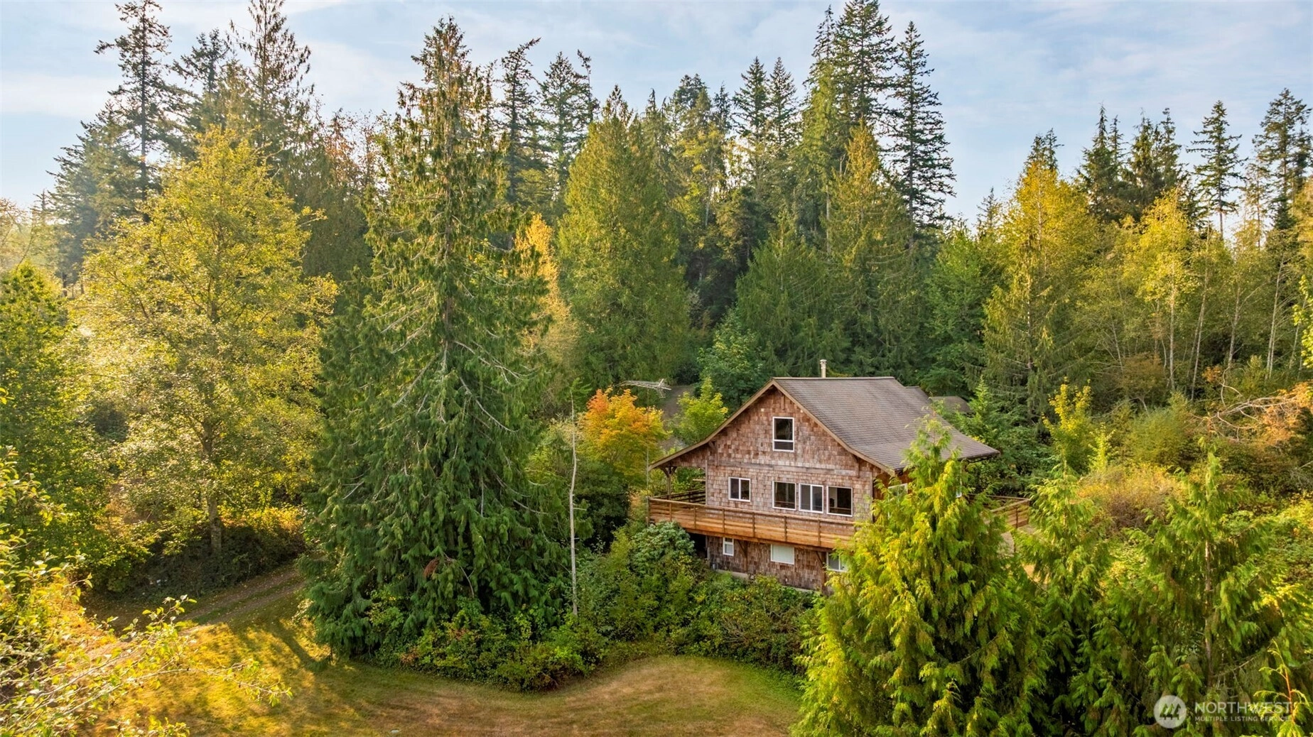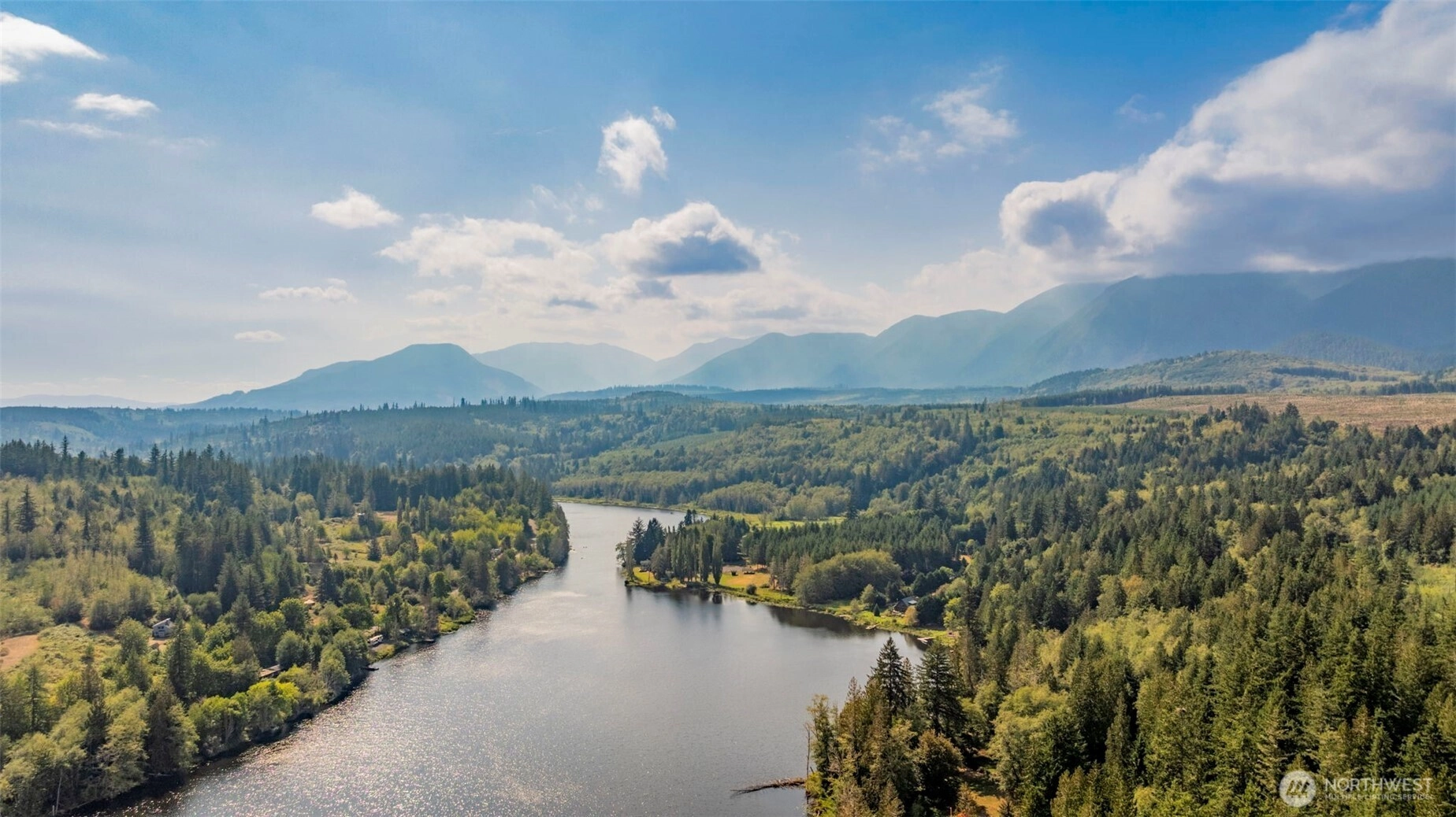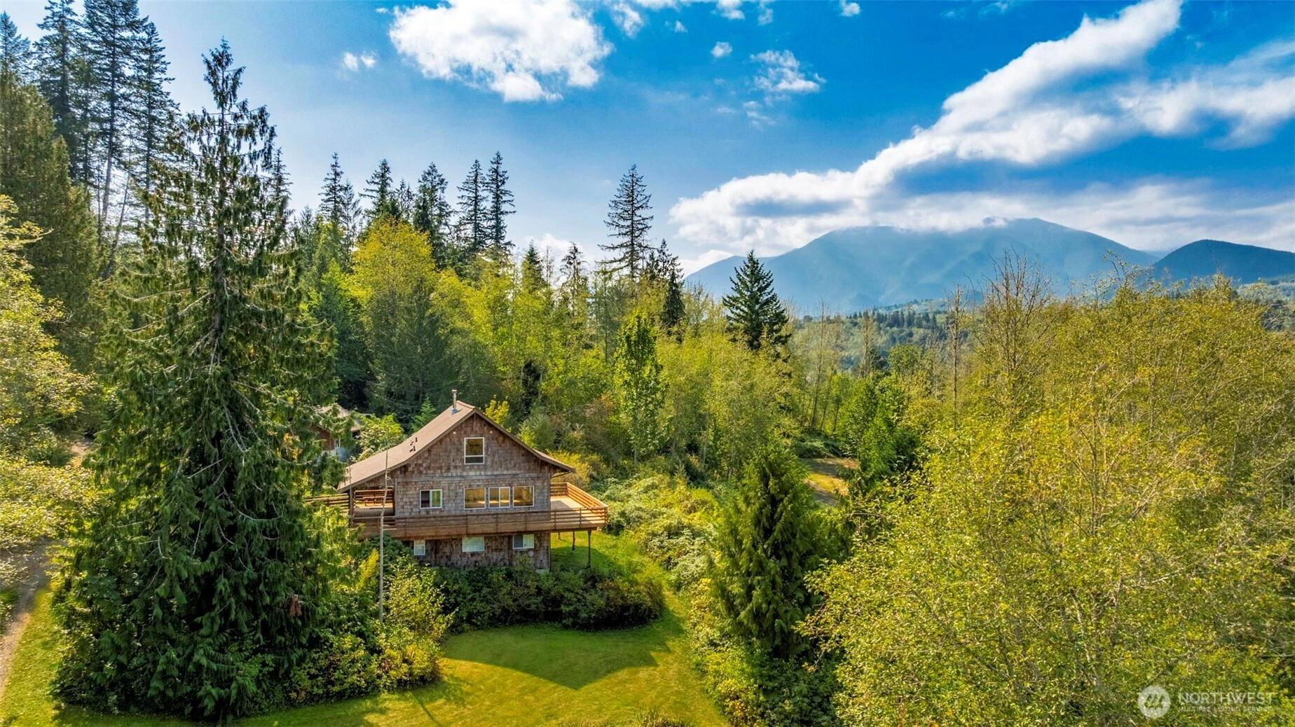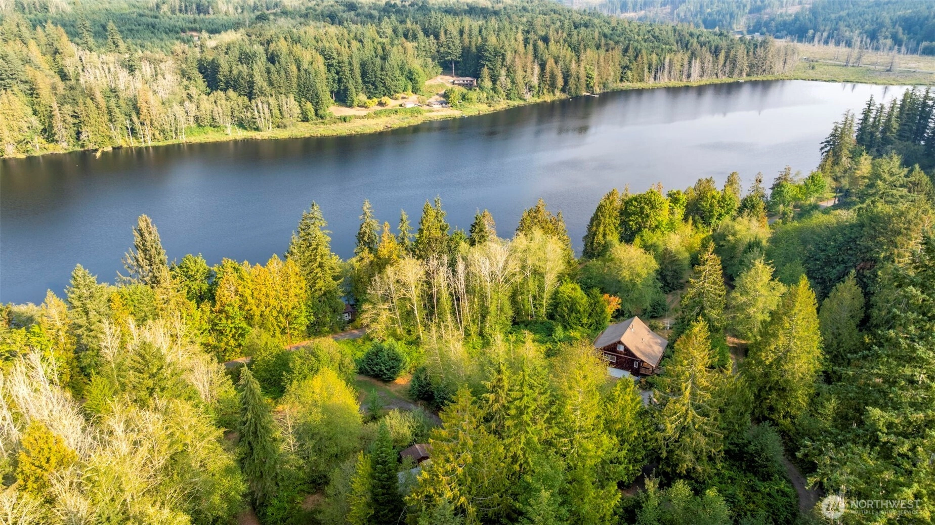 Your Quilcene hideaway awaits! Nestled amongst 10+ private acres on beautiful Leland Lake, enjoy spectacular mountain views and nearly 400 feet of exclusive waterfront with floating dock. Custom built and architecturally significant, this home features natural elements throughout, including dramatic cedar pillars and beams from the property itself, vaulted ceilings, and an XL mountain-view deck. This home has a newer roof, with all systems in good shape, plus an oversized 2-car garage w/ shop. Leland Lake is a popular destination for year round fishing, and is close to several notable trailheads in the Olympic National Forest. Listing incl. two separate parcels with ~5 acres each, the second of which is currently linked, but undeveloped.