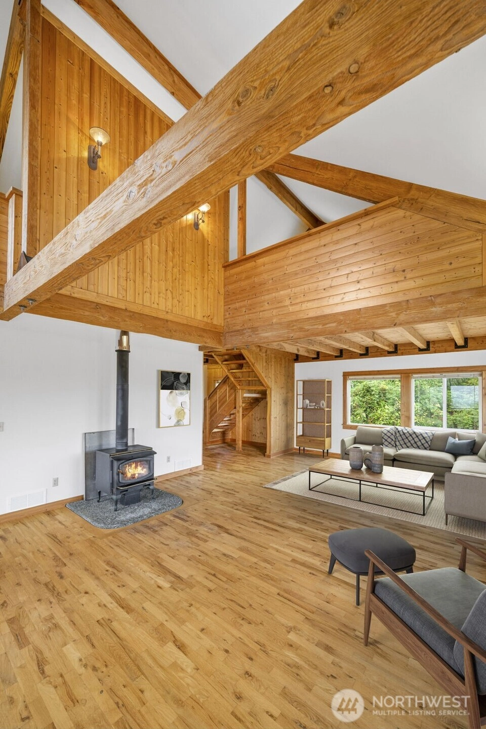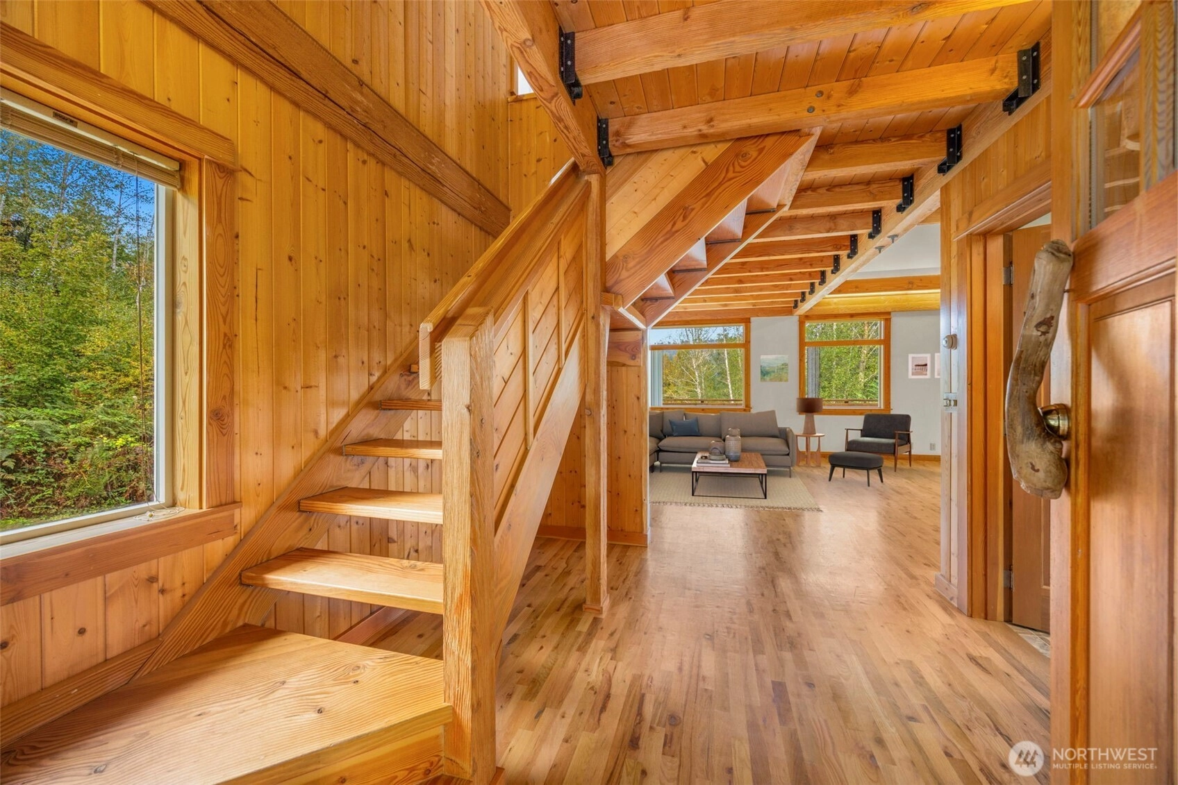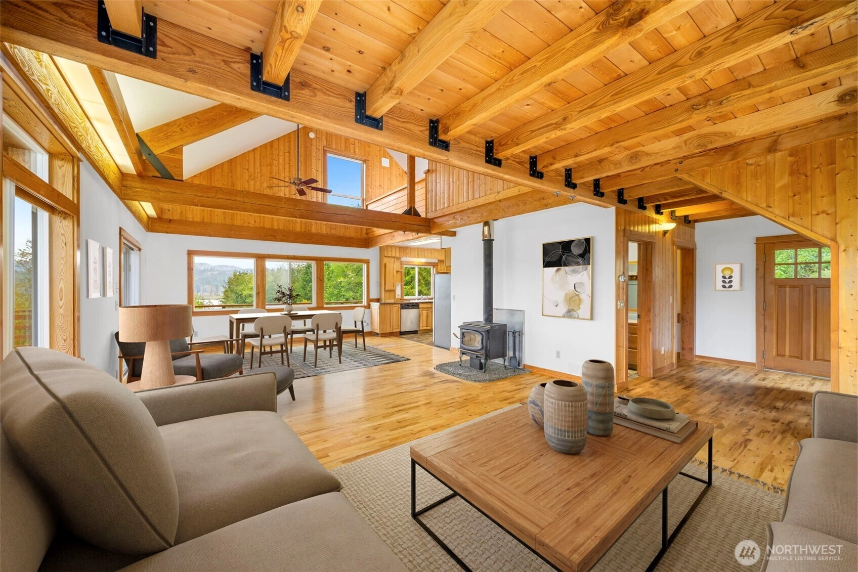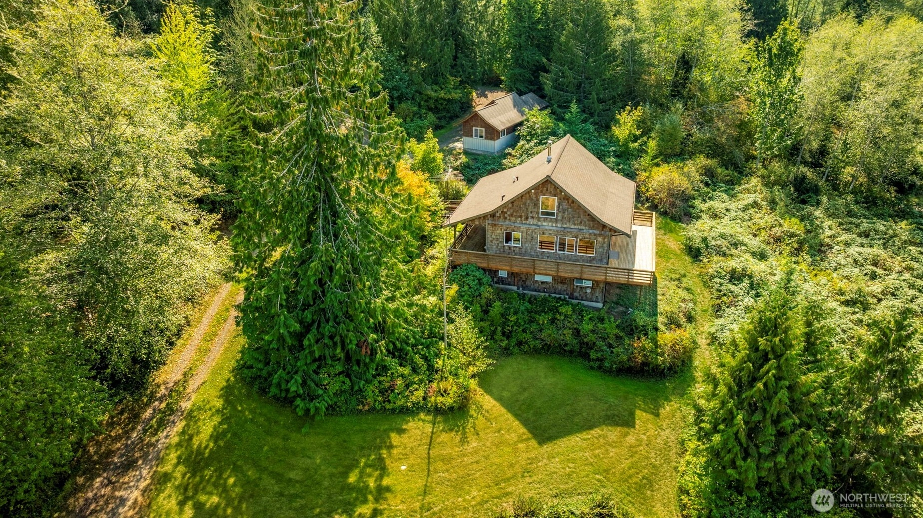Your Quilcene hideaway awaits! Nestled amongst 10+ private acres on beautiful Leland Lake, enjoy spectacular mountain views and nearly 400 feet of exclusive waterfront with floating dock. Custom built and architecturally significant, this home features natural elements throughout, including dramatic cedar pillars and beams from the property itself, vaulted ceilings, and an XL mountain-view deck. This home has a newer roof, with all systems in good shape, plus an oversized 2-car garage w/ shop. Leland Lake is a popular destination for year round fishing, and is close to several notable trailheads in the Olympic National Forest. Listing incl. two separate parcels with ~5 acres each, the second of which is currently linked, but undeveloped.