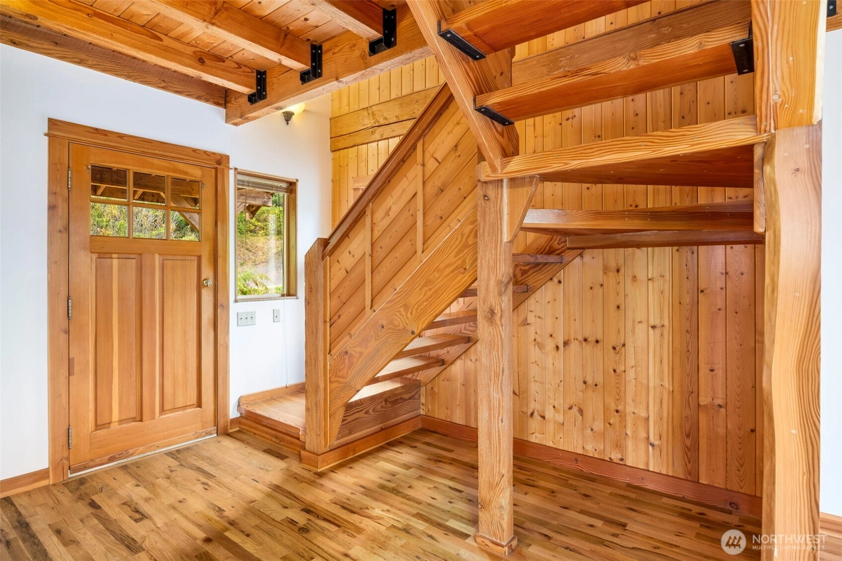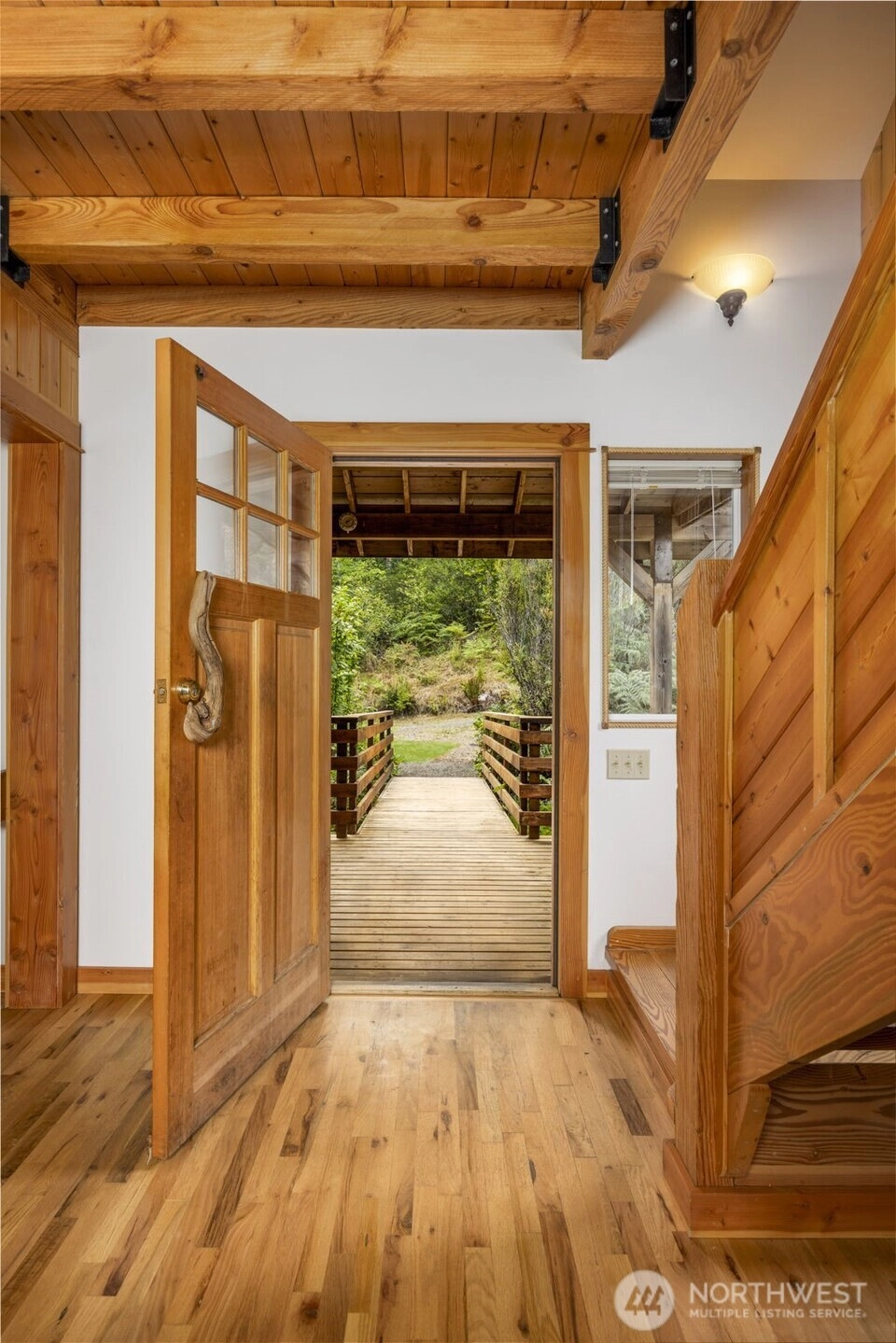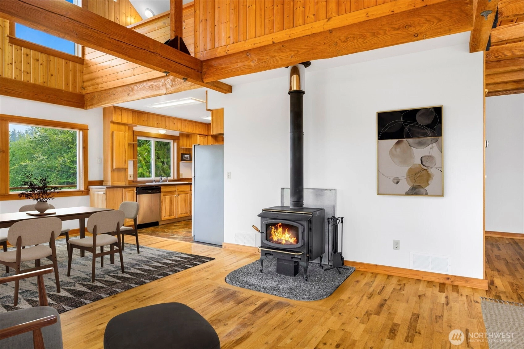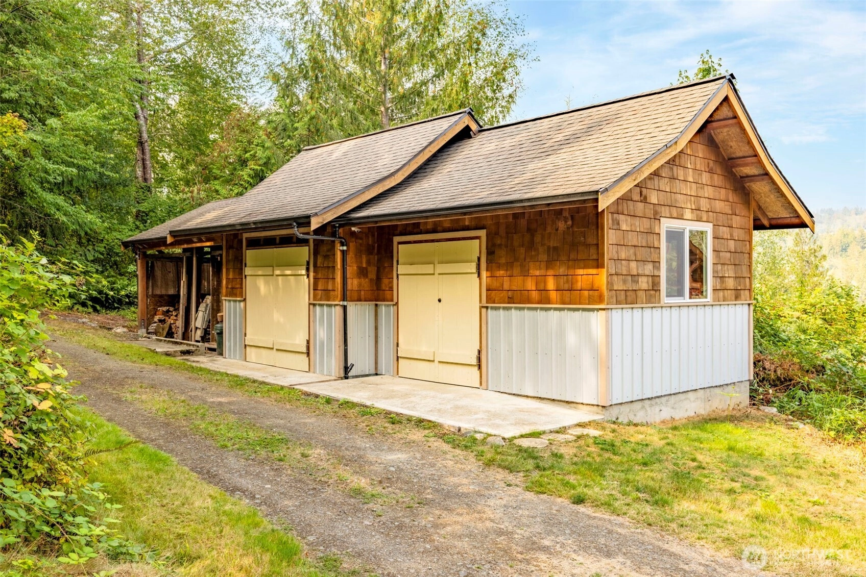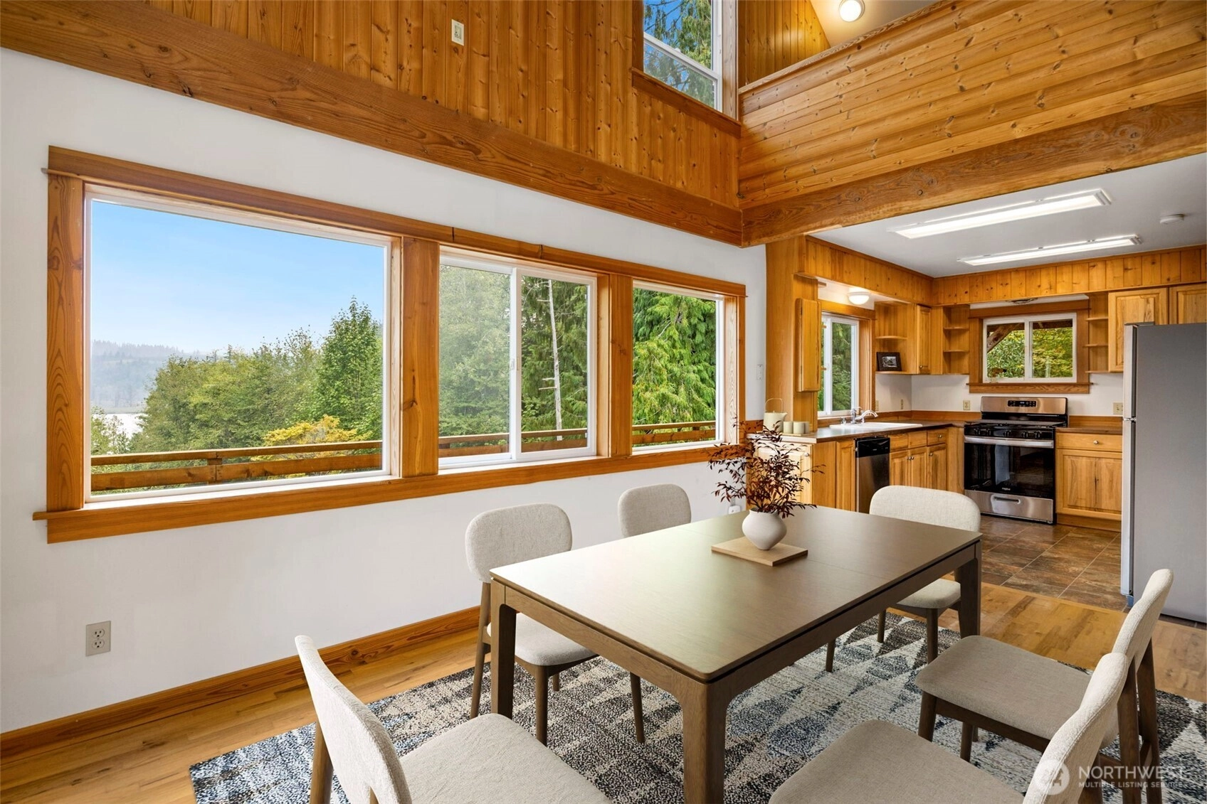 Your Quilcene hideaway awaits! Nestled amongst 10+ private acres on beautiful Leland Lake, enjoy spectacular mountain views and nearly 400 feet of exclusive waterfront with floating dock. Custom built and architecturally significant, this home features natural elements throughout, including dramatic cedar pillars and beams from the property itself, vaulted ceilings, and an XL mountain-view deck. This home has a newer roof, with all systems in good shape, plus an oversized 2-car garage w/ shop. Leland Lake is a popular destination for year round fishing, and is close to several notable trailheads in the Olympic National Forest. Listing incl. two separate parcels with ~5 acres each, the second of which is currently linked, but undeveloped.