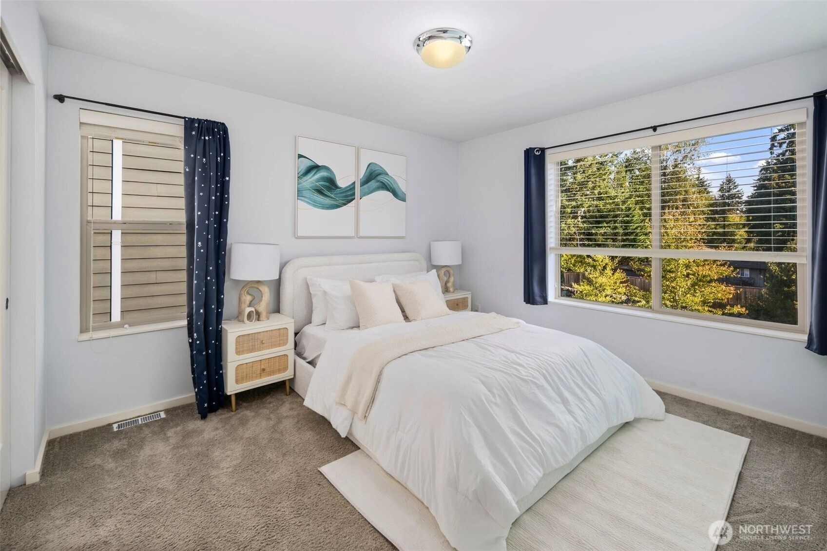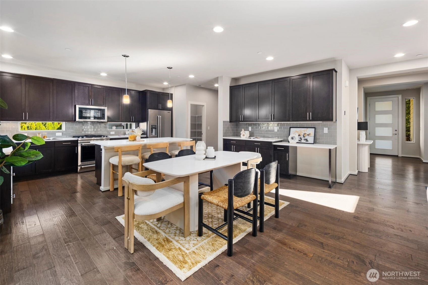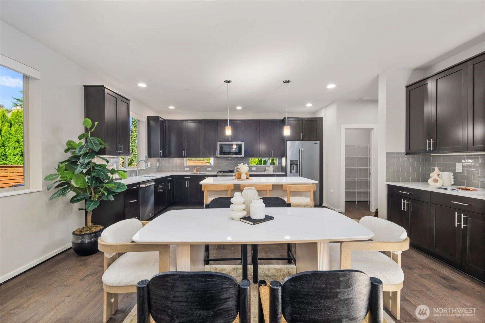 Discover this pristine 2017 residence nestled on a quiet Kenmore street. Spanning nearly 2,900 sq ft, this 4-bed, 3-bath home boasts an impeccably designed floor plan. The sun-drenched main level features a bedroom suite (with an adjacent full bath), an office/den, and an chef’s kitchen that opens seamlessly to the main living area. Upstairs, the flow continues with a massive flex room perfect as a vibrant game center or media lounge. The ensuite features a large soaking tub, a separate oversized shower, and dual vanities. Step out to your private, fenced entertaining sanctuary in the backyard. This meticulously maintained space offers a generous patio area. Northshore Schools & commuter proximity complete this package!