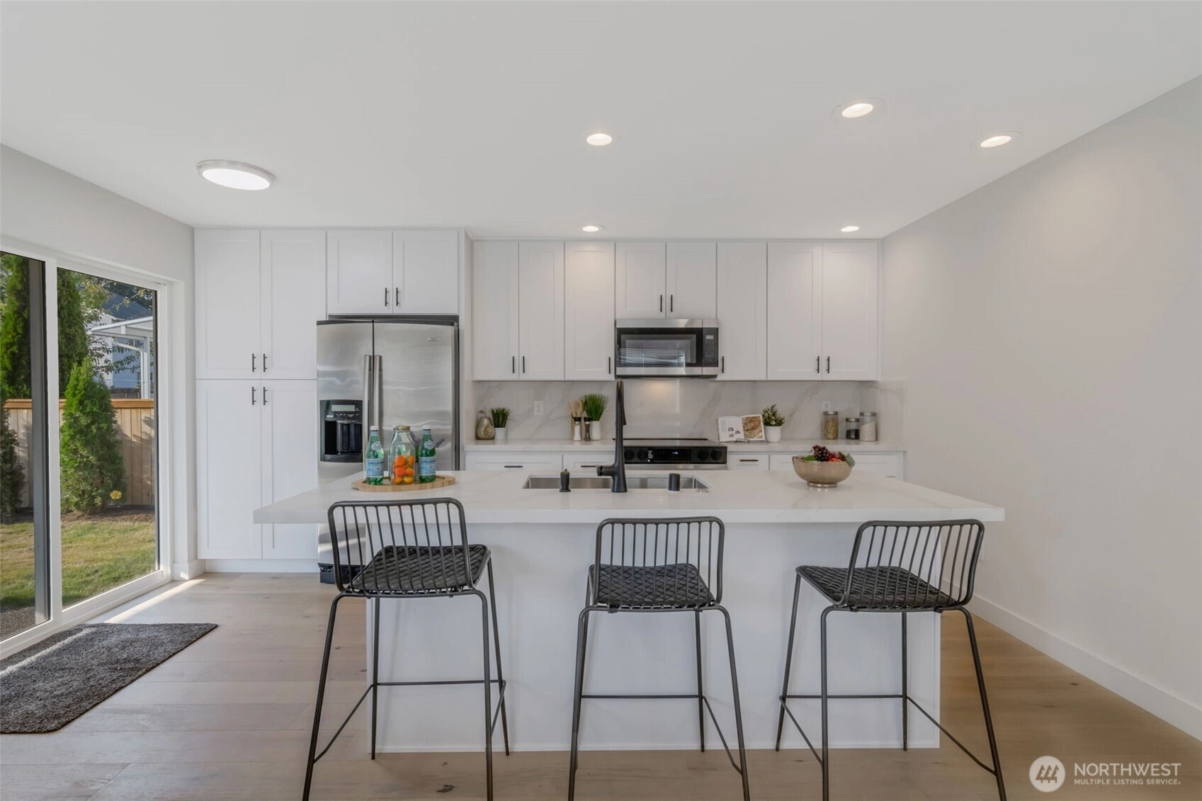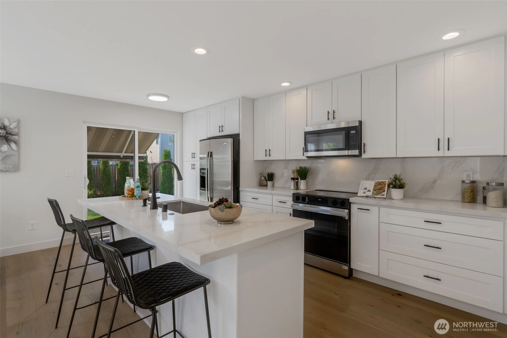 Beautifully remodeled home with high-quality finishes throughout! All new floor coverings, including gorgeous hardwoods on the main level, enhance the bright and sunny open-concept layout. The modern kitchen features an oversized breakfast bar, sleek quartz counters, and abundant cabinetry. Retreat to the spacious primary suite with a spa like bath. Outside, enjoy a fully fenced yard with a covered patio and awning. Complete with a two-car garage and large driveway, all in the desirable Redmond Ridge community with trails, parks, clubhouse, and top-rated schools.