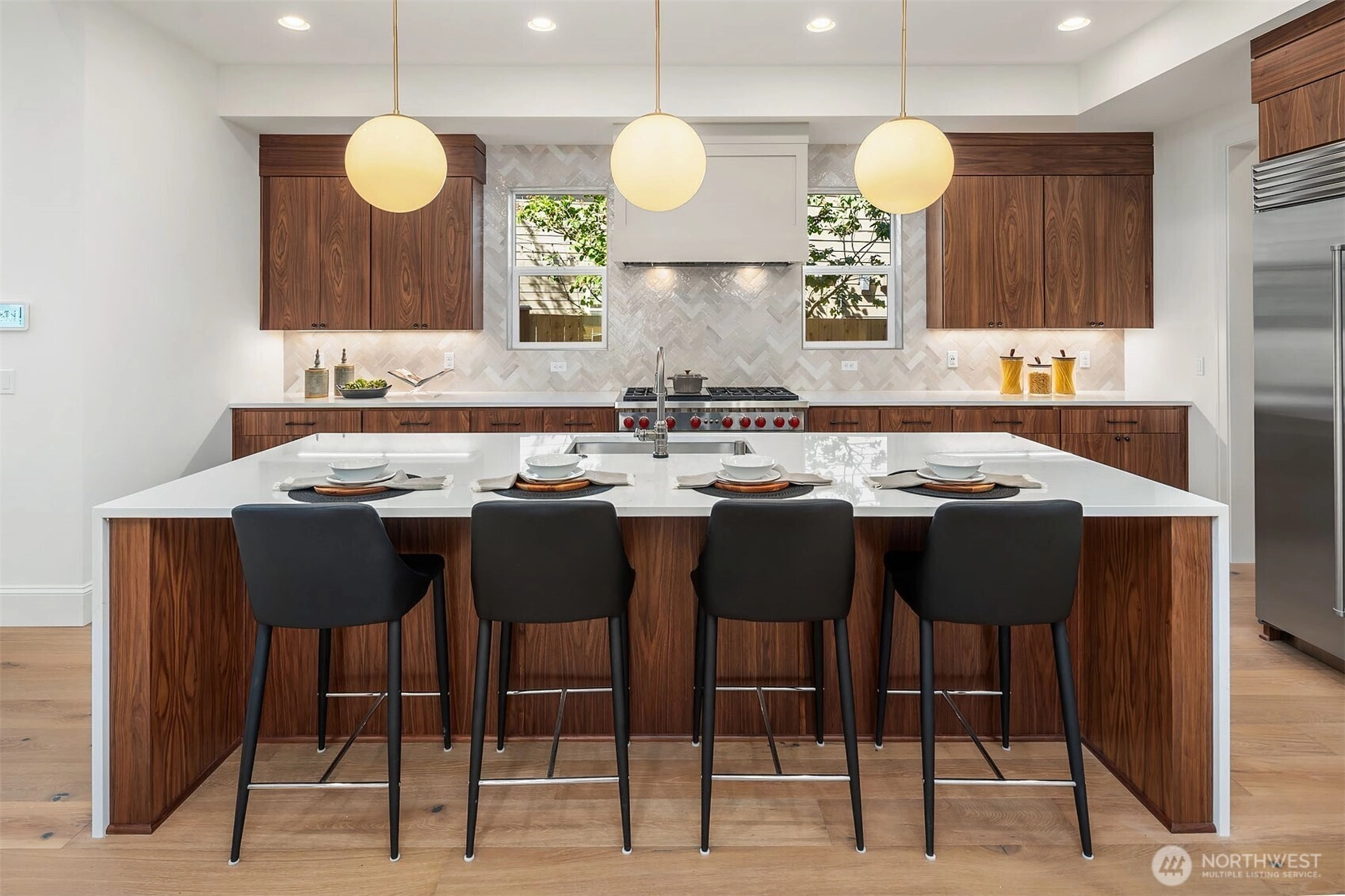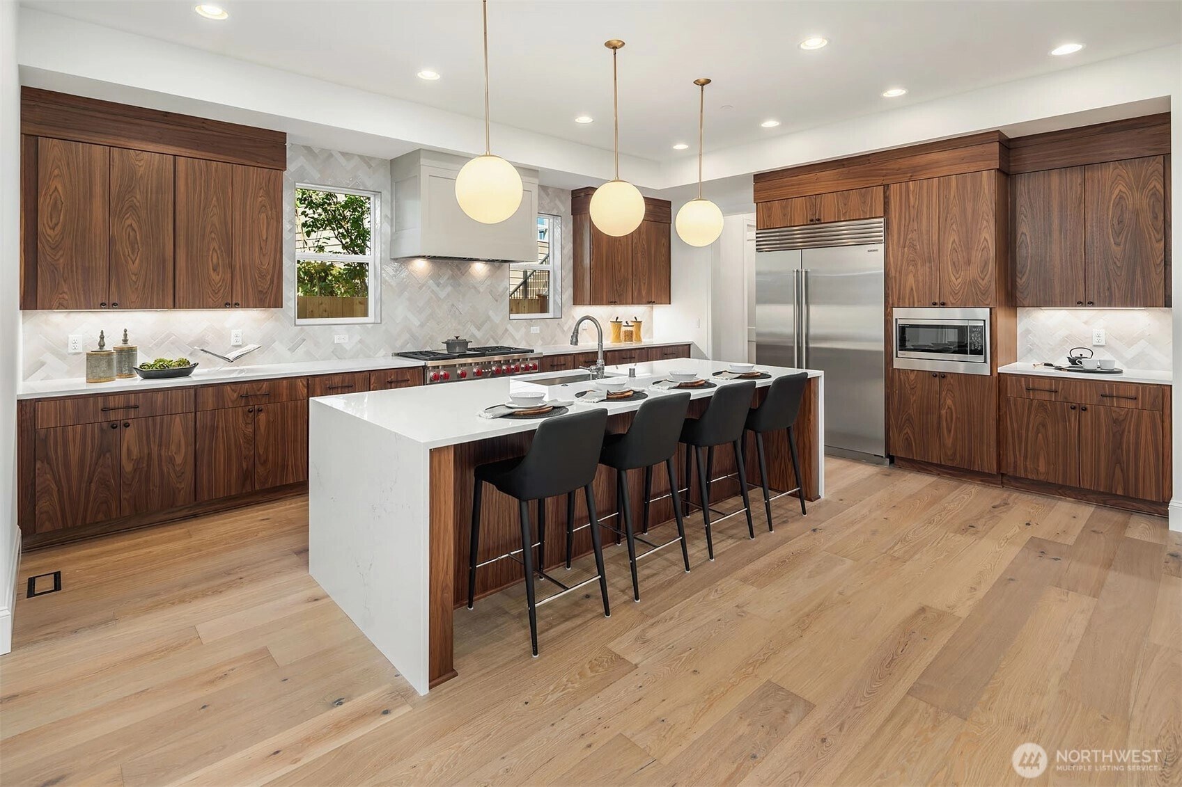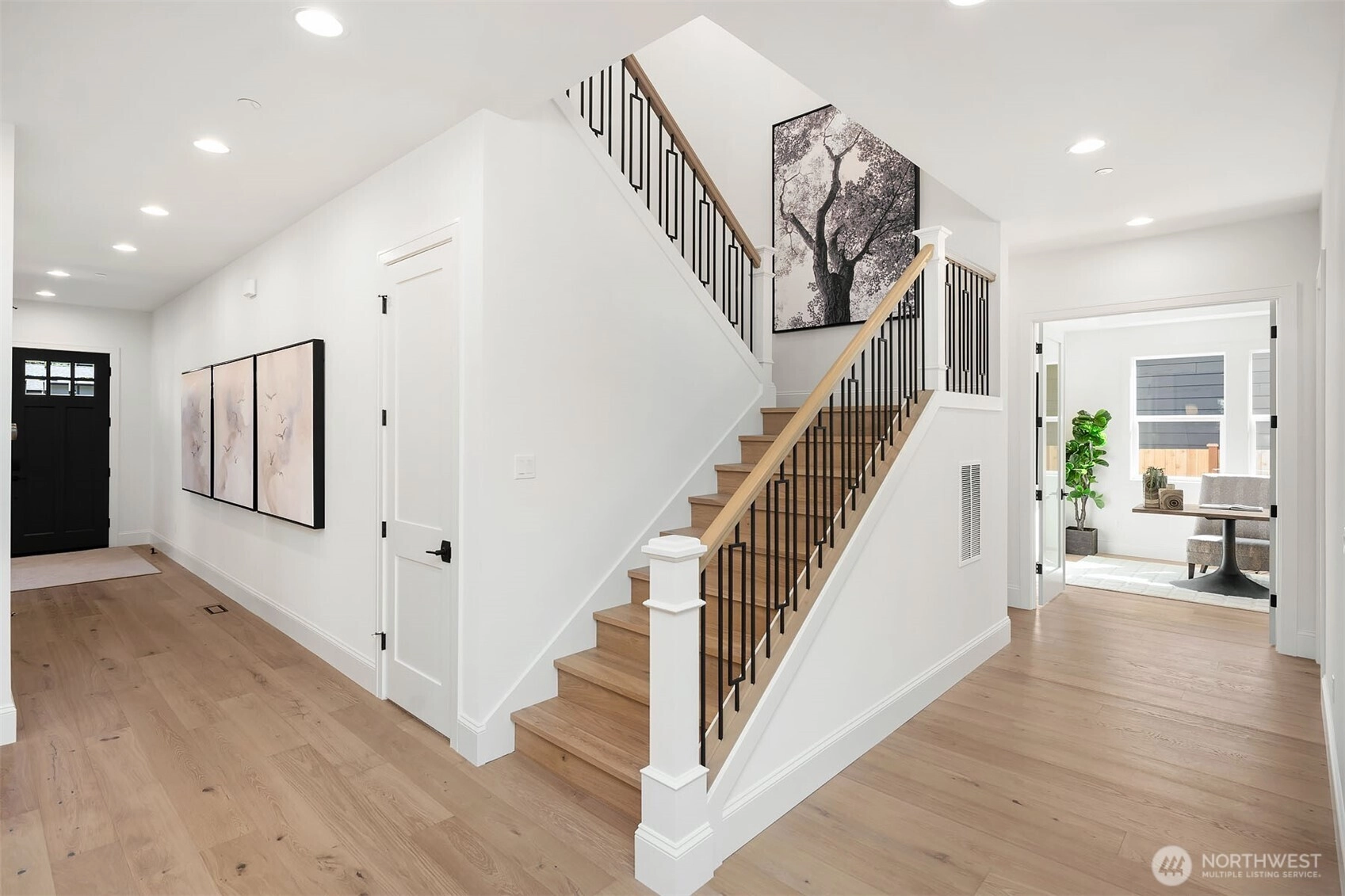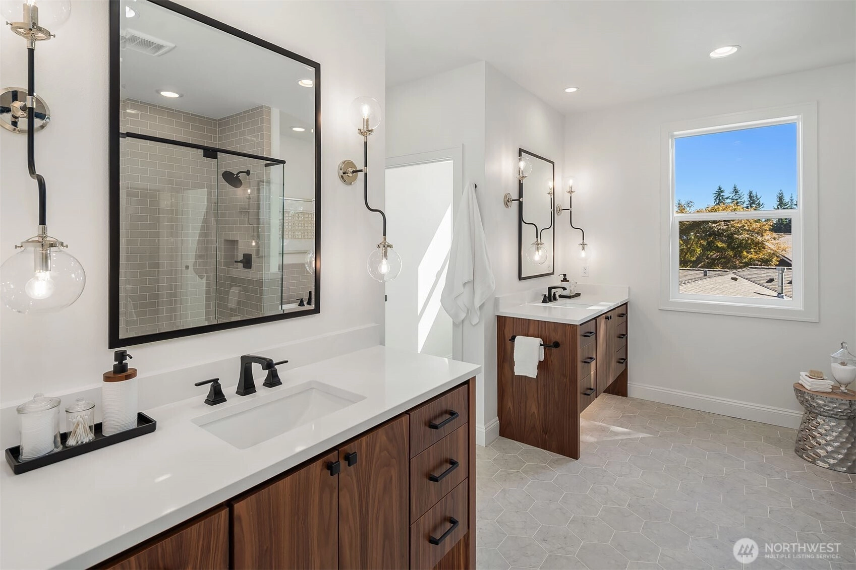 MN Custom Homes presents a modern Craftsman located just blocks from Microsoft. Entertainment spaces include vaulted great room, chef’s kitchen, outdoor covered living space that overlooks the private backyard. Primary suite retreat with 5-piece bath & heated floors. Main floor guest en-suite. Designated home office and dining room. Smart & green home features throughout, including solar panels. Convenient access to shopping, schools, DT Bellevue & DT Redmond plus the Spring District. Just up street from Marymoor Park.