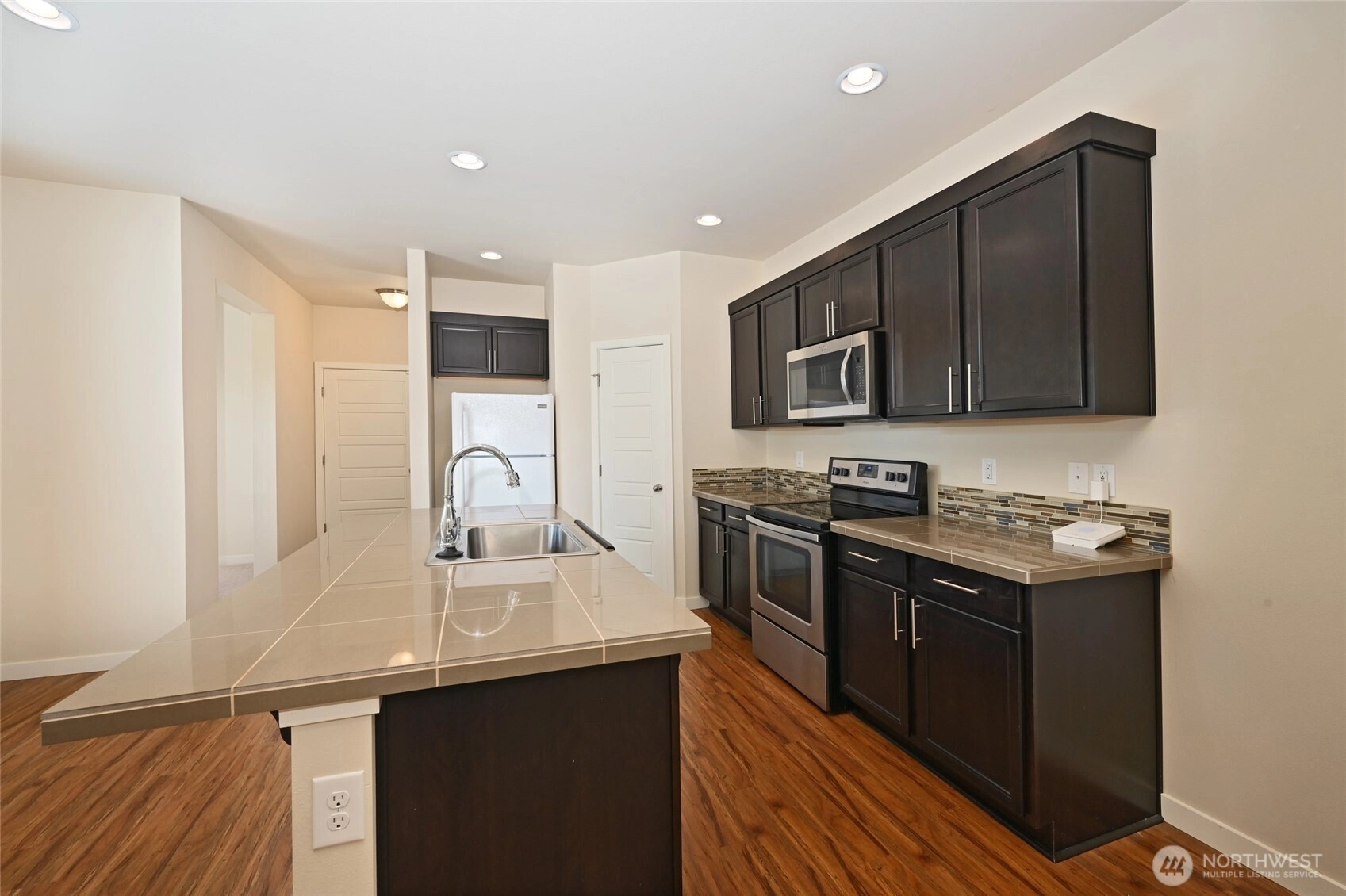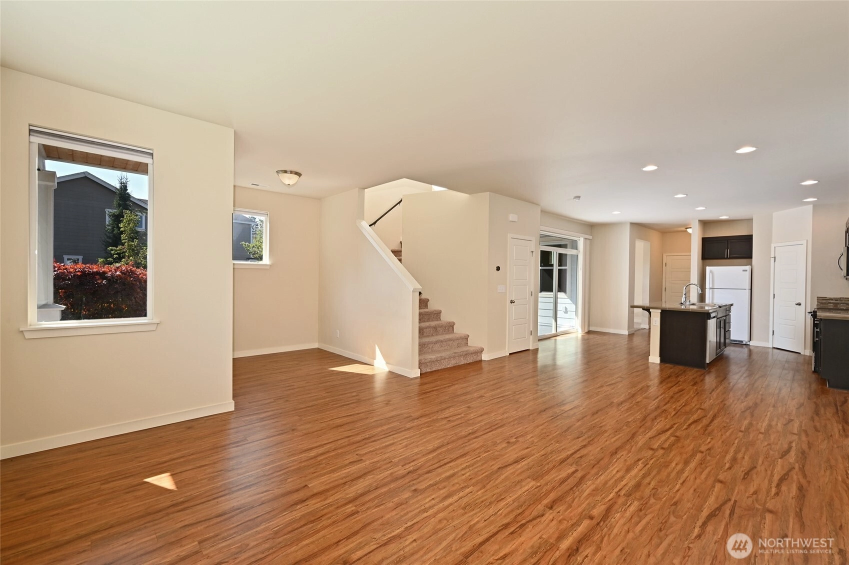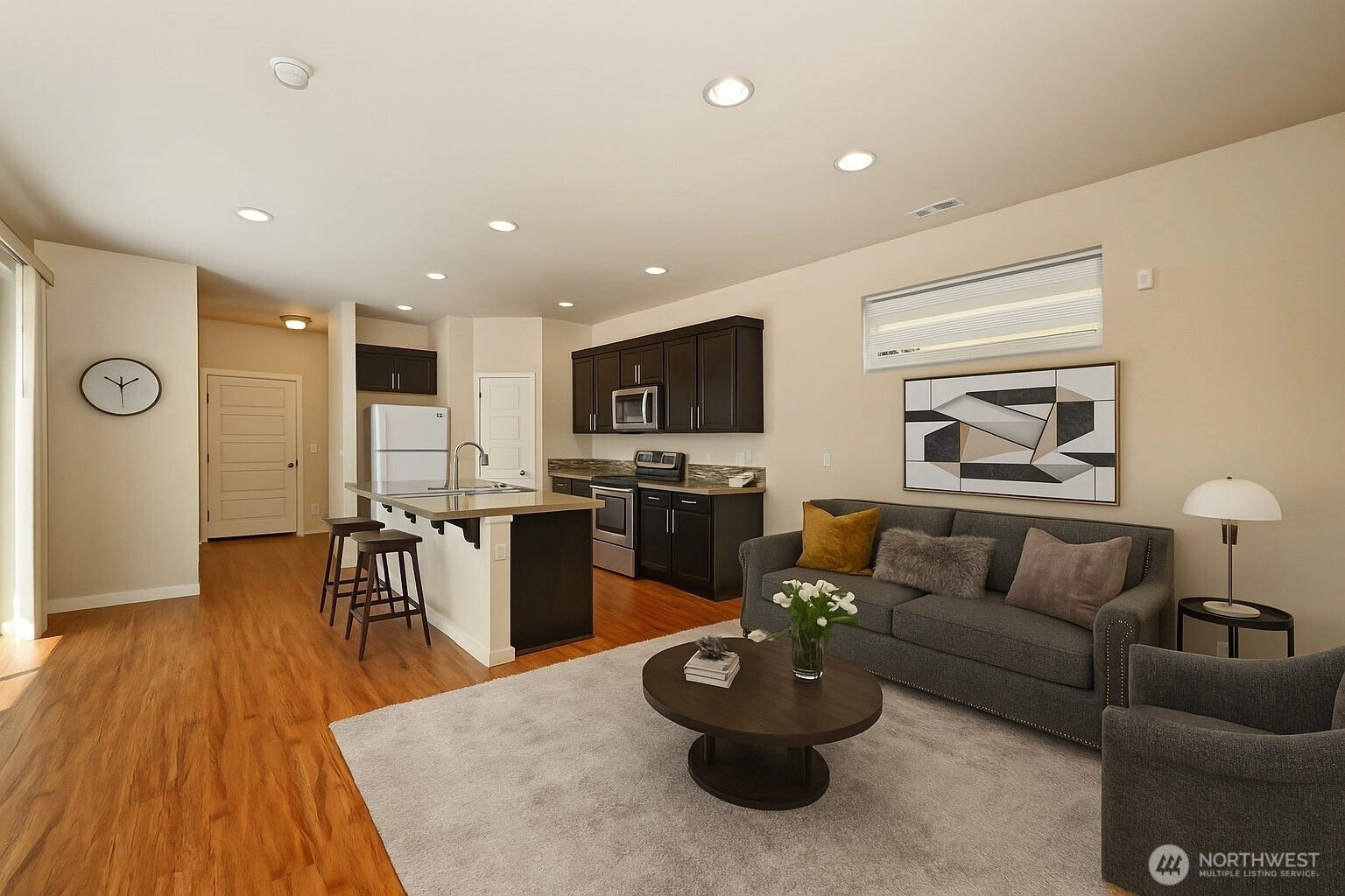 Welcome to The Bridges! This stunning 3-bed + den home features an open-concept living & dining area, plus a chef’s kitchen w/generous counter space, abundant cabinetry, island, & eating bar. The main level offers a grand entry, spacious living room, dining opens to the kitchen, office/den, & half bath. An oversized slider leads to the deck—perfect for grilling/enjoying the peaceful PNW. Upstairs family room COULD BE CONVERTED TO 4TH BEDROOM W/CLOSET, 3 bed, 2 full baths, & laundry. A 2-car garage w/keyless entry for convenience/extra storage. The community boasts walking trails, parks, an off-leash dog park, & tennis/basketball courts—minutes from coffee shops/wine bars, top-restaurants! A Wired Internet House.Front yard maintained by HOA.