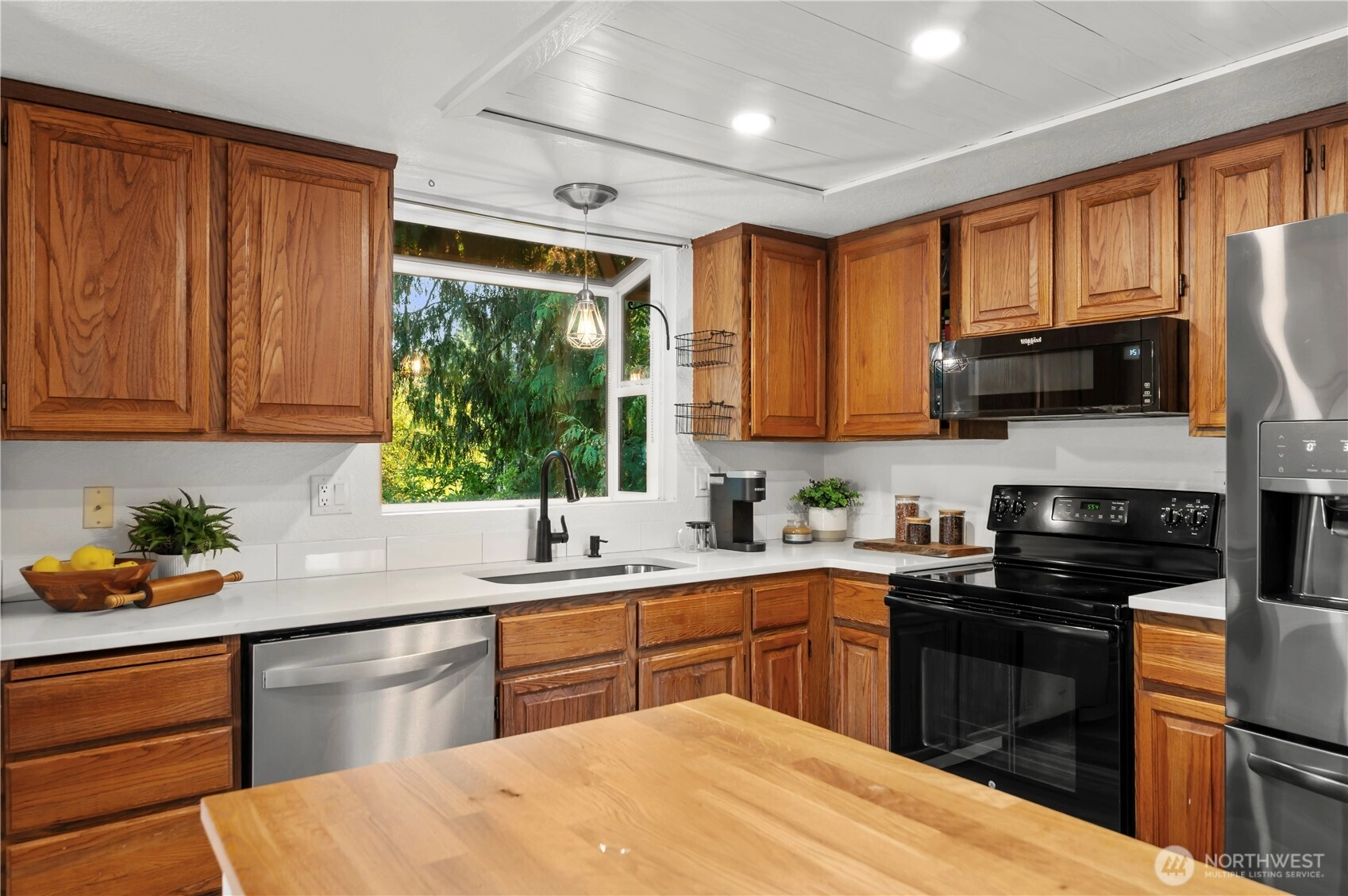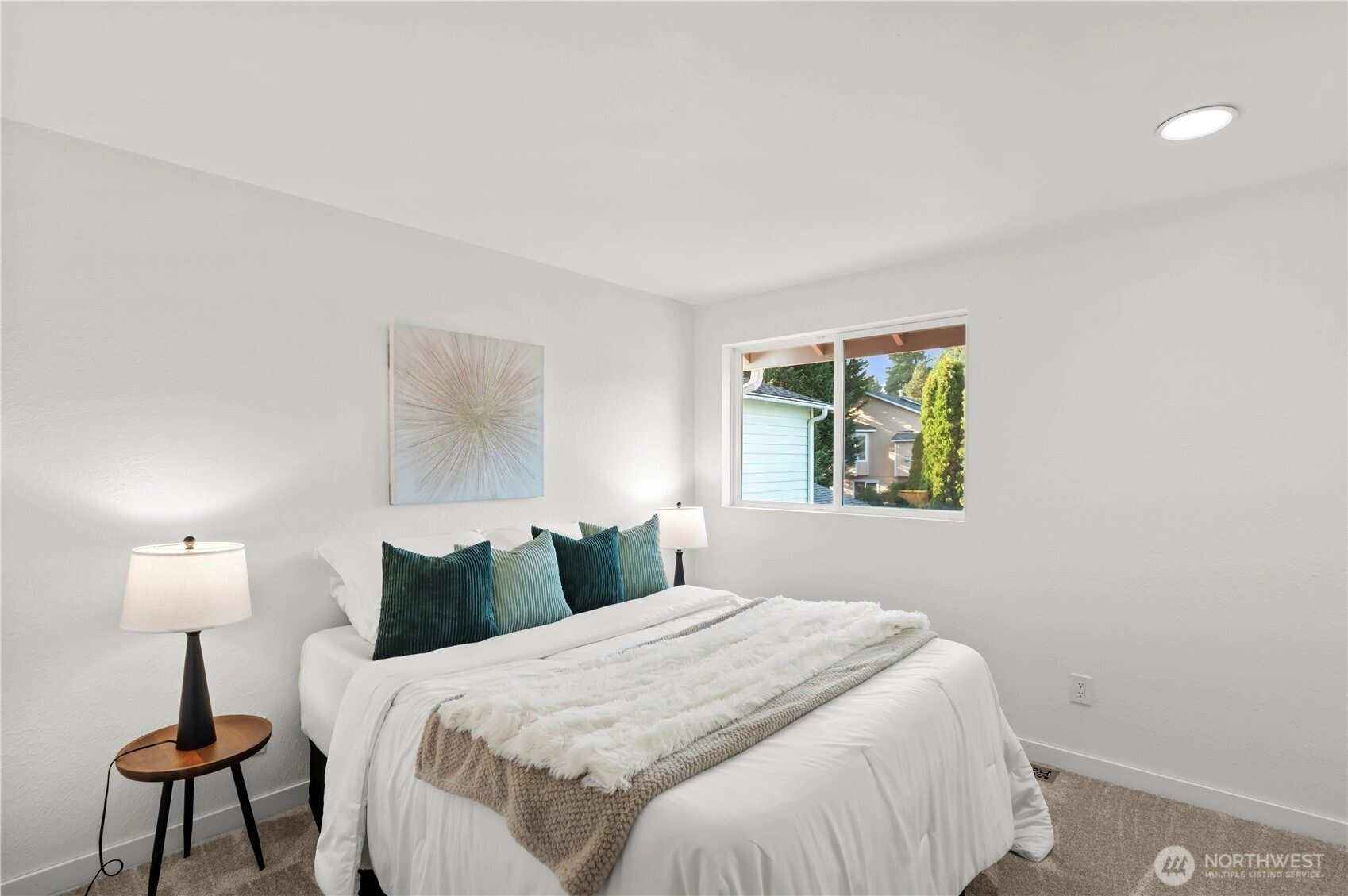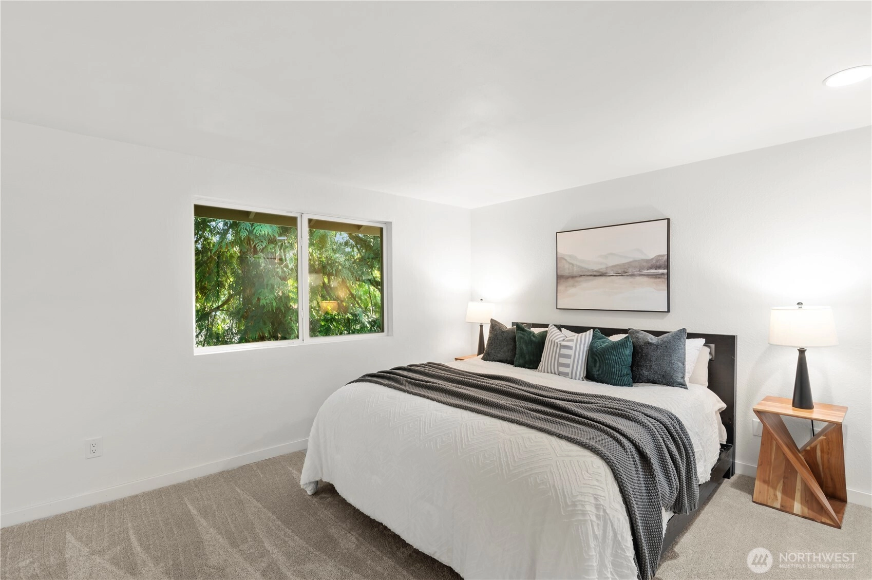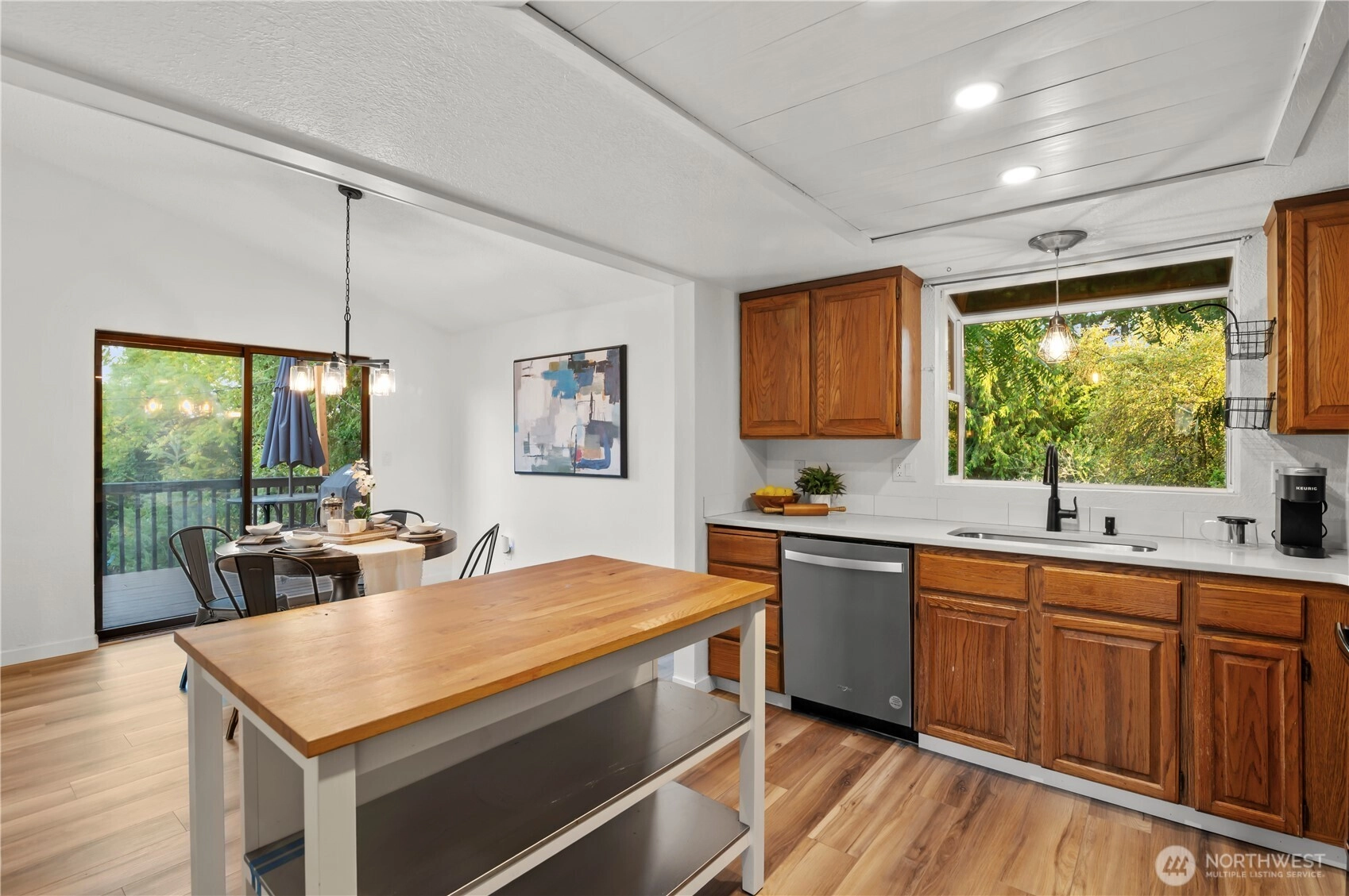 Stunning home in quiet cul-de-sac, airy interior features include vaulted ceilings, tons of natural light. New calcutta quartz kitchen counters, updated bathrooms & fixtures. Premium laminate hardwood’s and carpet throughout, fresh exterior & interior paint! Sizeable ensuite primary bedroom plus 2 additional beds on main level. Spacious 2nd bedroom on lower-level. Great bonus room space or additional living space for guests/tenants! Spacious private yard, fully-fenced, deck perfect for entertaining. Large 2-car garage, ample parking. Top-rated schools! Easy access to I-5, convenient transit, walkable to LIGHT RAIL station, Interurban/Burke-Gilman Trail, shopping & parks!