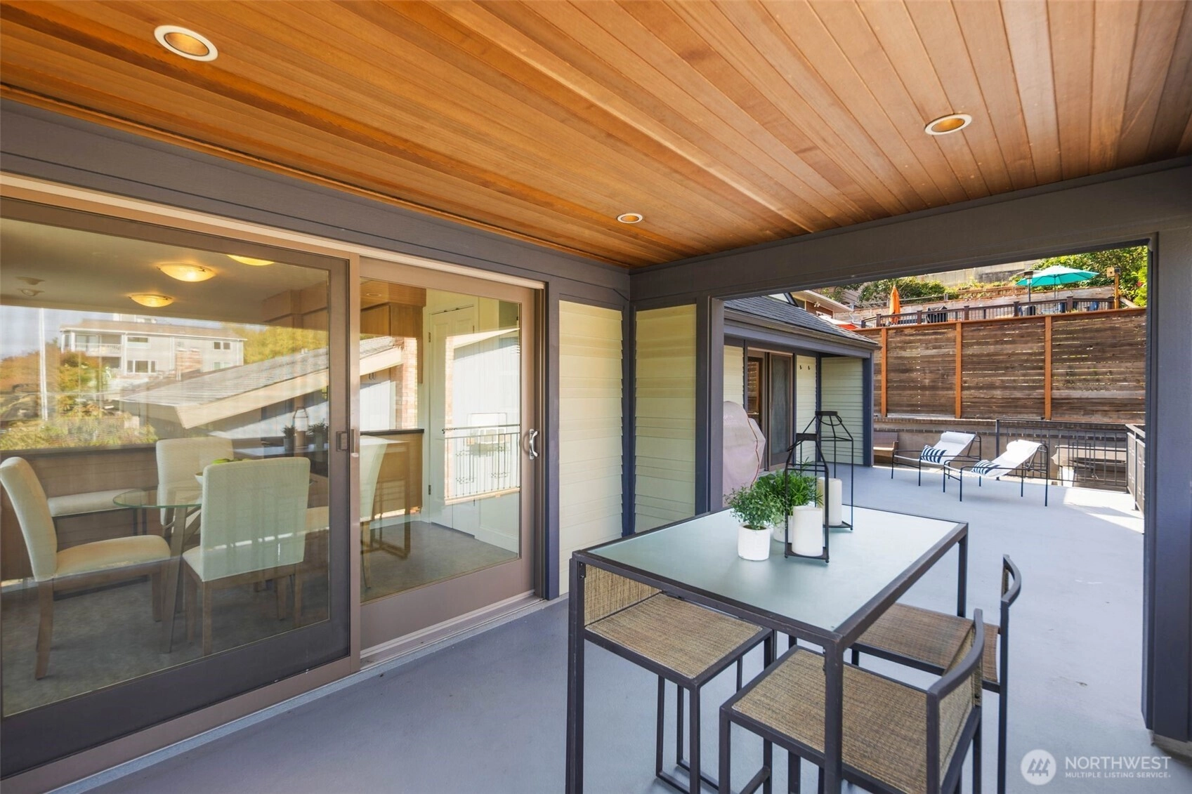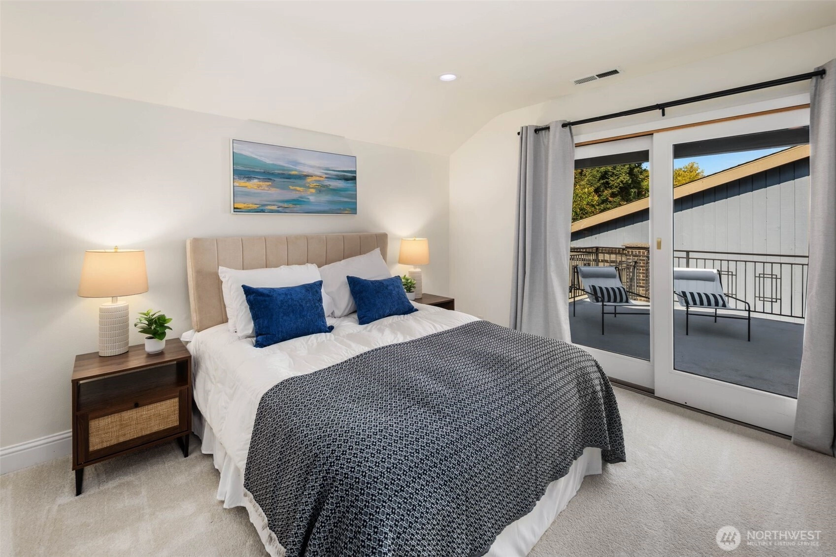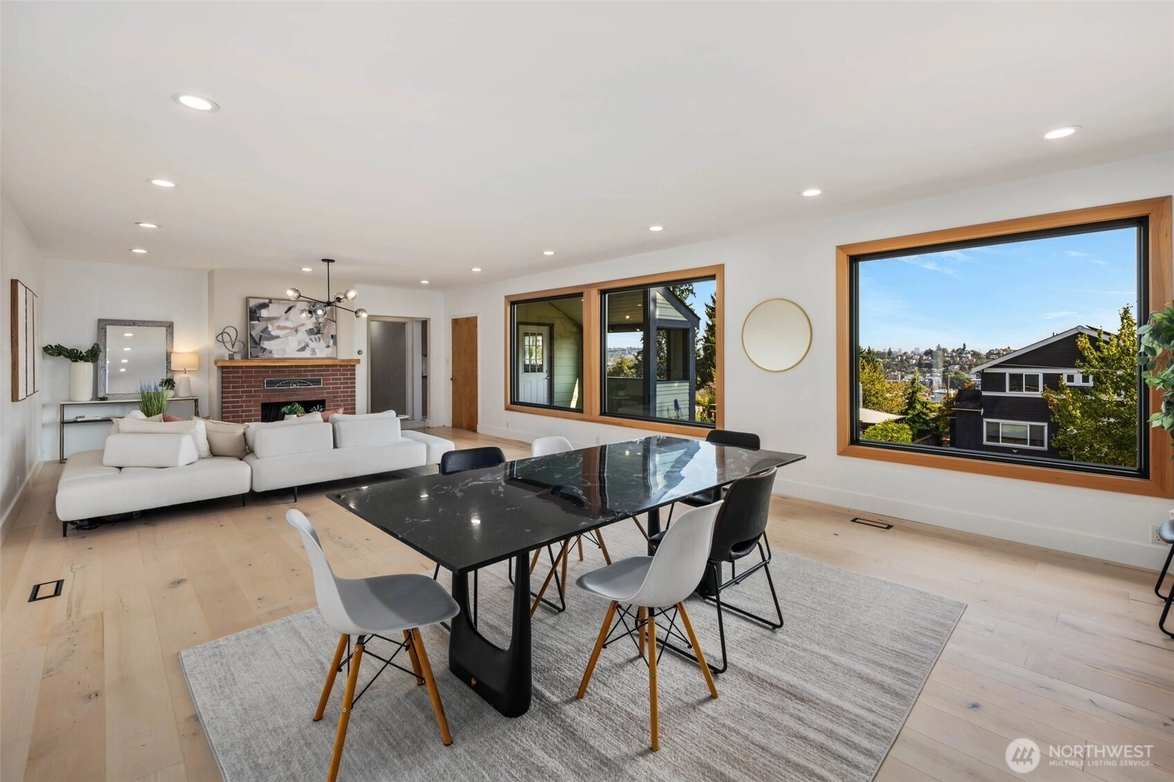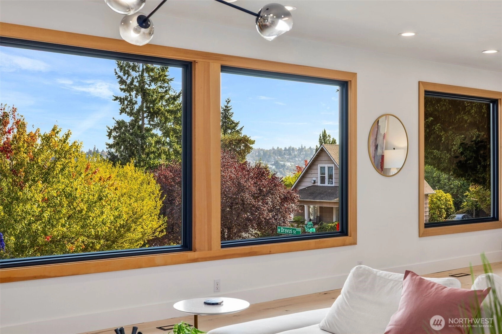 Take in sweeping territorial views of the from this Magnolia residence on a coveted corner lot. The oversized living room, framed by expansive windows that flood the space with natural light, accommodates both a grand dining table and generous lounge seating for stylish entertaining and everyday living. The back patio, off of the kitchen and primary suite, offers multiple outdoor areas, including a more secluded lower-level patio ideal for added privacy. Fresh paint and new carpet elevate the home, with versatile living spaces, gym, smart lighting, a heat pump with AC, and an attached garage adding convenience and modern comfort. Minutes to Ballard, SLU, downtown, and Magnolia Village, this home blends charm and convenience.