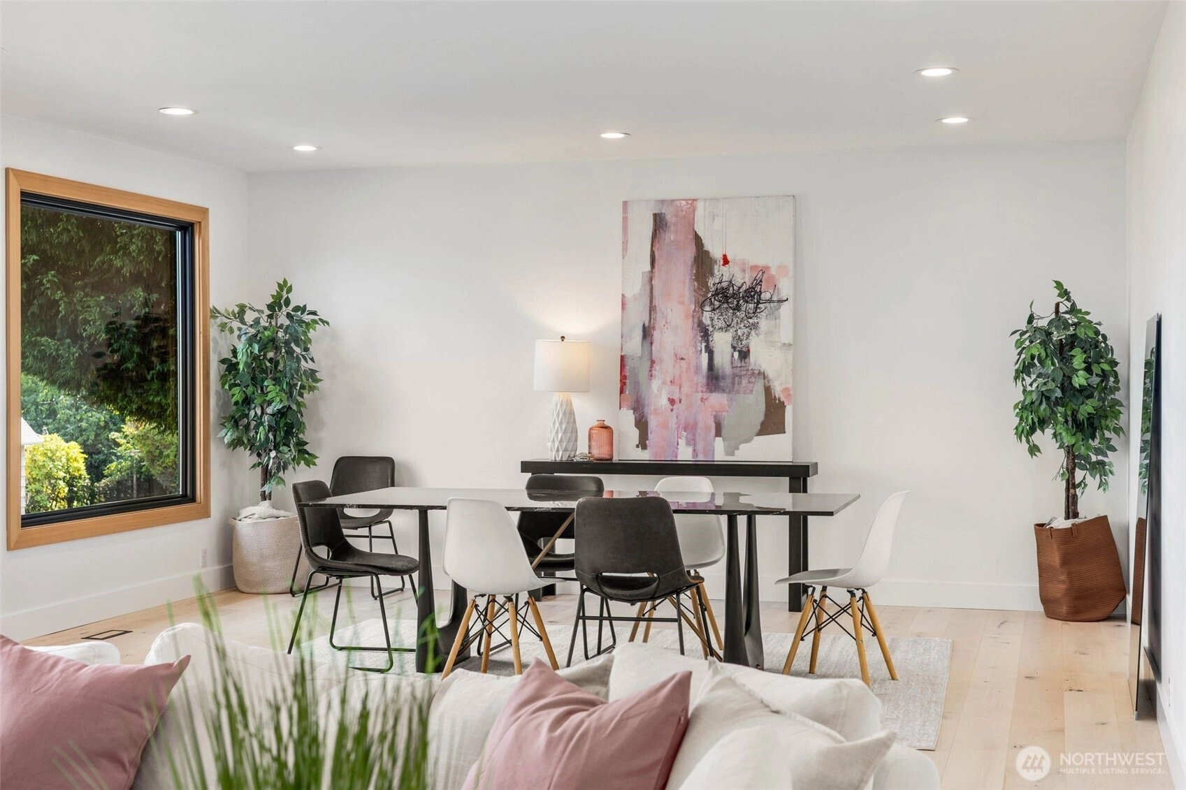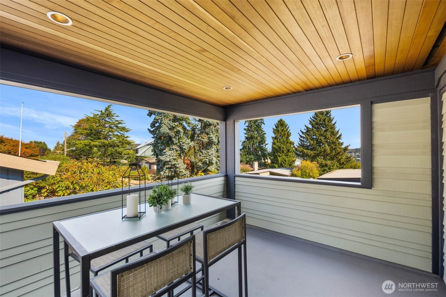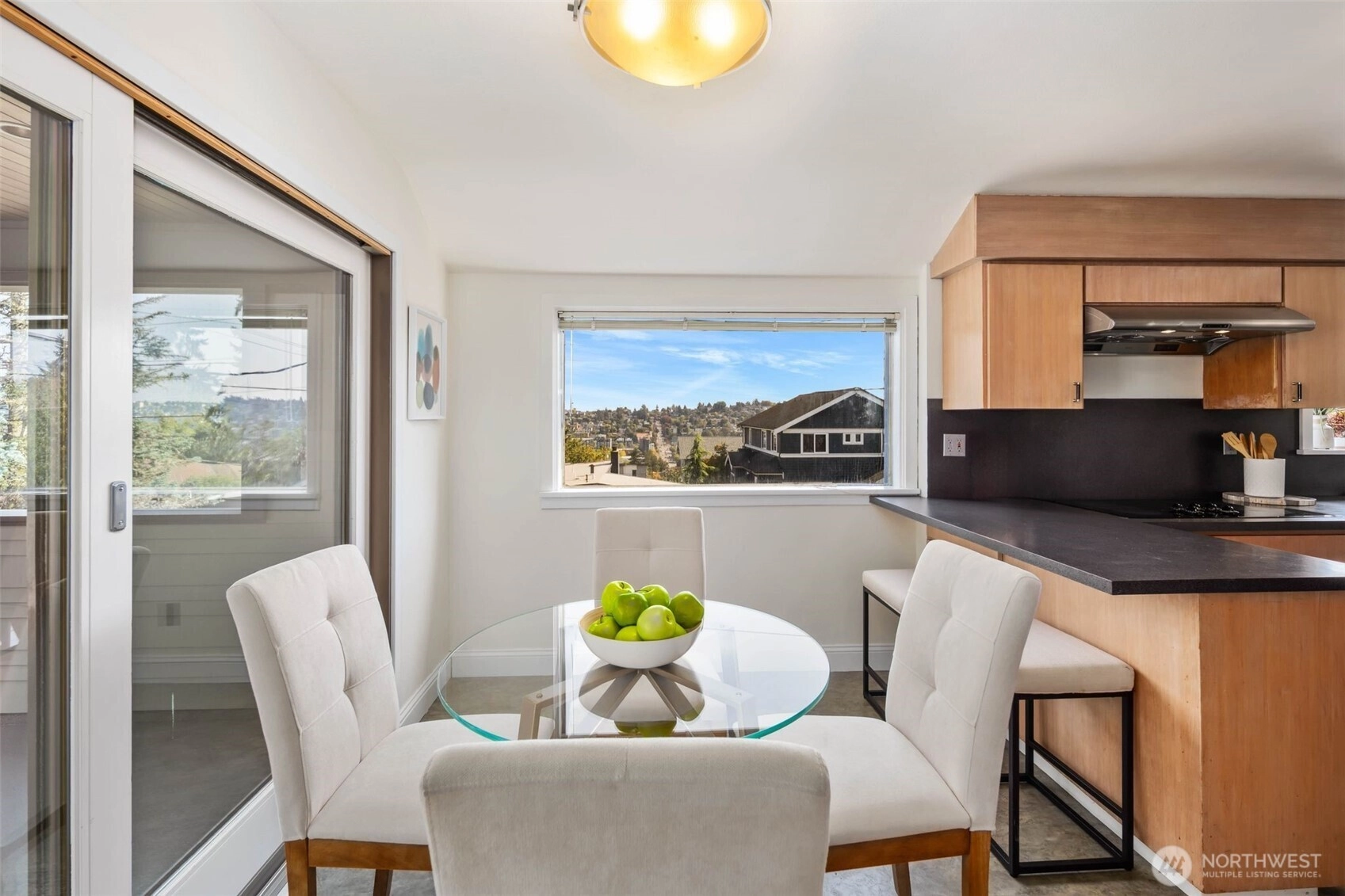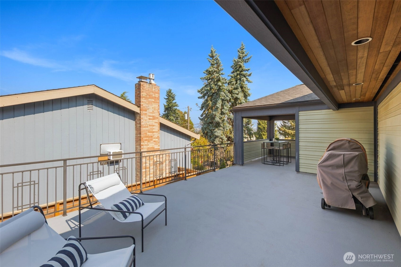 Take in sweeping territorial views of the from this Magnolia residence on a coveted corner lot. The oversized living room, framed by expansive windows that flood the space with natural light, accommodates both a grand dining table and generous lounge seating for stylish entertaining and everyday living. The back patio, off of the kitchen and primary suite, offers multiple outdoor areas, including a more secluded lower-level patio ideal for added privacy. Fresh paint and new carpet elevate the home, with versatile living spaces, gym, smart lighting, a heat pump with AC, and an attached garage adding convenience and modern comfort. Minutes to Ballard, SLU, downtown, and Magnolia Village, this home blends charm and convenience.