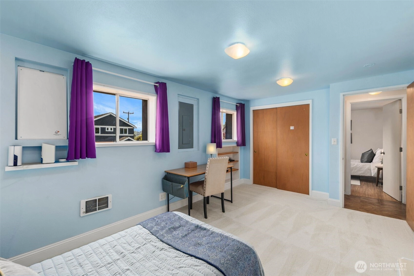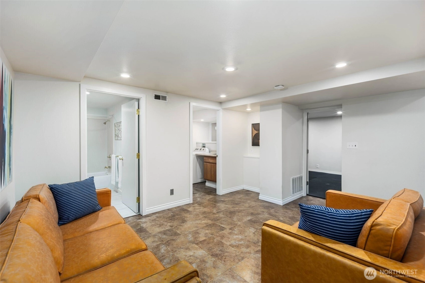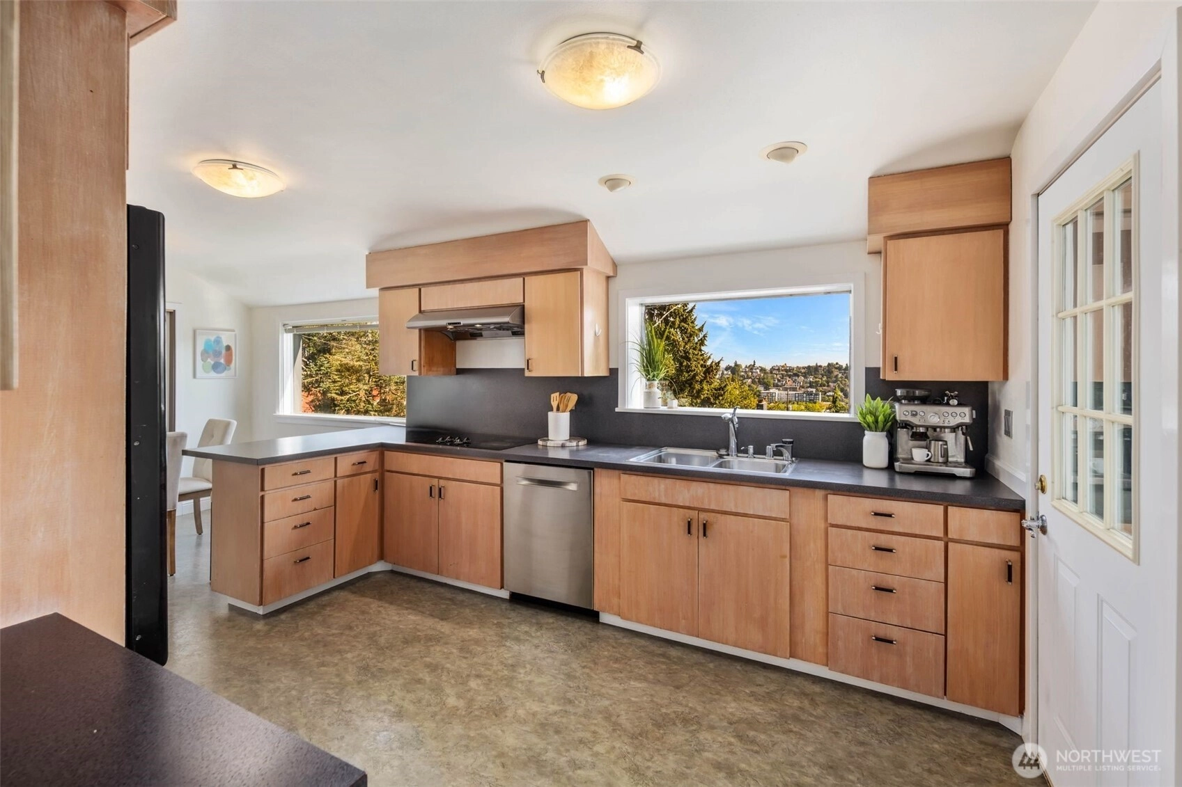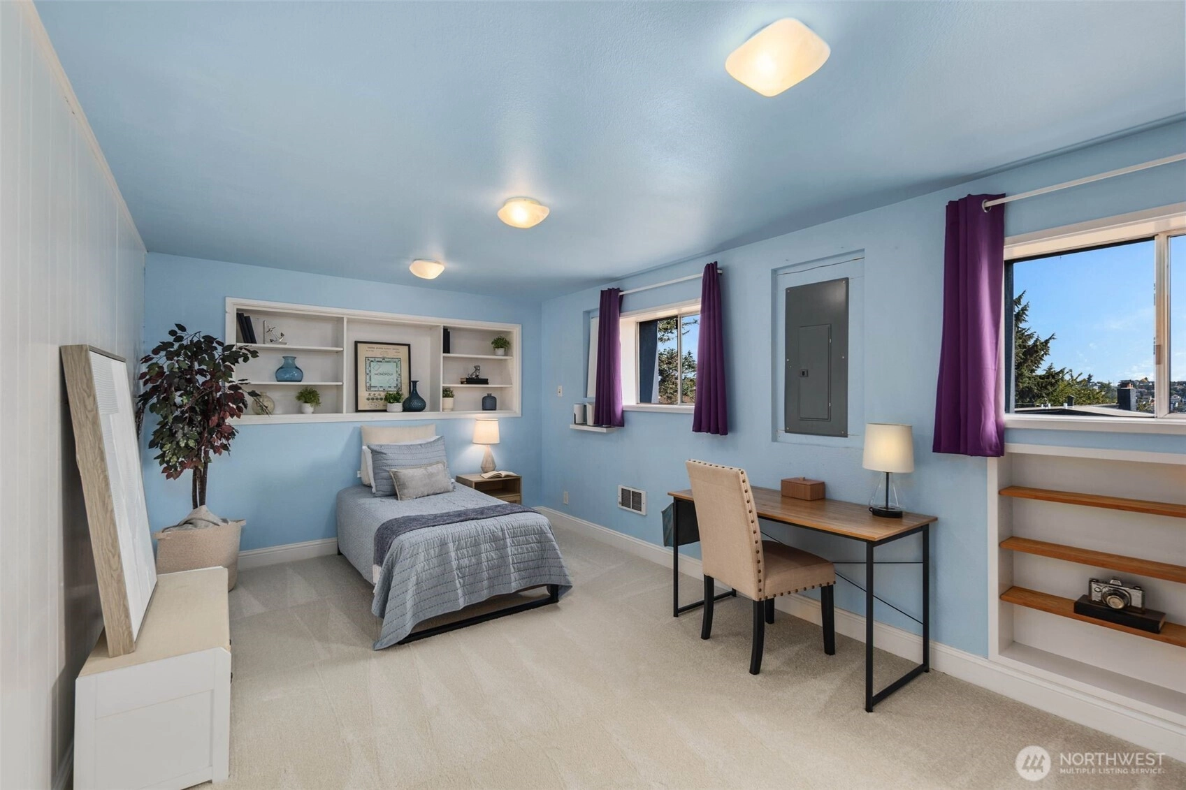 Take in sweeping territorial views of the from this Magnolia residence on a coveted corner lot. The oversized living room, framed by expansive windows that flood the space with natural light, accommodates both a grand dining table and generous lounge seating for stylish entertaining and everyday living. The back patio, off of the kitchen and primary suite, offers multiple outdoor areas, including a more secluded lower-level patio ideal for added privacy. Fresh paint and new carpet elevate the home, with versatile living spaces, gym, smart lighting, a heat pump with AC, and an attached garage adding convenience and modern comfort. Minutes to Ballard, SLU, downtown, and Magnolia Village, this home blends charm and convenience.
